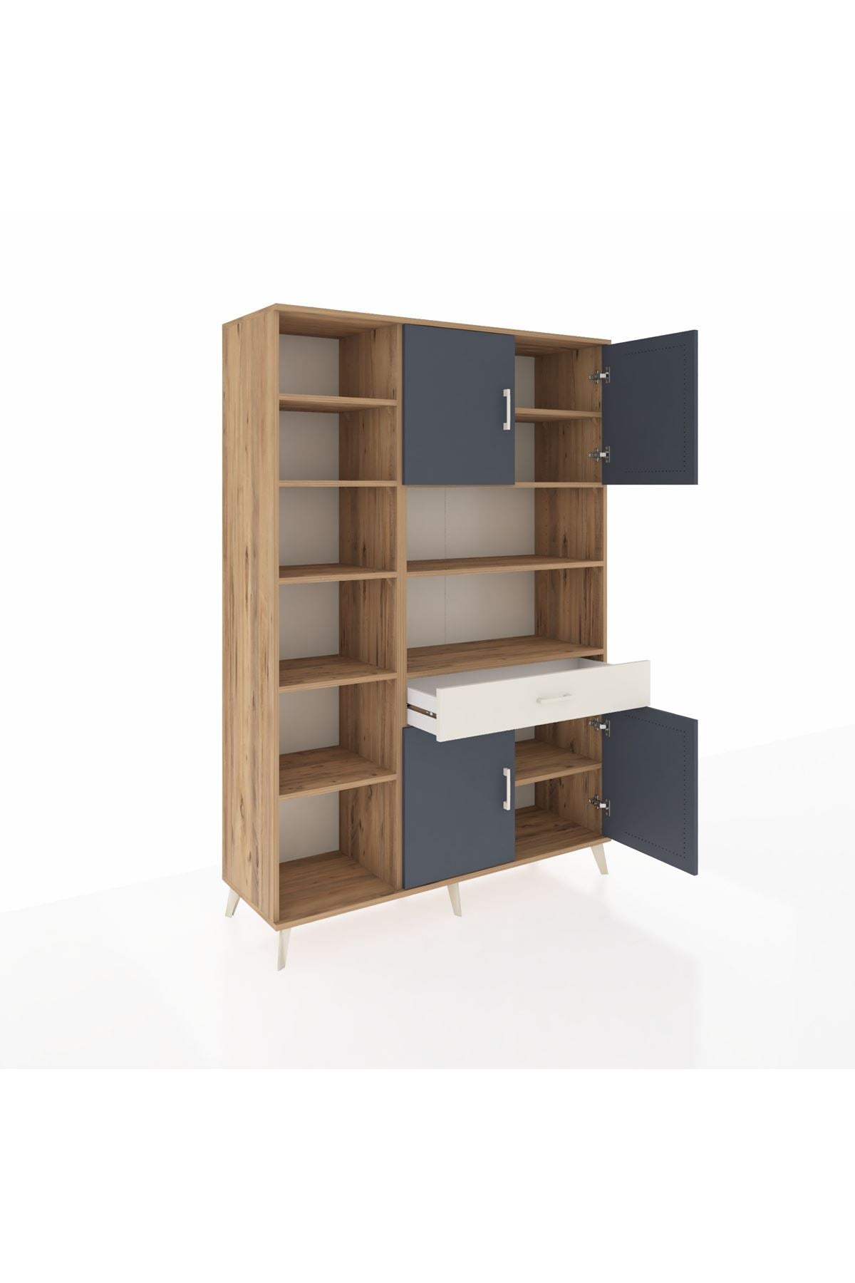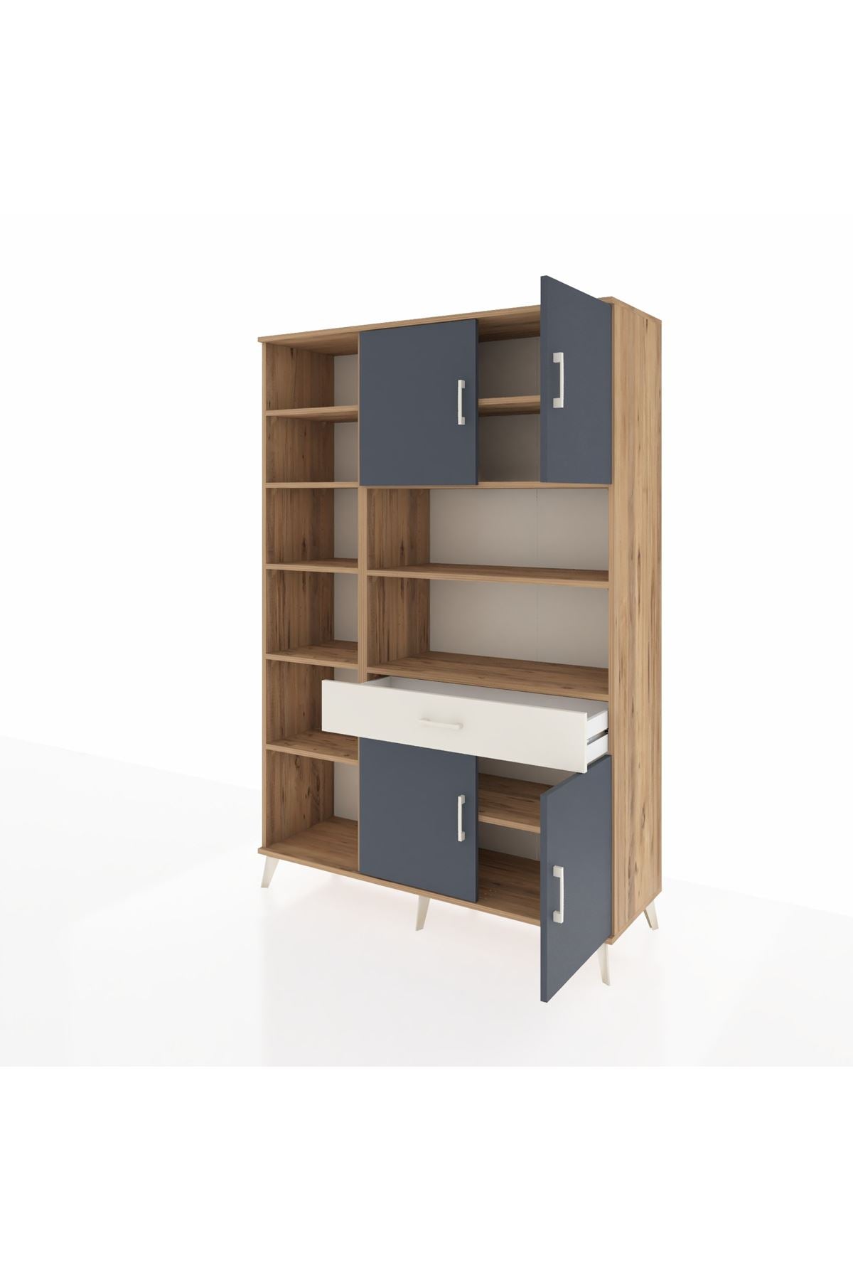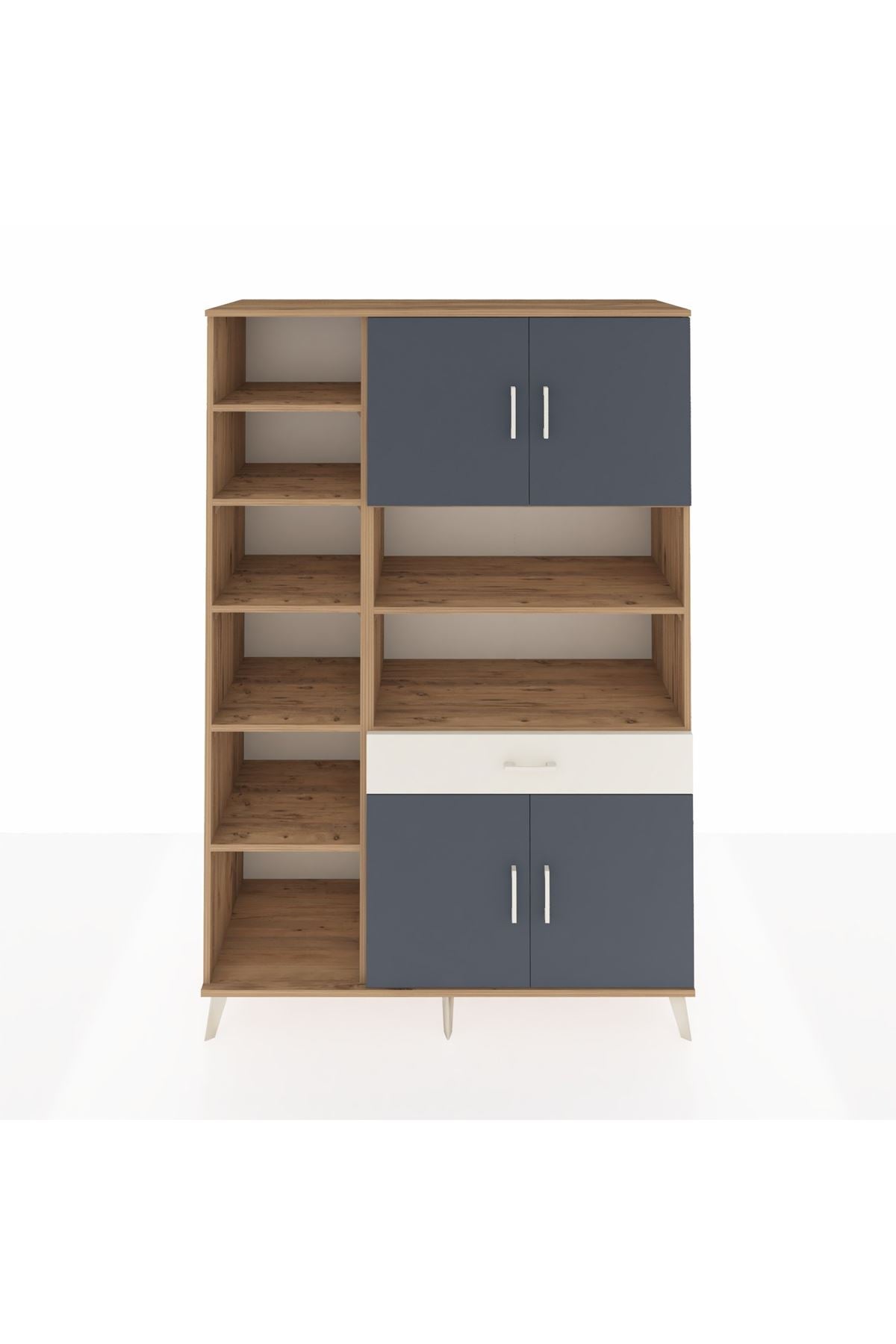 Hyperion Dolap 10 Raflı Tek Çekmeceli 4 Kapaklı 132x44x195 Çam-Antrasit/Aytaşı
