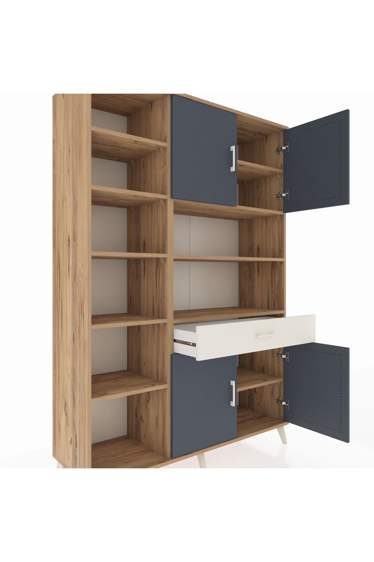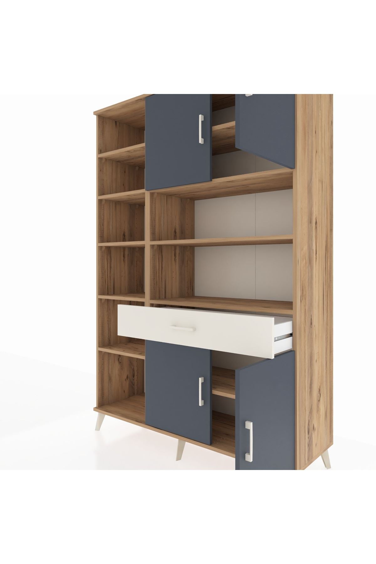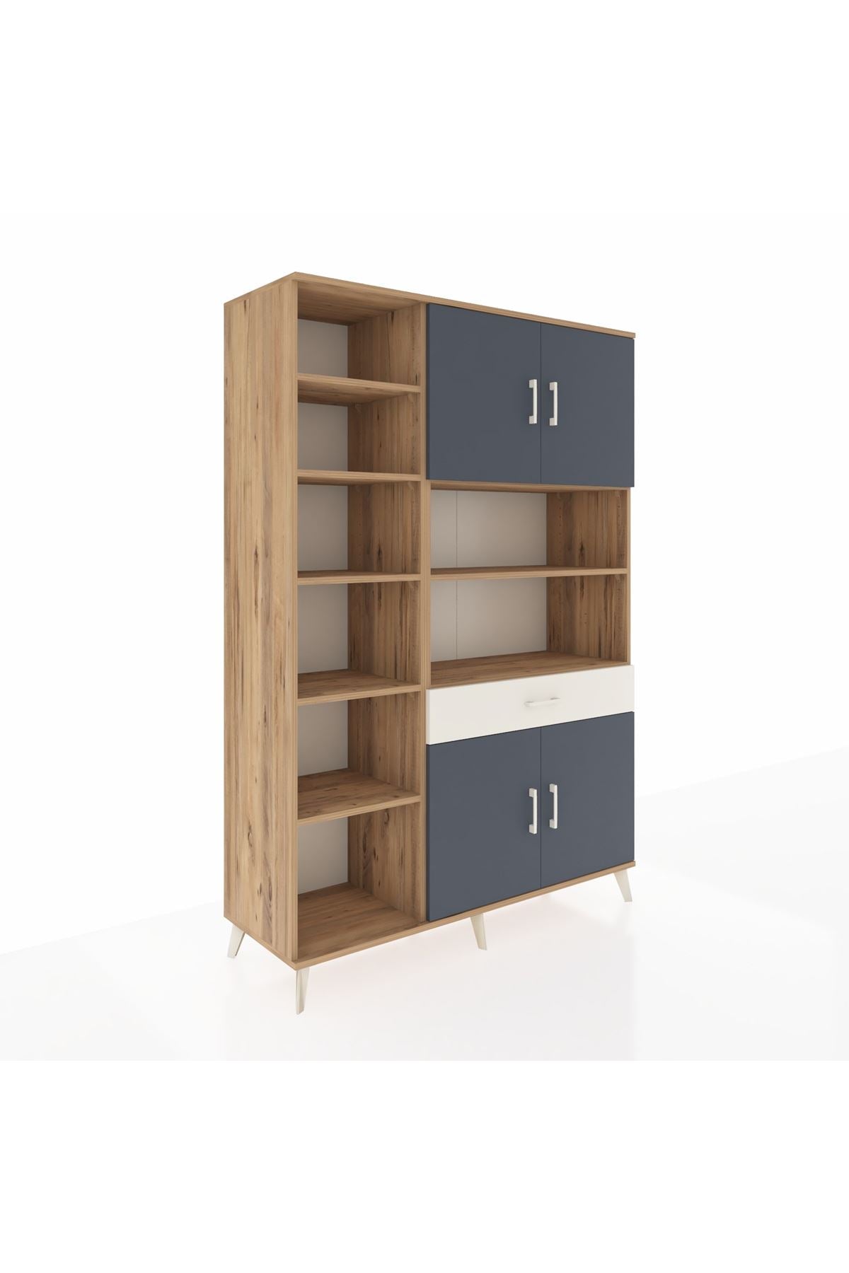 Hyperion Dolap 10 Raflı Tek Çekmeceli 4 Kapaklı 132x44x195 Çam-Antrasit/Aytaşı
