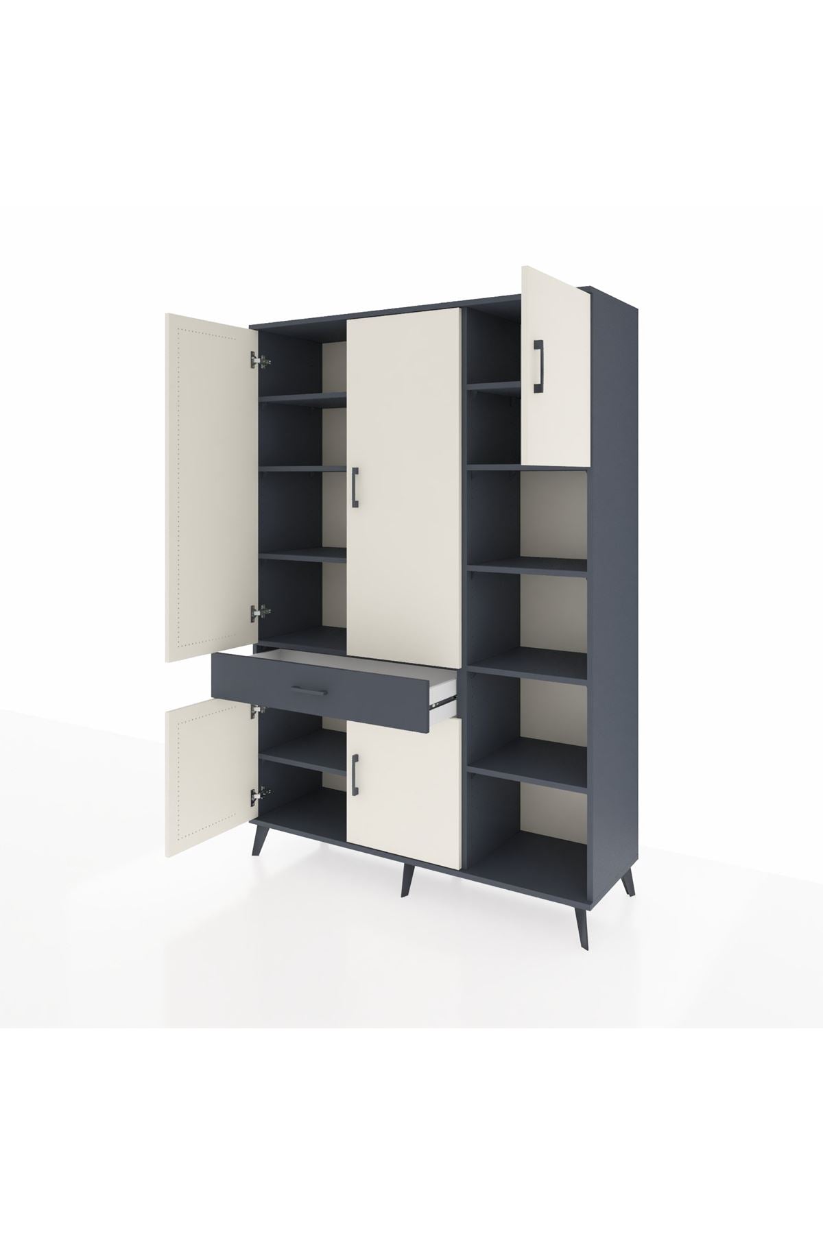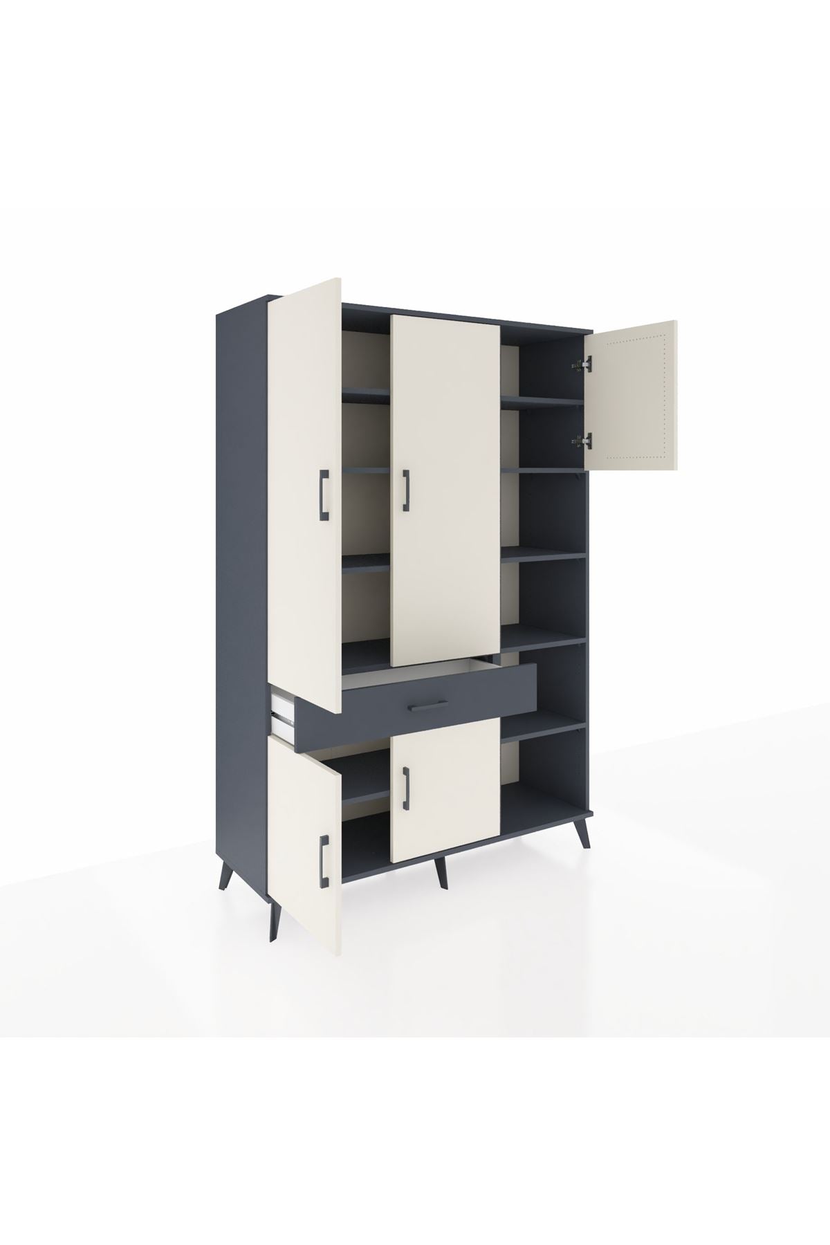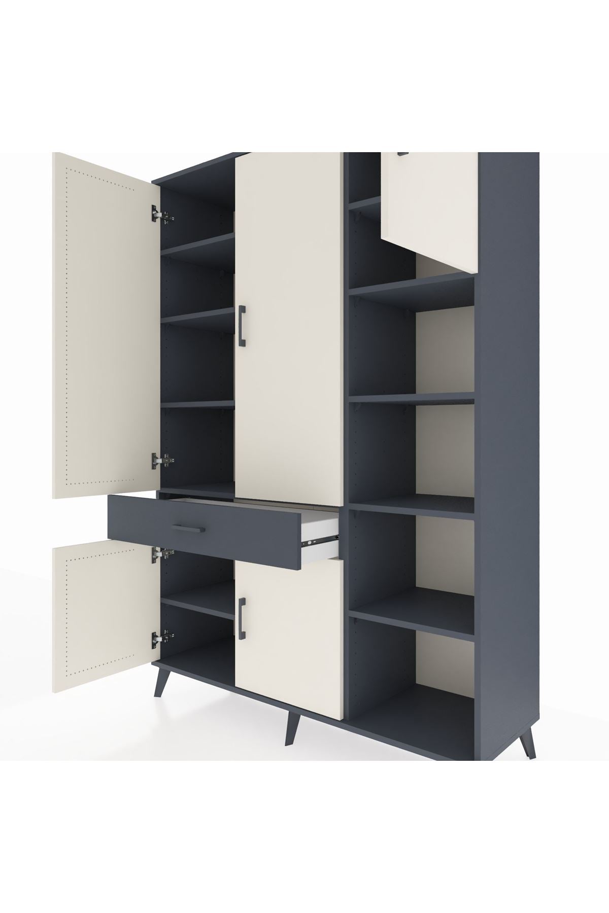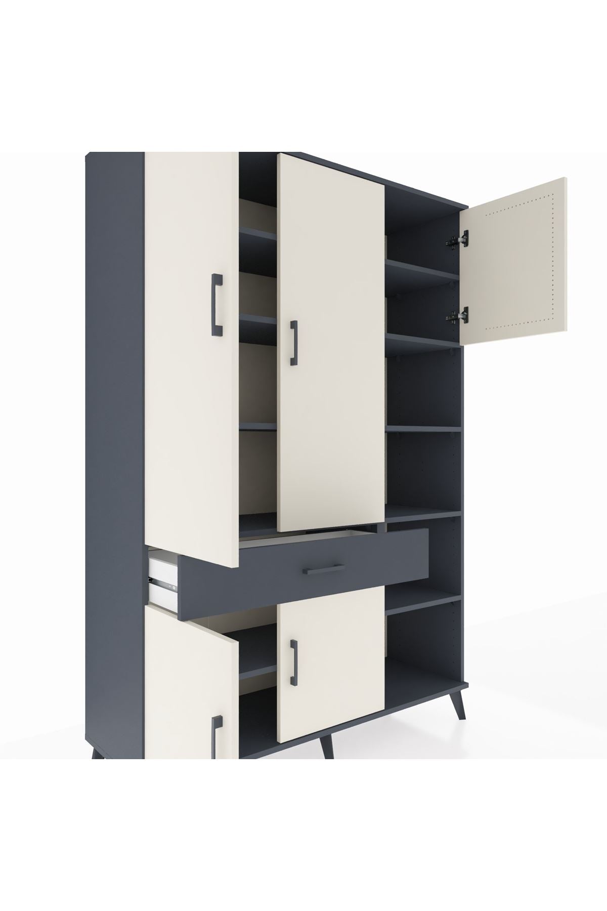 Hyperion Dolap 10 Raflı Tek Çekmeceli 5 Kapaklı 132x44x195 Antrasit-Aytaşı/Antrasit