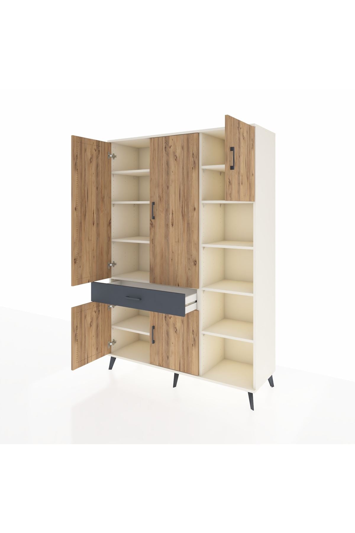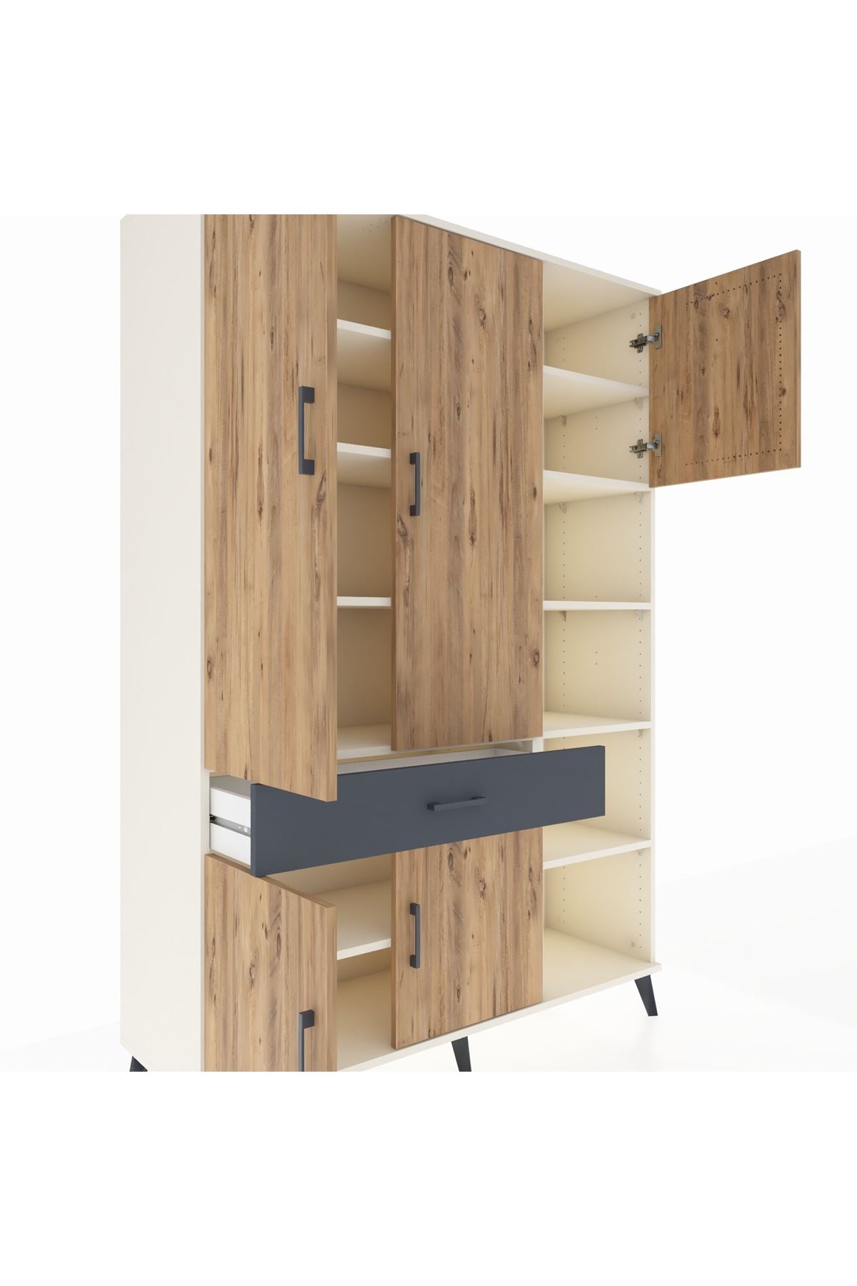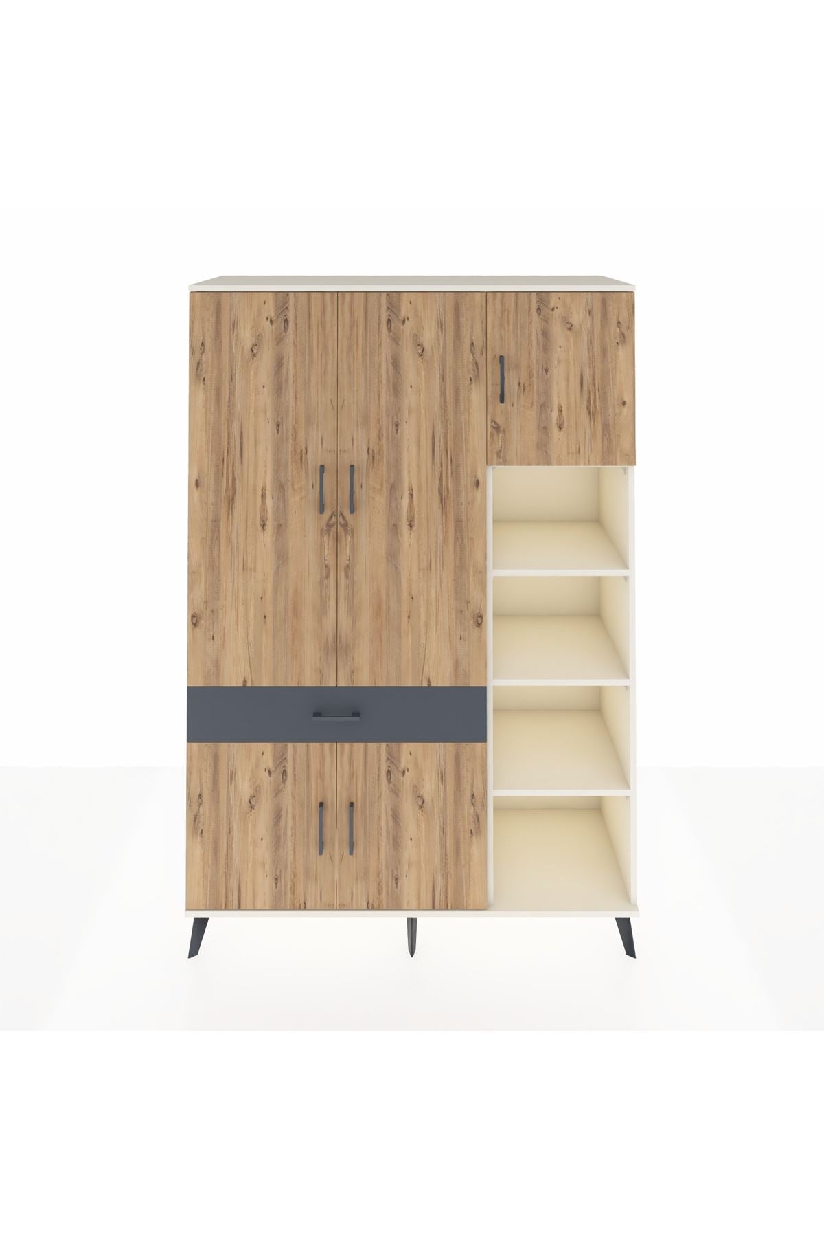 Hyperion Dolap 10 Raflı Tek Çekmeceli 5 Kapaklı 132x44x195 Aytaşı-Çam/Antrasit