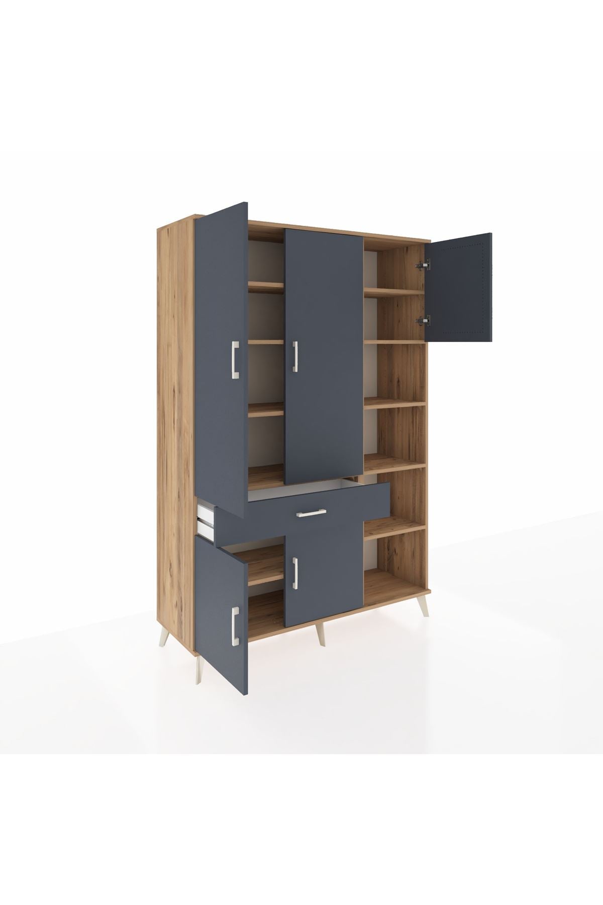 Hyperion Dolap 10 Raflı Tek Çekmeceli 5 Kapaklı 132x44x195 Çam-Antrasit/Antrasit