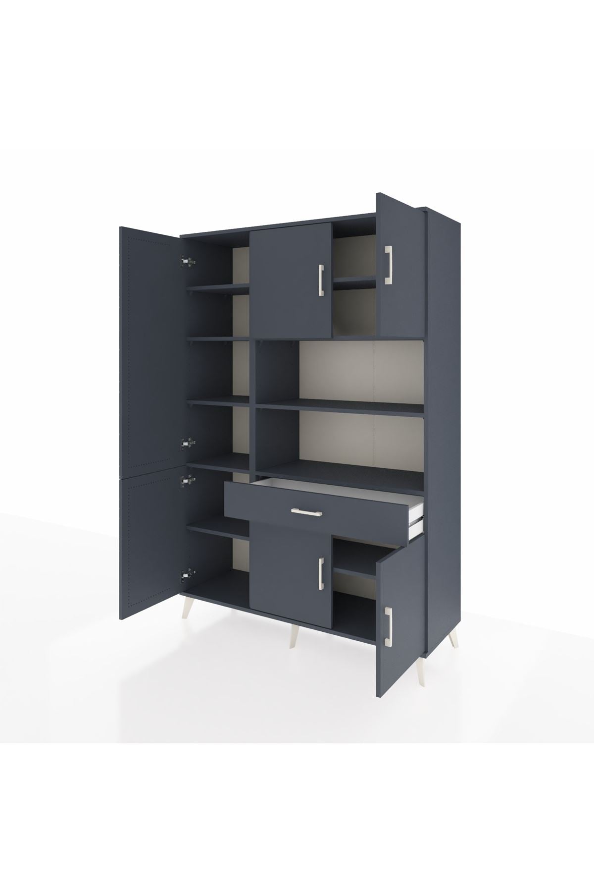 Hyperion Dolap 10 Raflı Tek Çekmeceli 6 Kapaklı 132x44x195 Antrasit-Antrasit/Antrasit