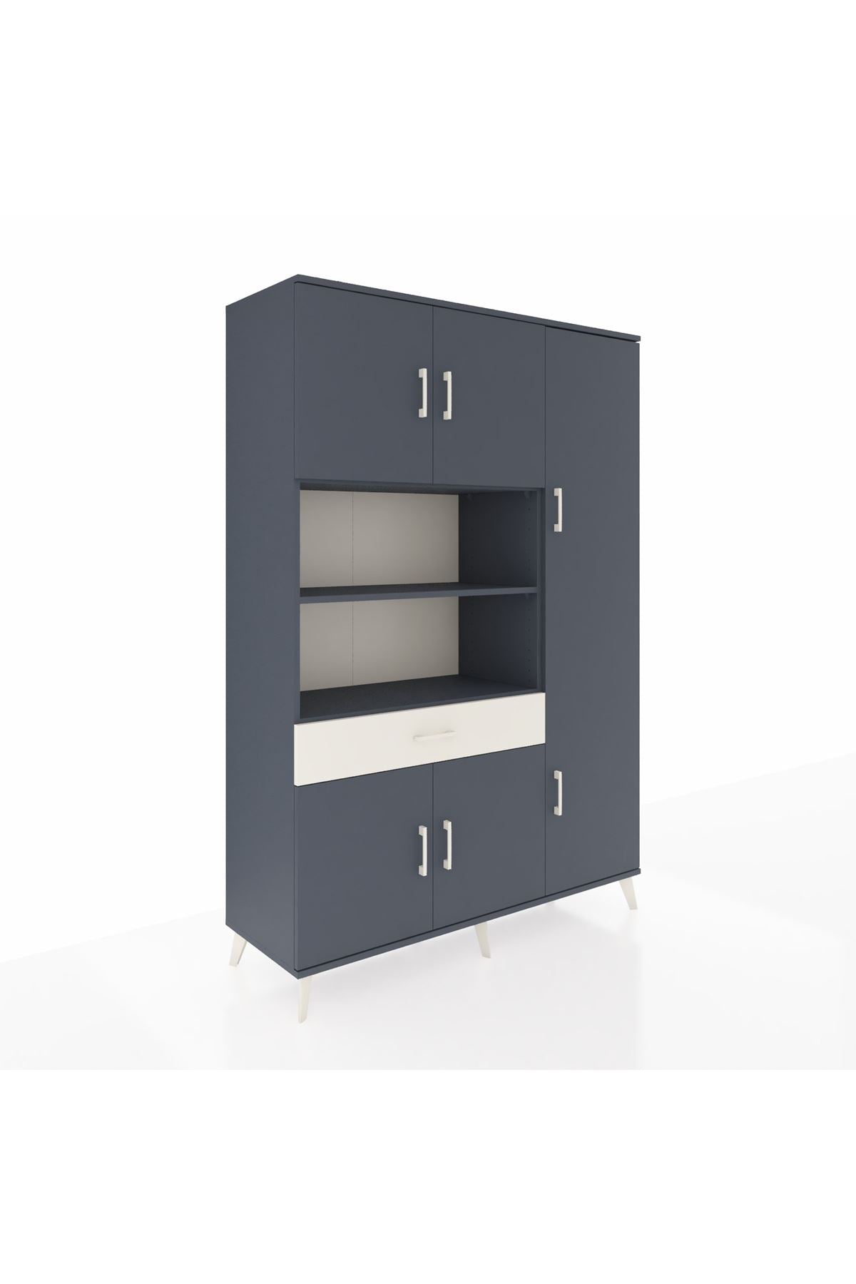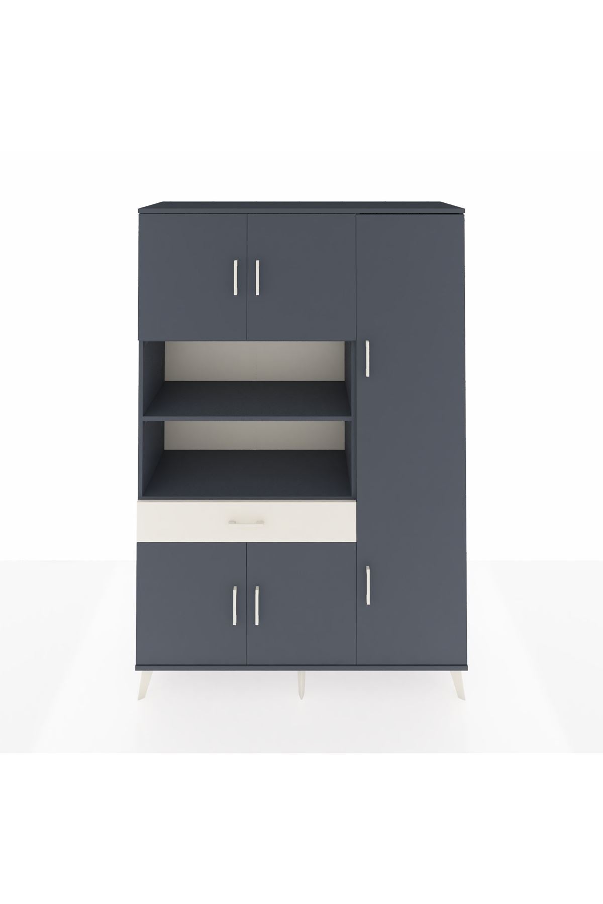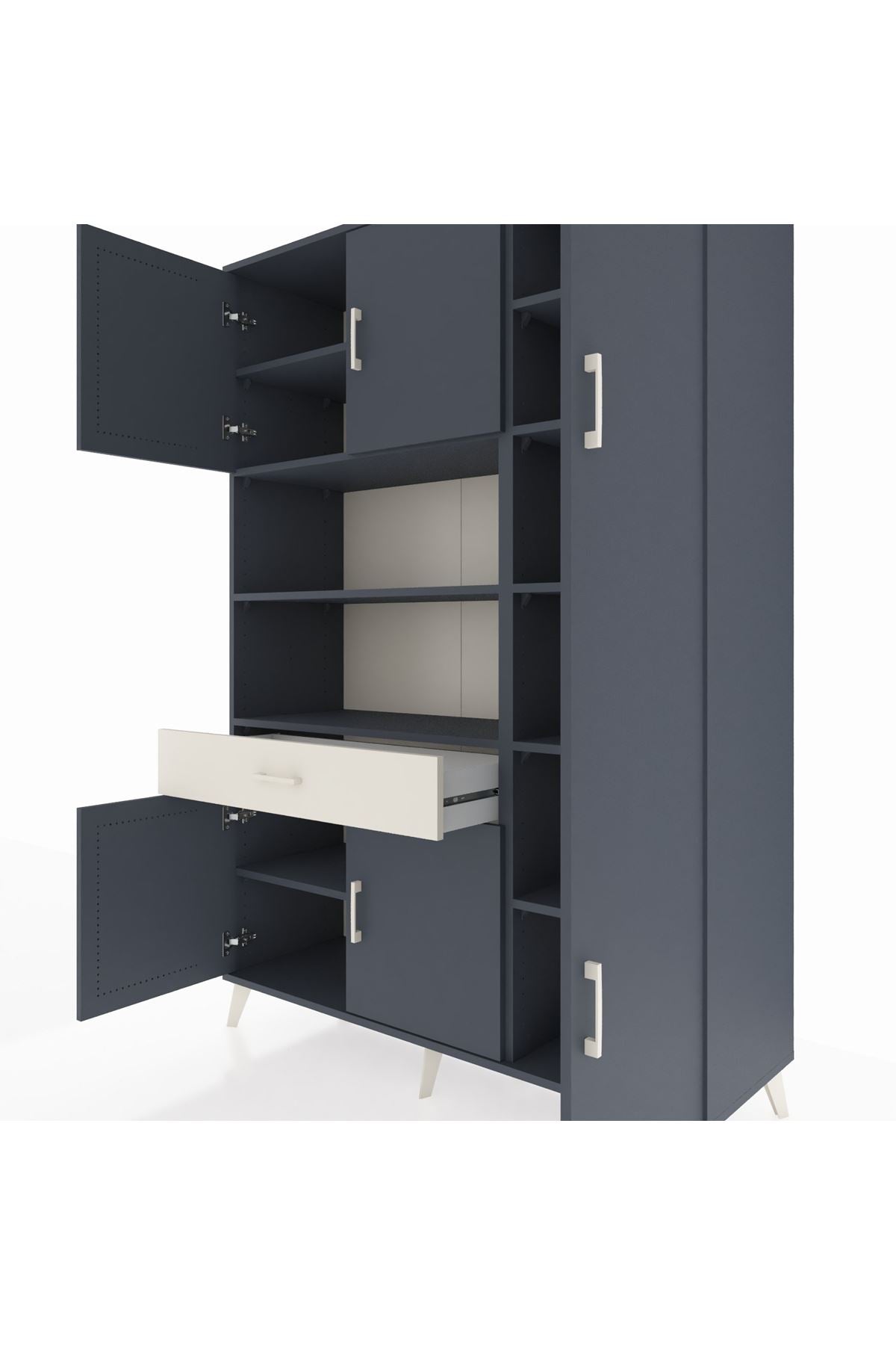 Hyperion Dolap 10 Raflı Tek Çekmeceli 6 Kapaklı 132x44x195 Antrasit-Antrasit/Aytaşı