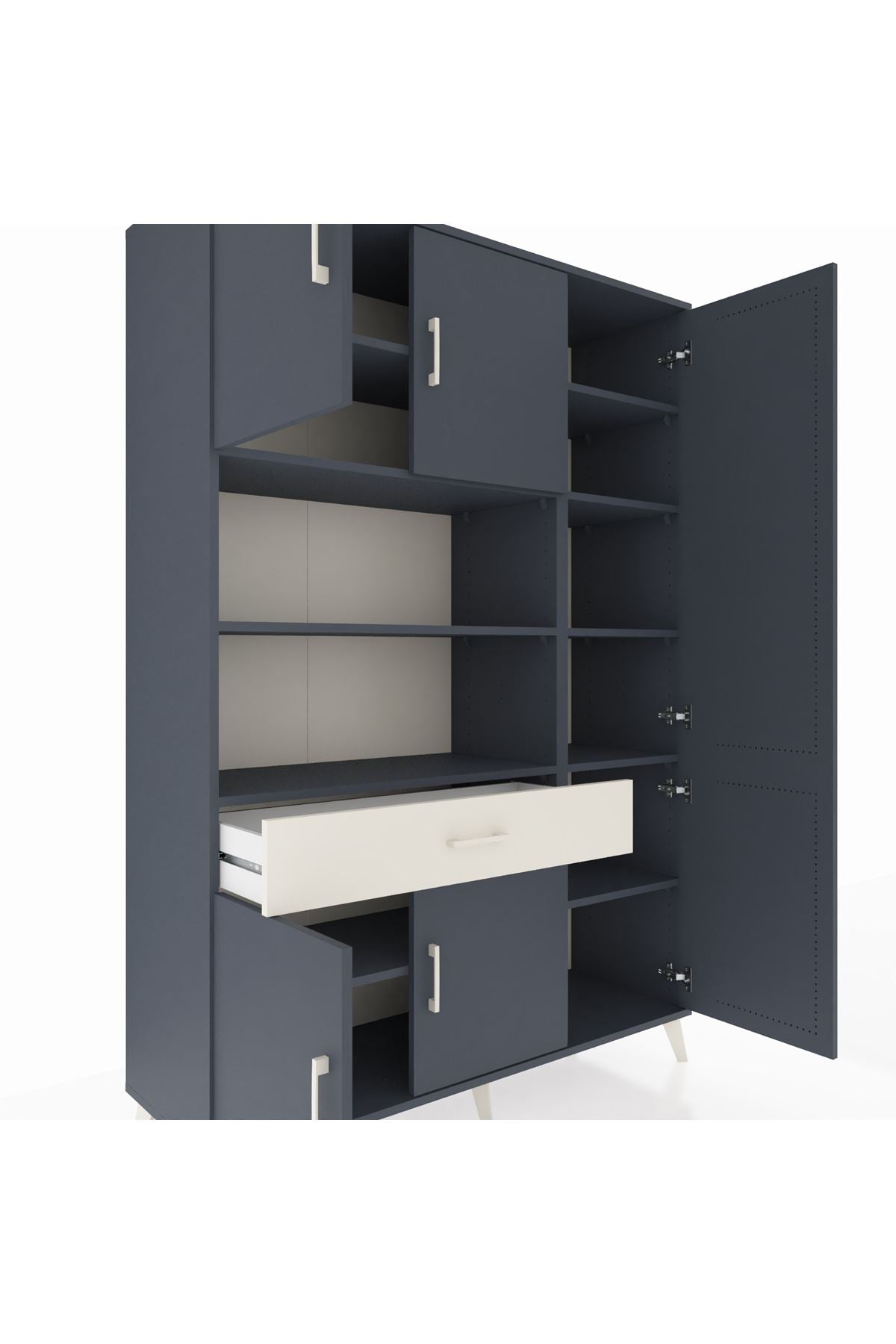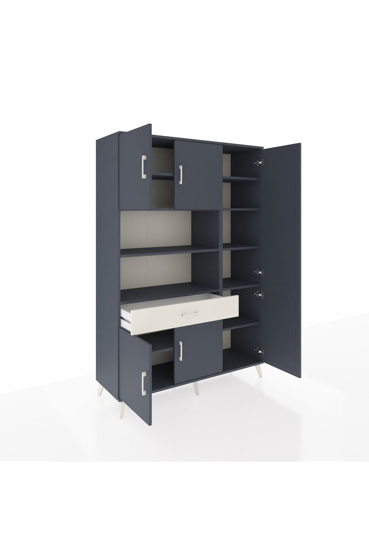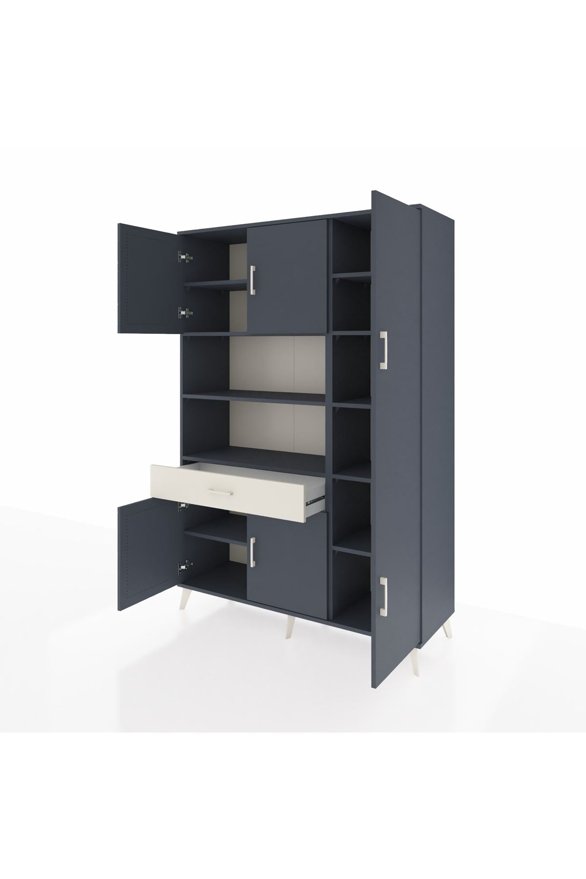 Hyperion Dolap 10 Raflı Tek Çekmeceli 6 Kapaklı 132x44x195 Antrasit-Antrasit/Aytaşı