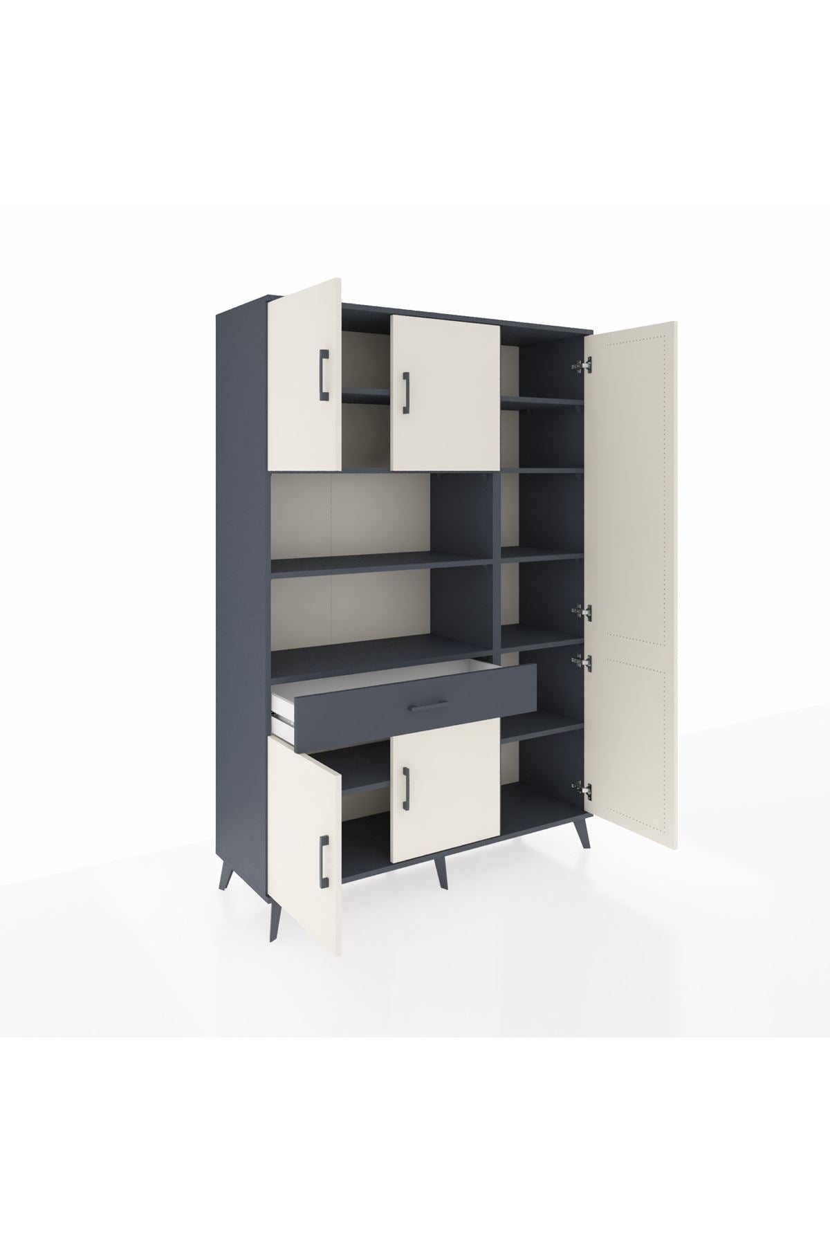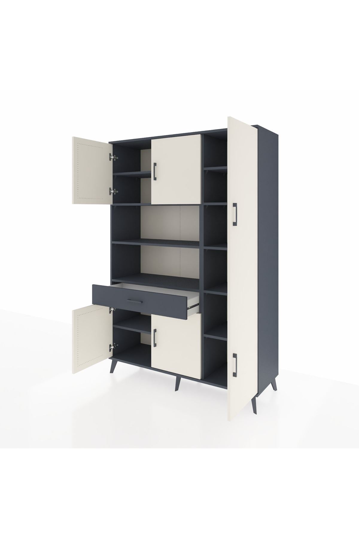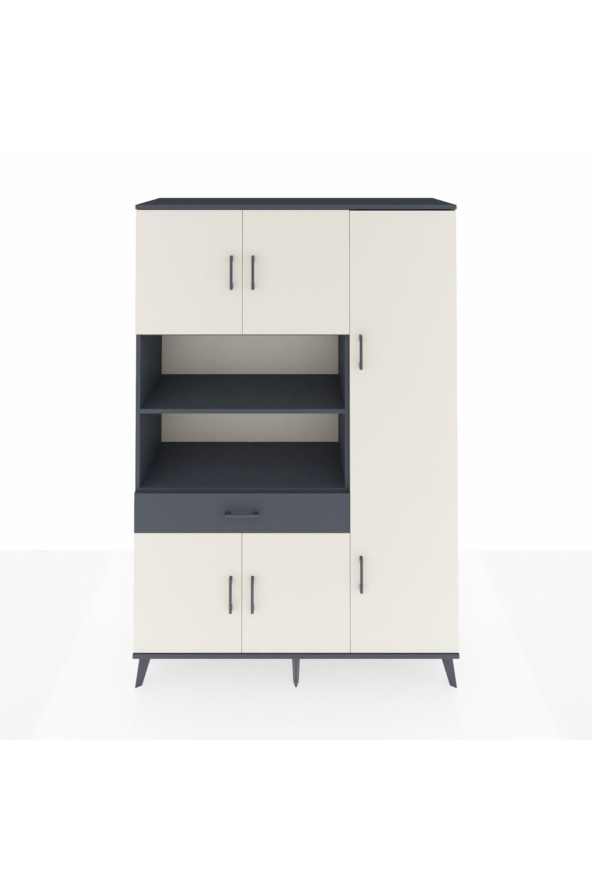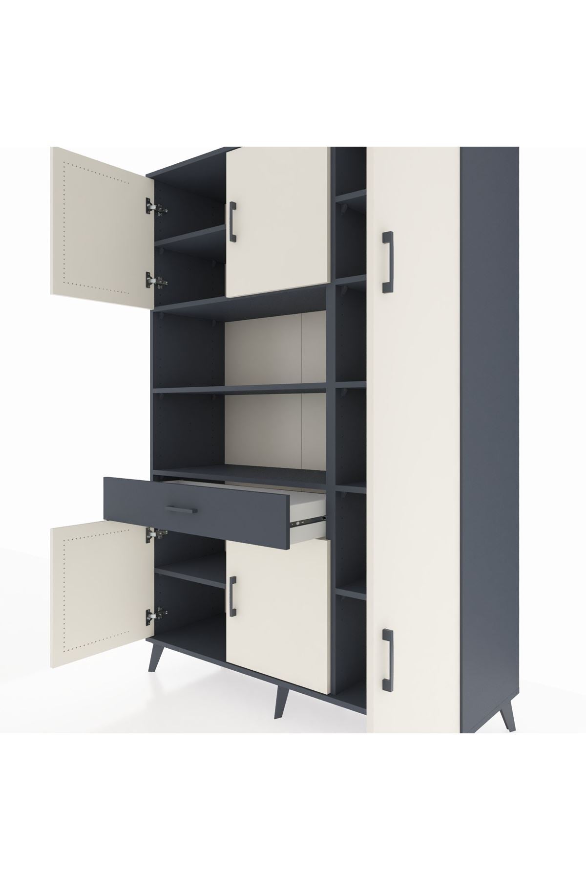 Hyperion Dolap 10 Raflı Tek Çekmeceli 6 Kapaklı 132x44x195 Antrasit-Aytaşı/Antrasit
