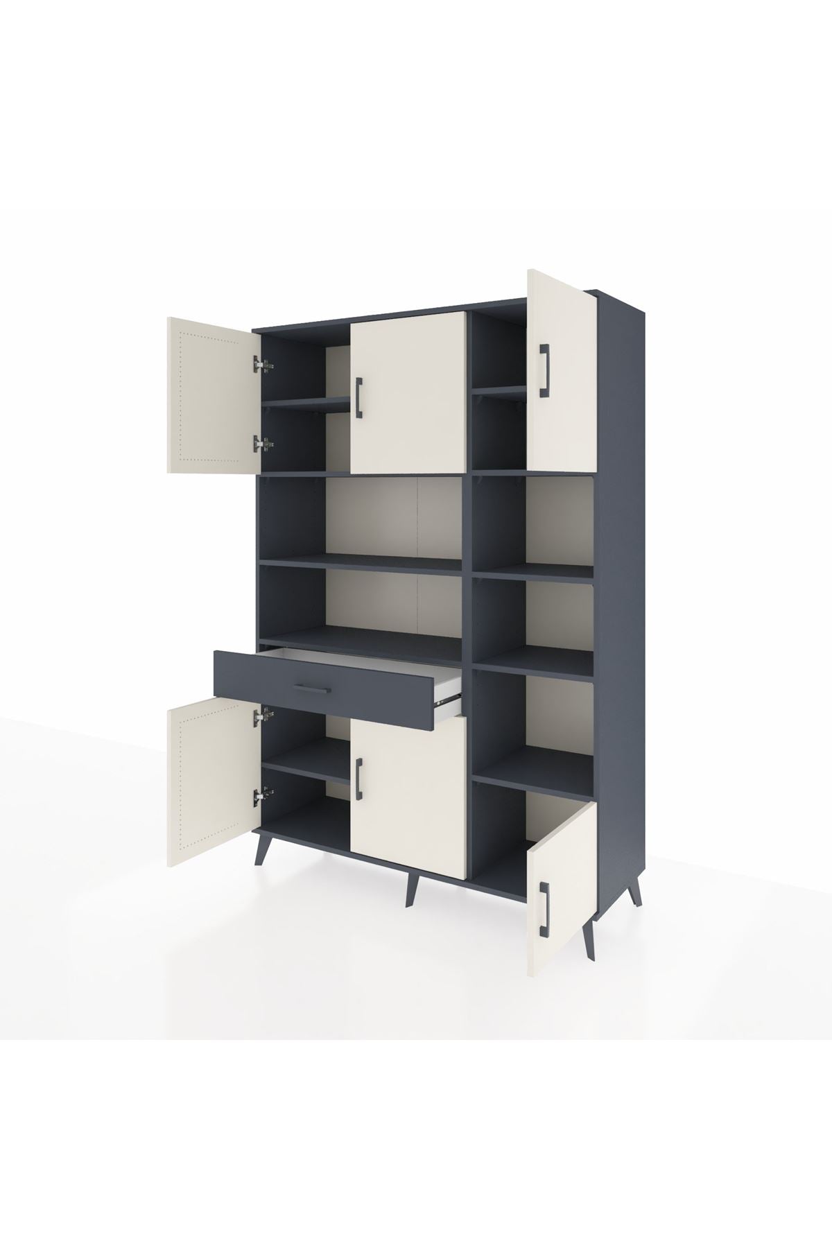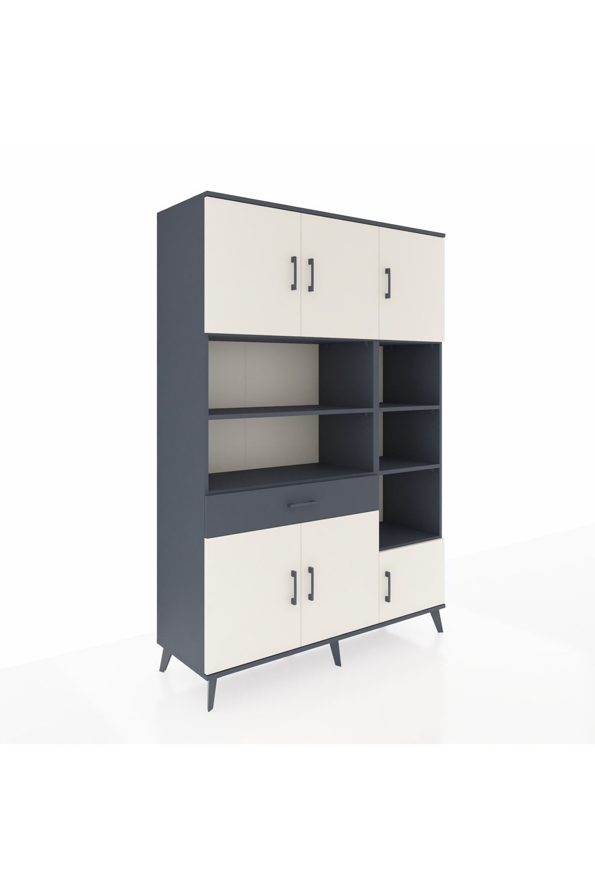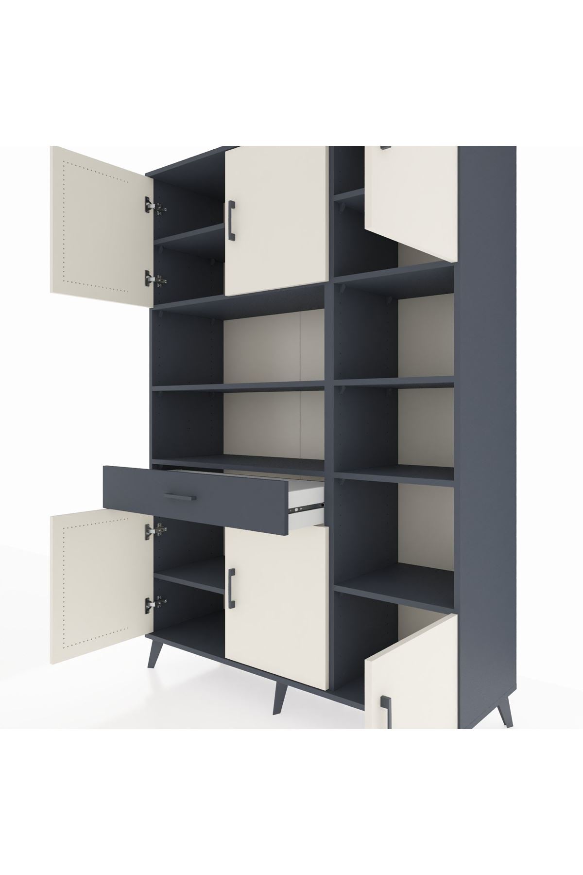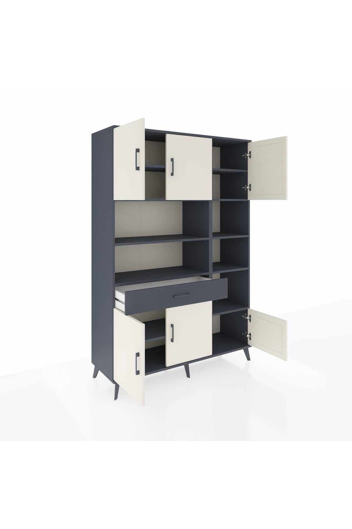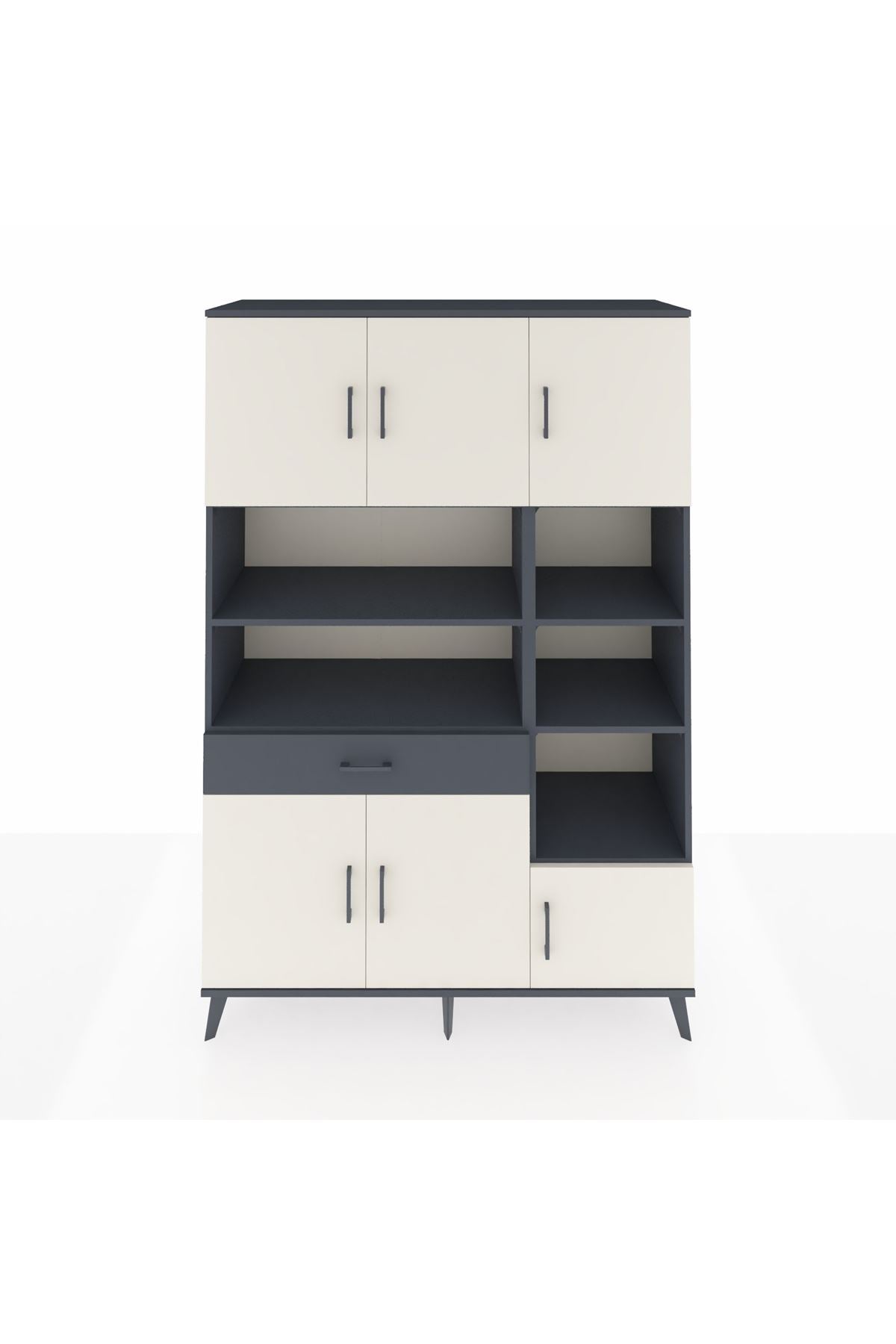 Hyperion Dolap 10 Raflı Tek Çekmeceli 6 Kapaklı 132x44x195 Antrasit-Aytaşı/Antrasit