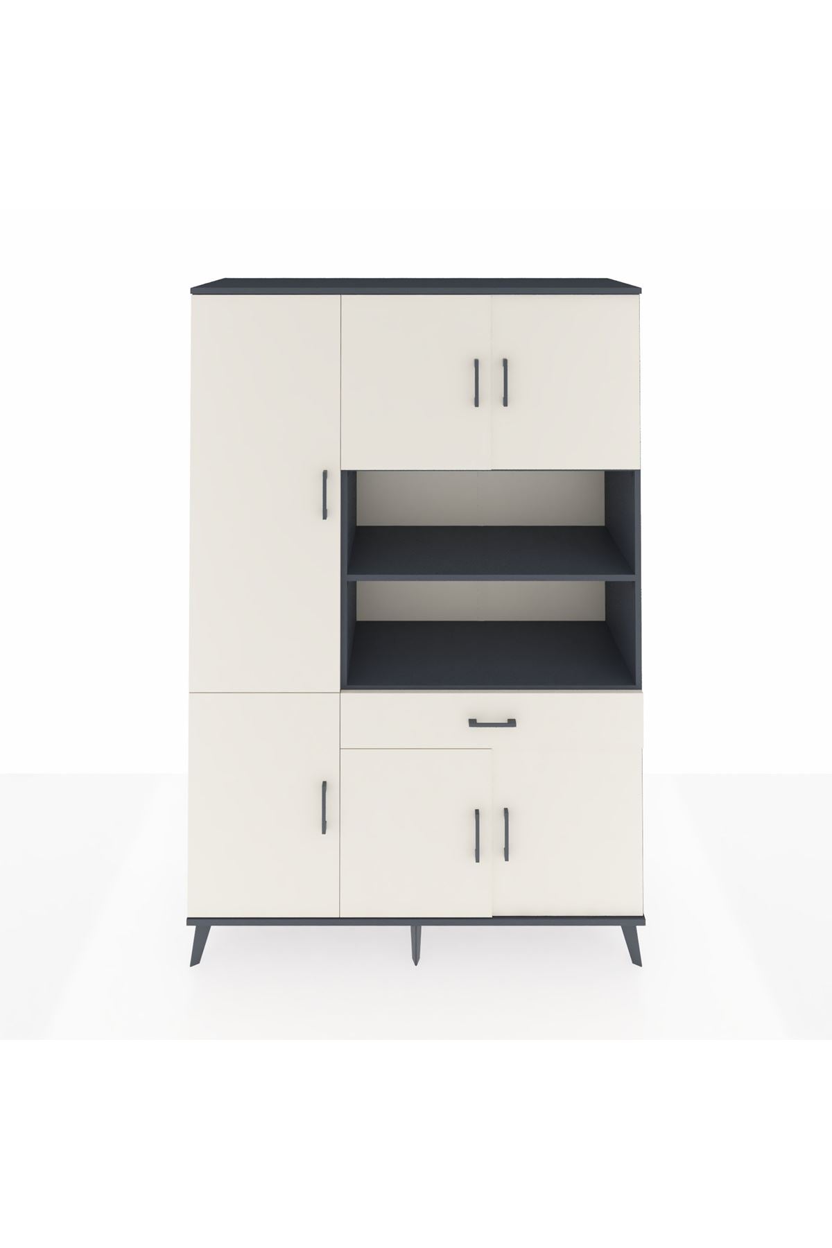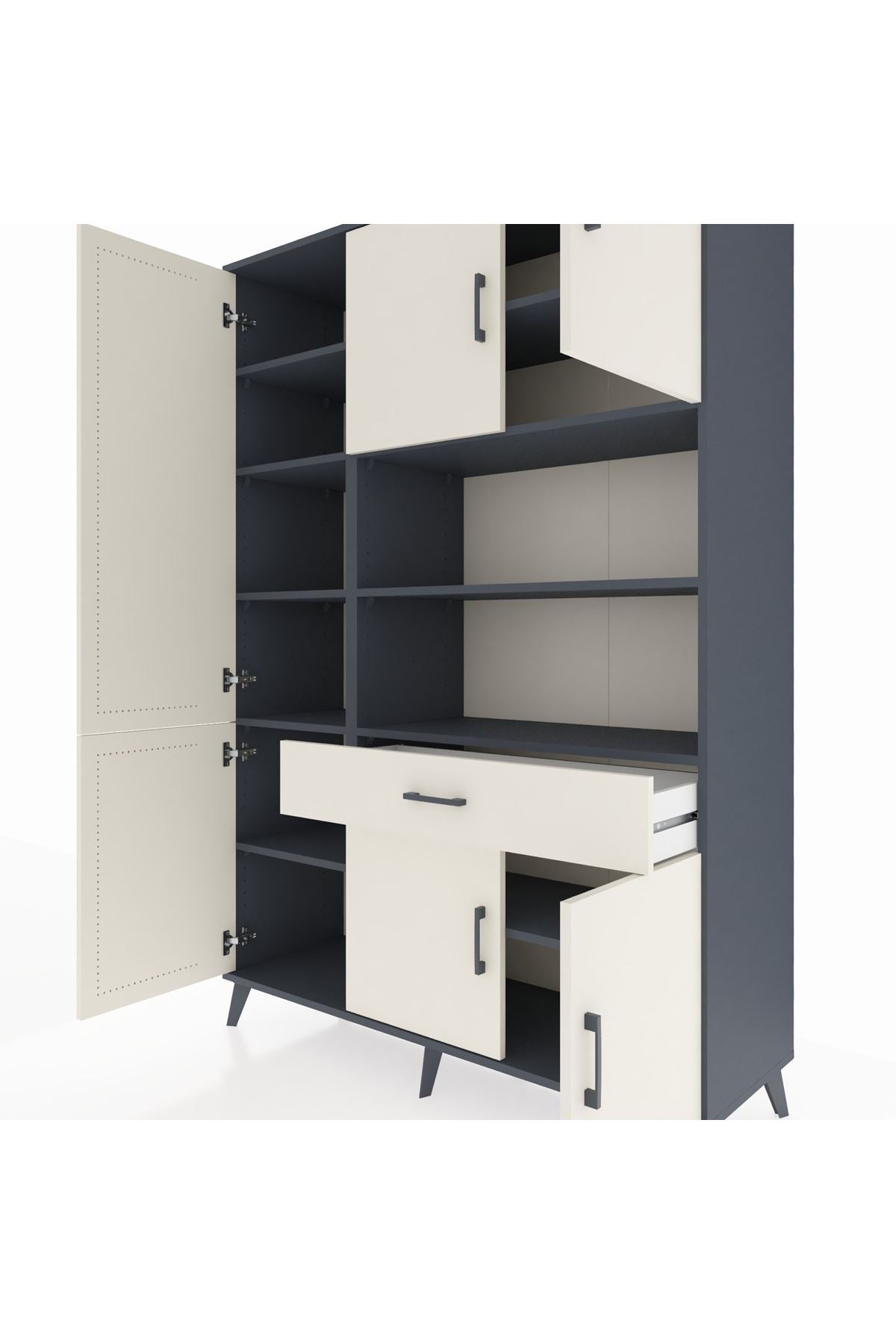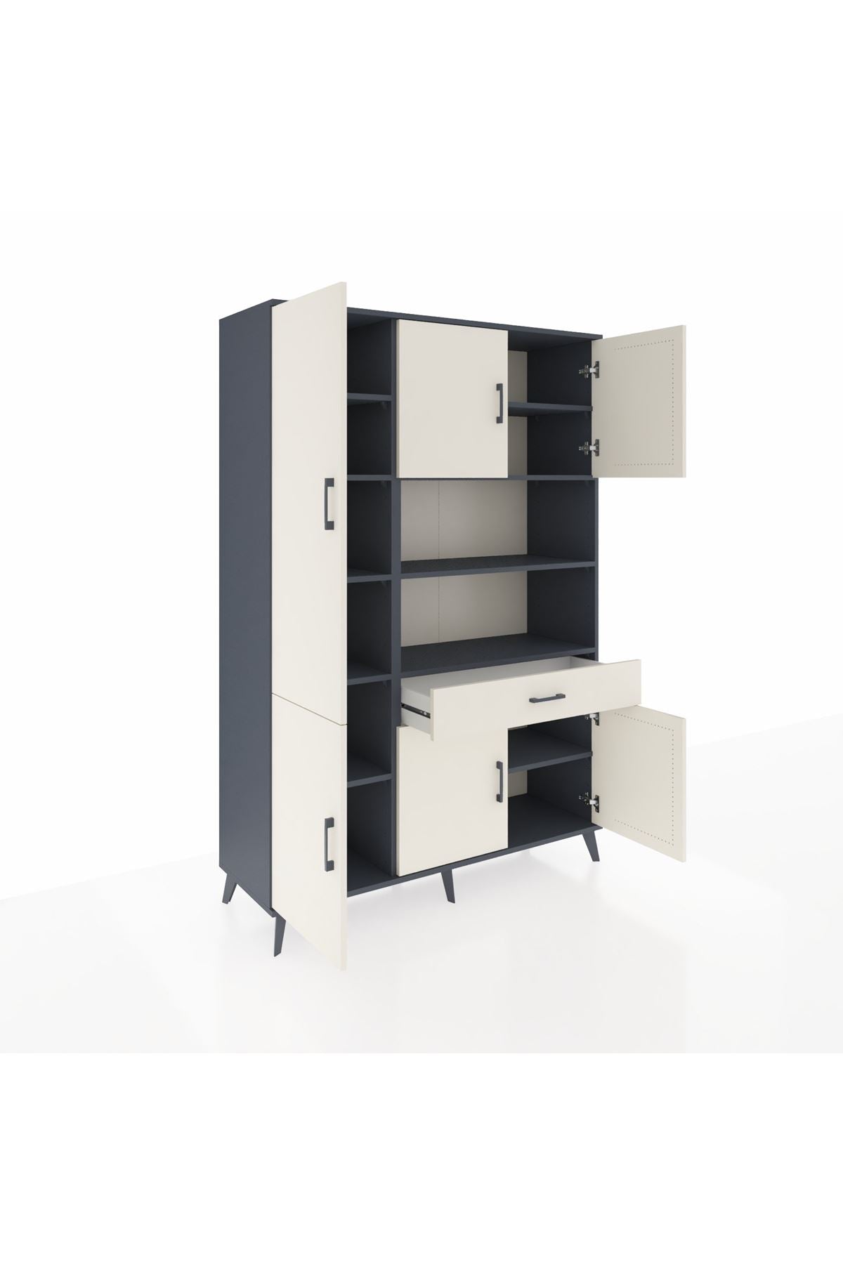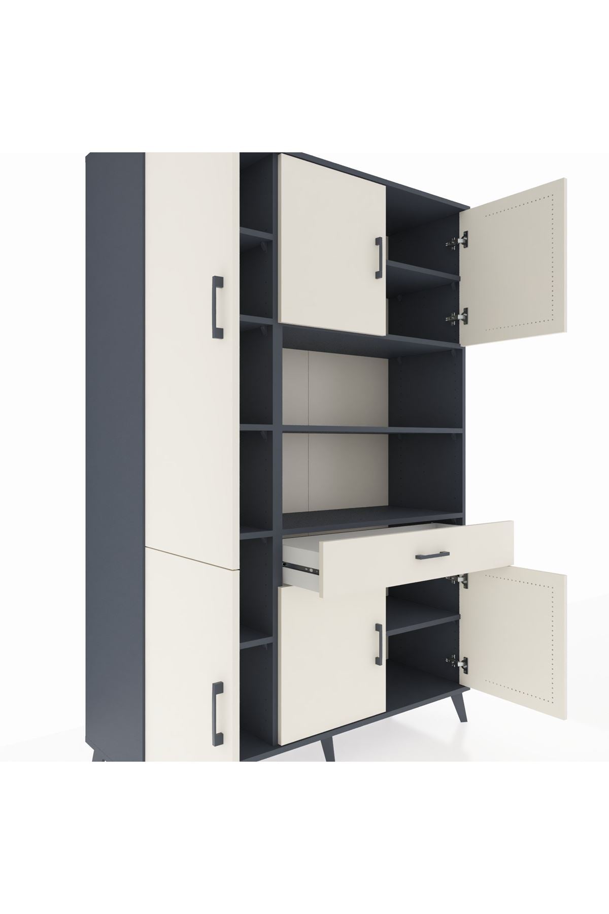 Hyperion Dolap 10 Raflı Tek Çekmeceli 6 Kapaklı 132x44x195 Antrasit-Aytaşı/Aytaşı