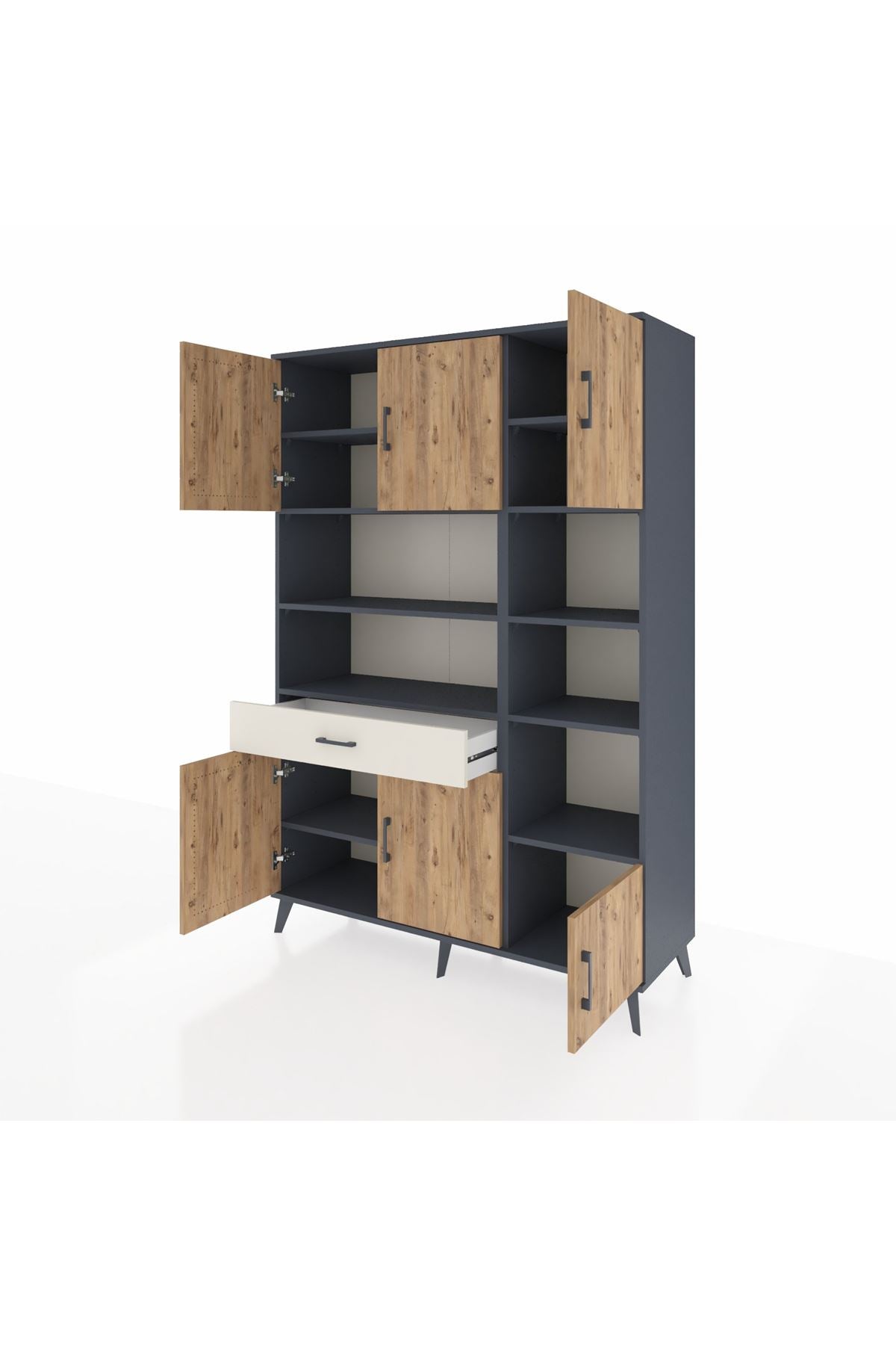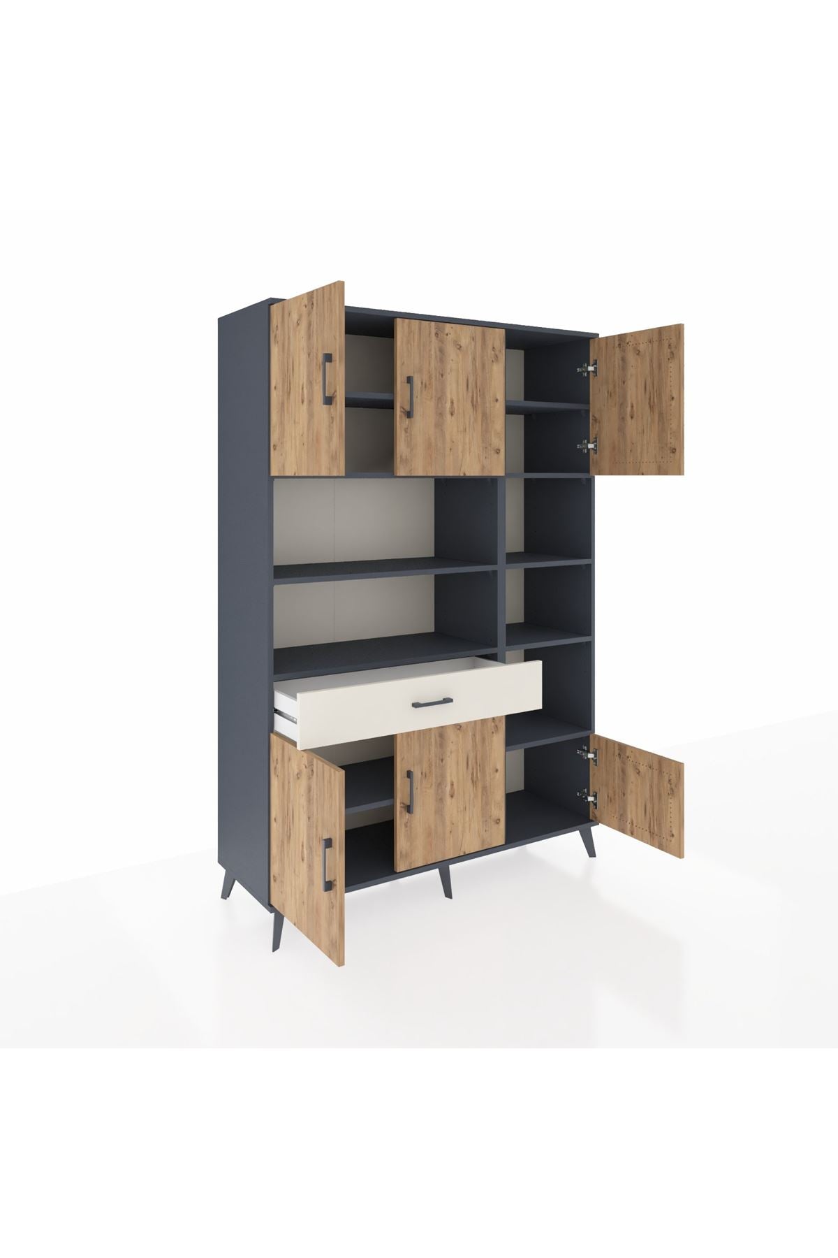 Hyperion Dolap 10 Raflı Tek Çekmeceli 6 Kapaklı 132x44x195 Antrasit-Çam/Aytaşı