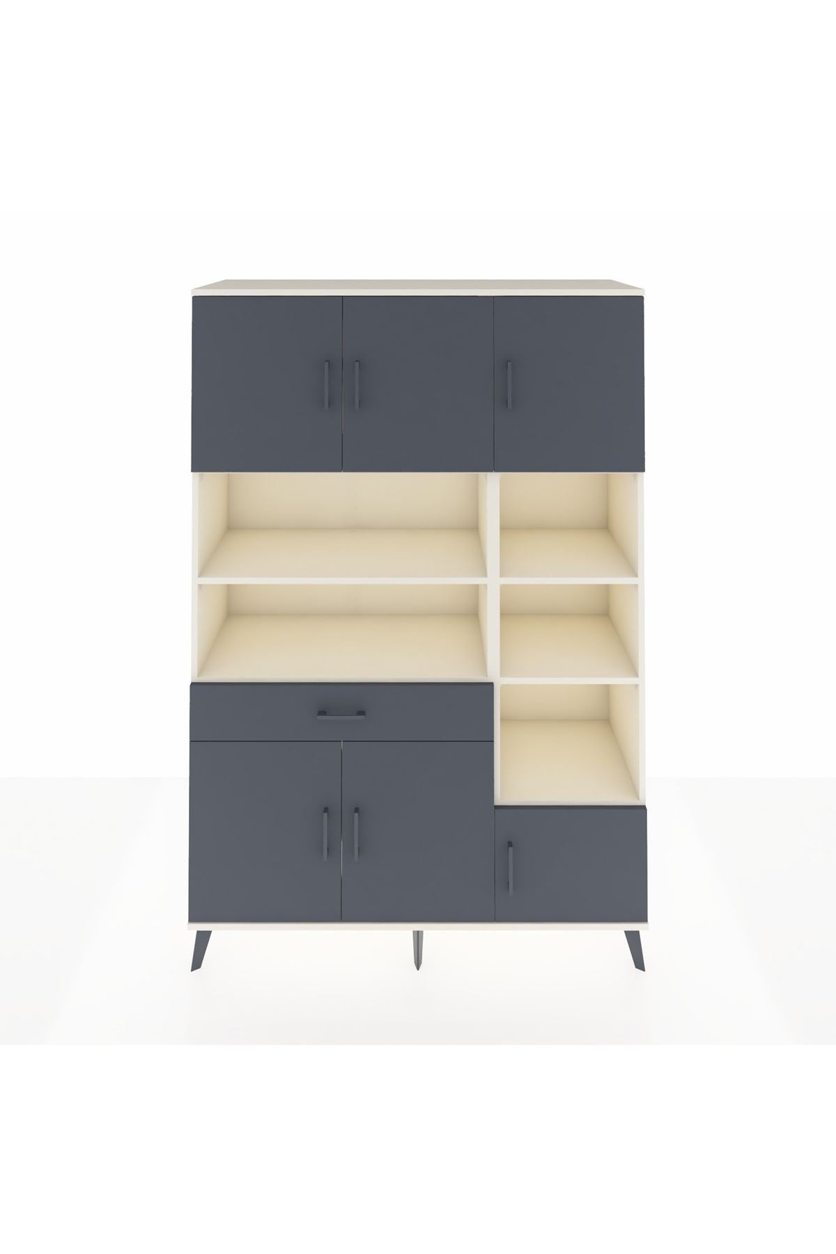 Hyperion Dolap 10 Raflı Tek Çekmeceli 6 Kapaklı 132x44x195 Aytaşı-Antrasit/Antrasit