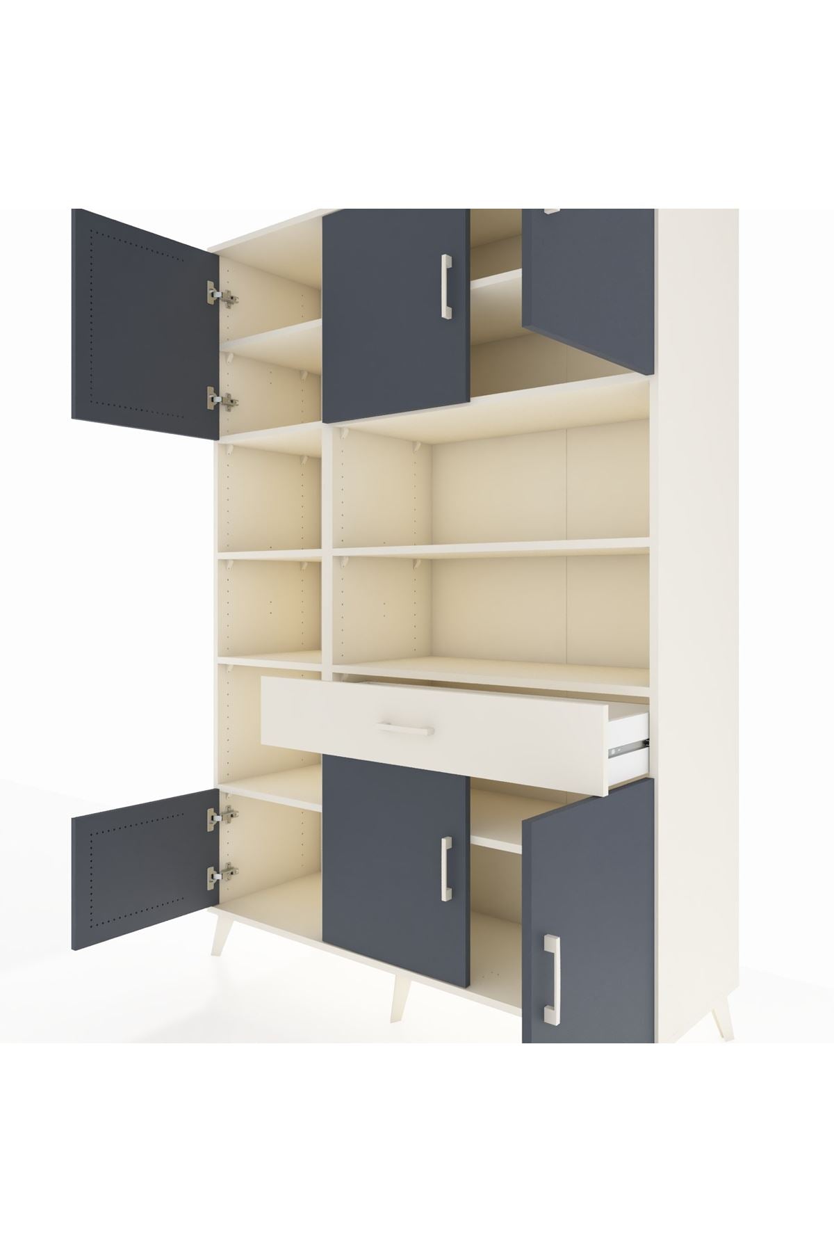 Hyperion Dolap 10 Raflı Tek Çekmeceli 6 Kapaklı 132x44x195 Aytaşı-Antrasit/Aytaşı