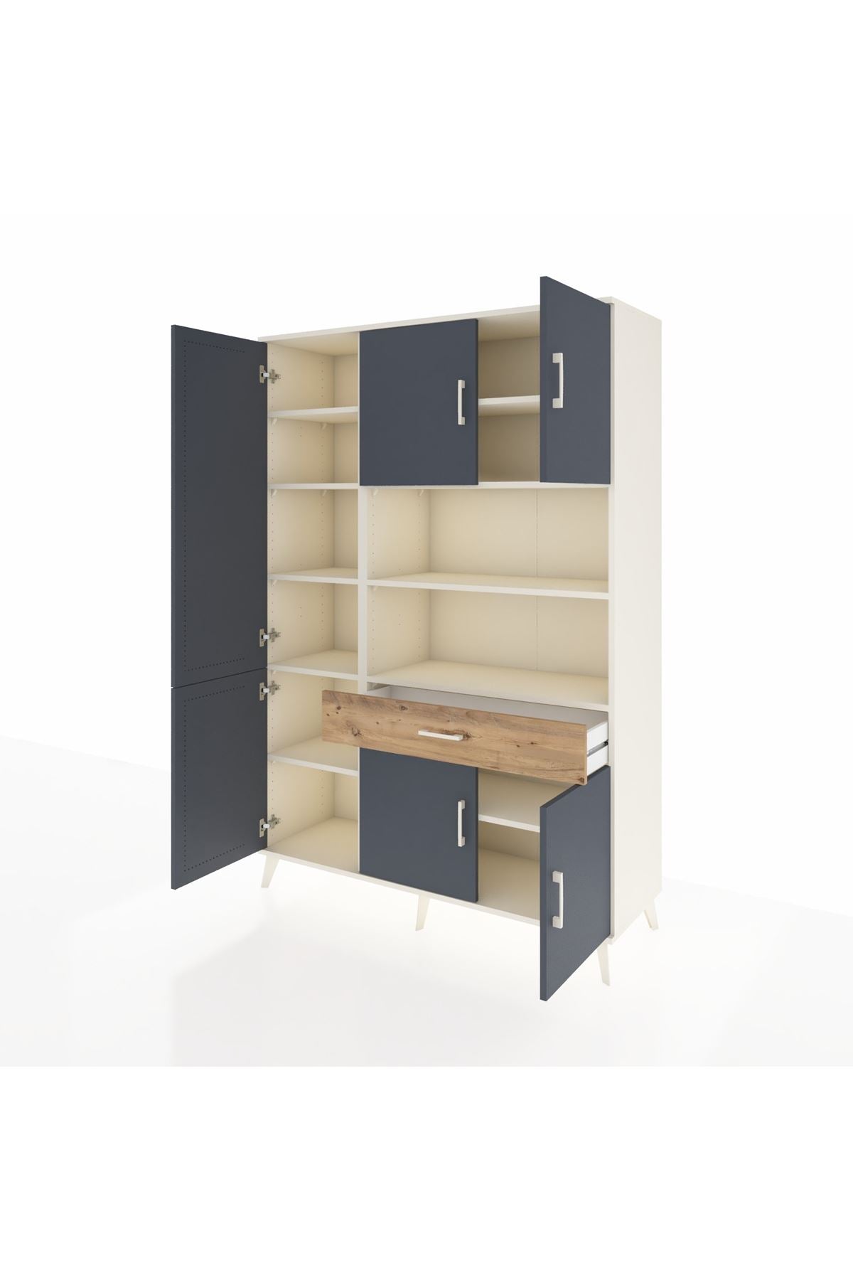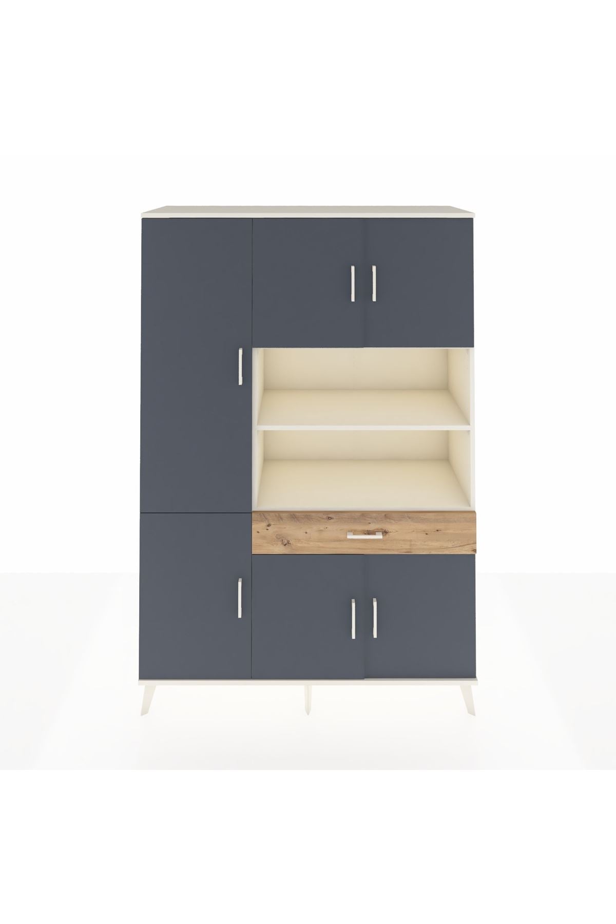 Hyperion Dolap 10 Raflı Tek Çekmeceli 6 Kapaklı 132x44x195 Aytaşı-Antrasit/Çam