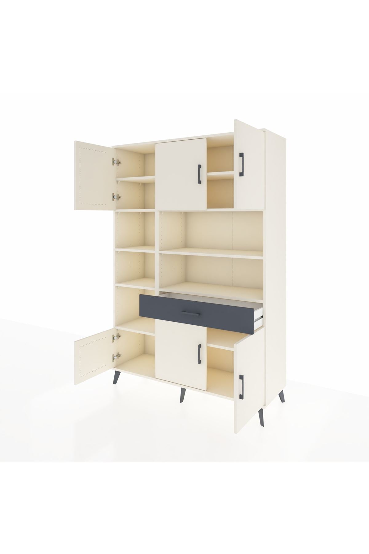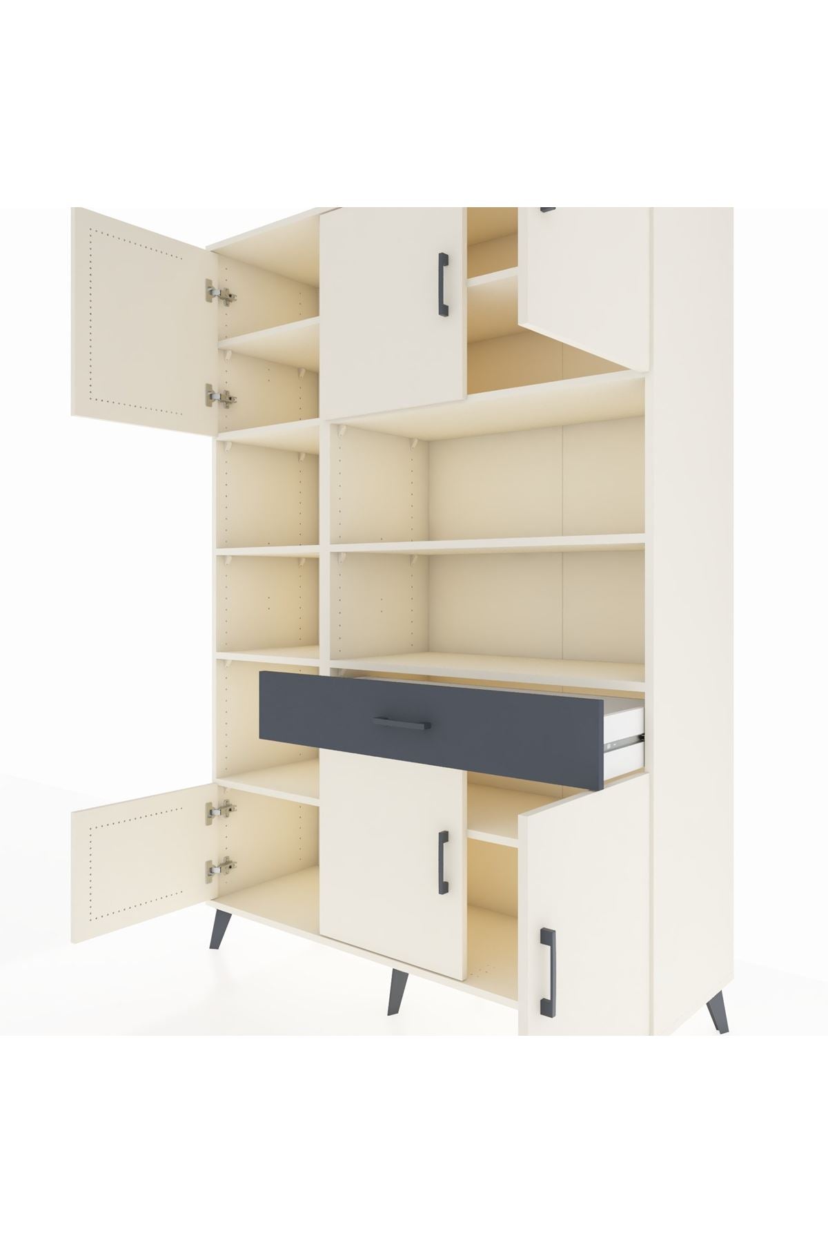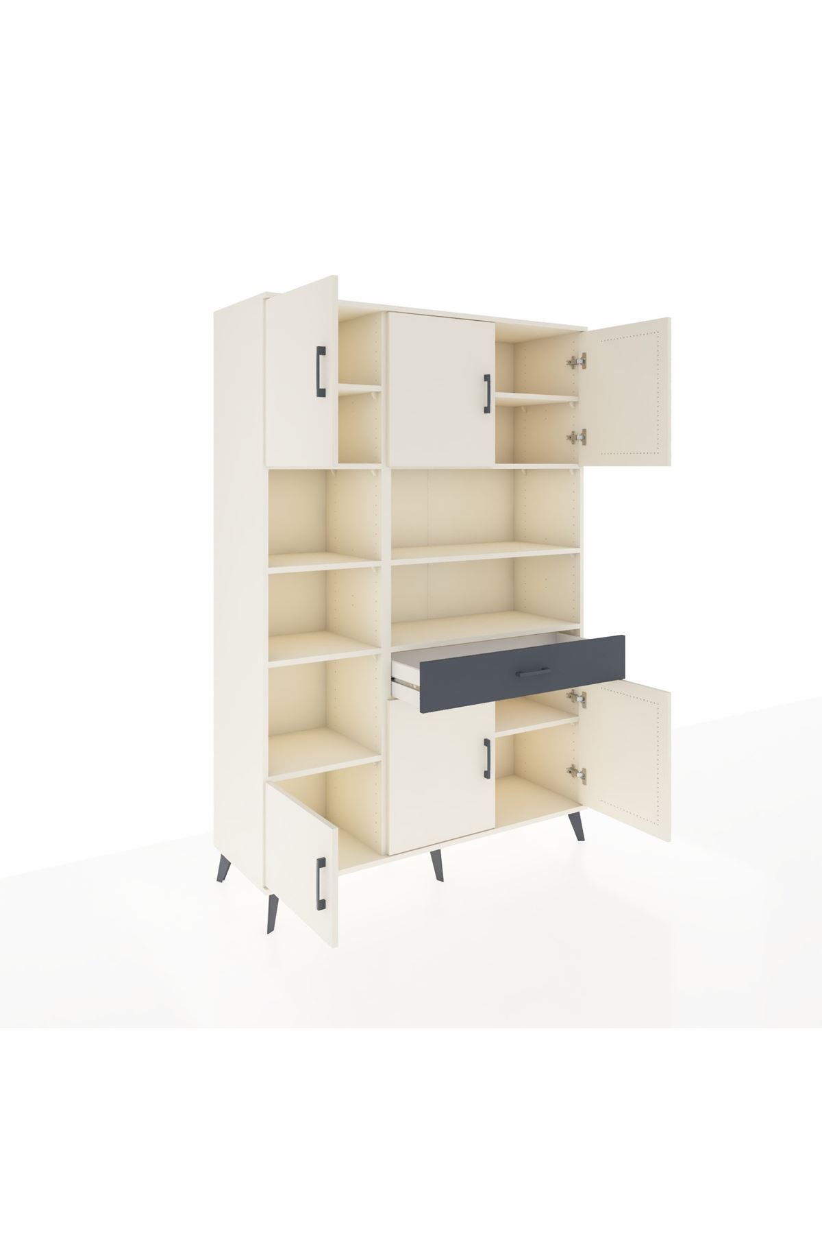 Hyperion Dolap 10 Raflı Tek Çekmeceli 6 Kapaklı 132x44x195 Aytaşı-Aytaşı/Antrasit