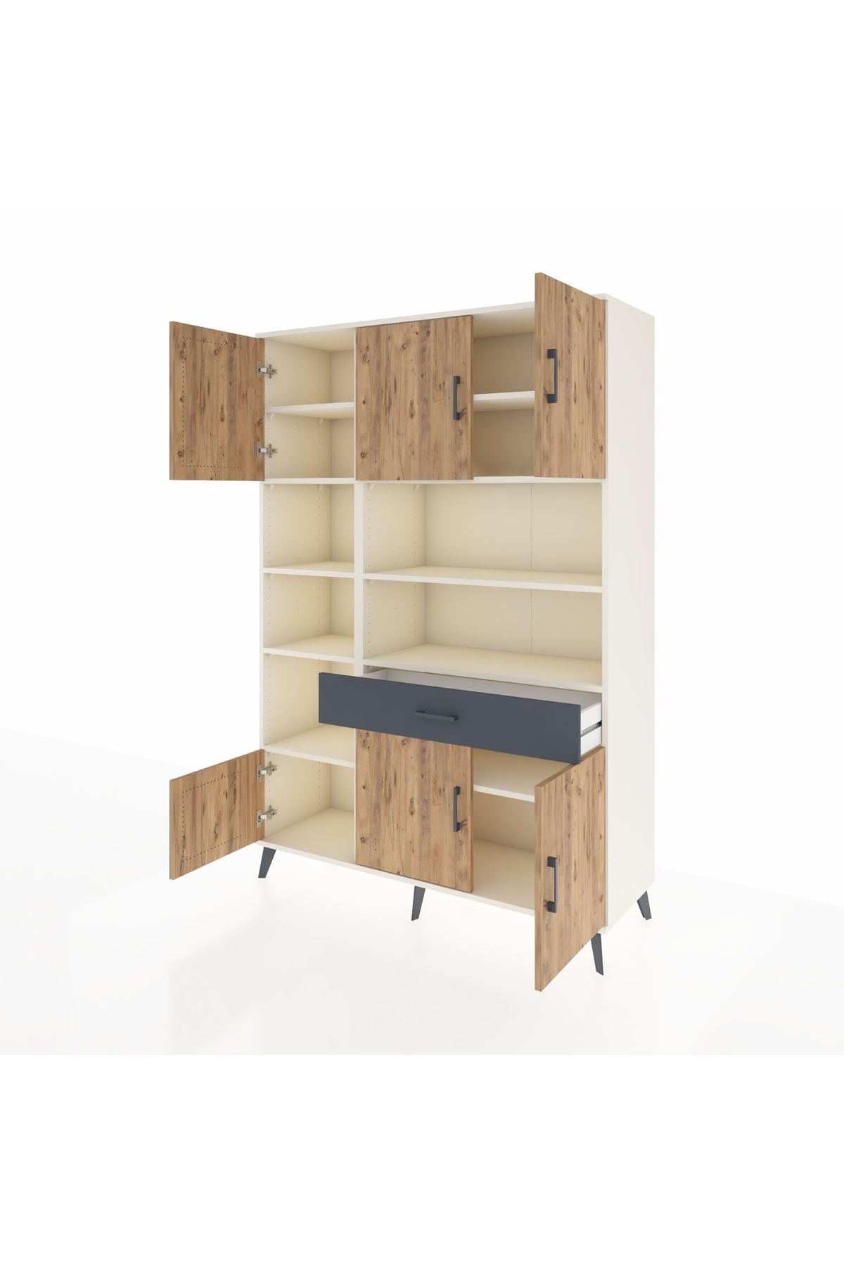 Hyperion Dolap 10 Raflı Tek Çekmeceli 6 Kapaklı 132x44x195 Aytaşı-Çam/Antrasit