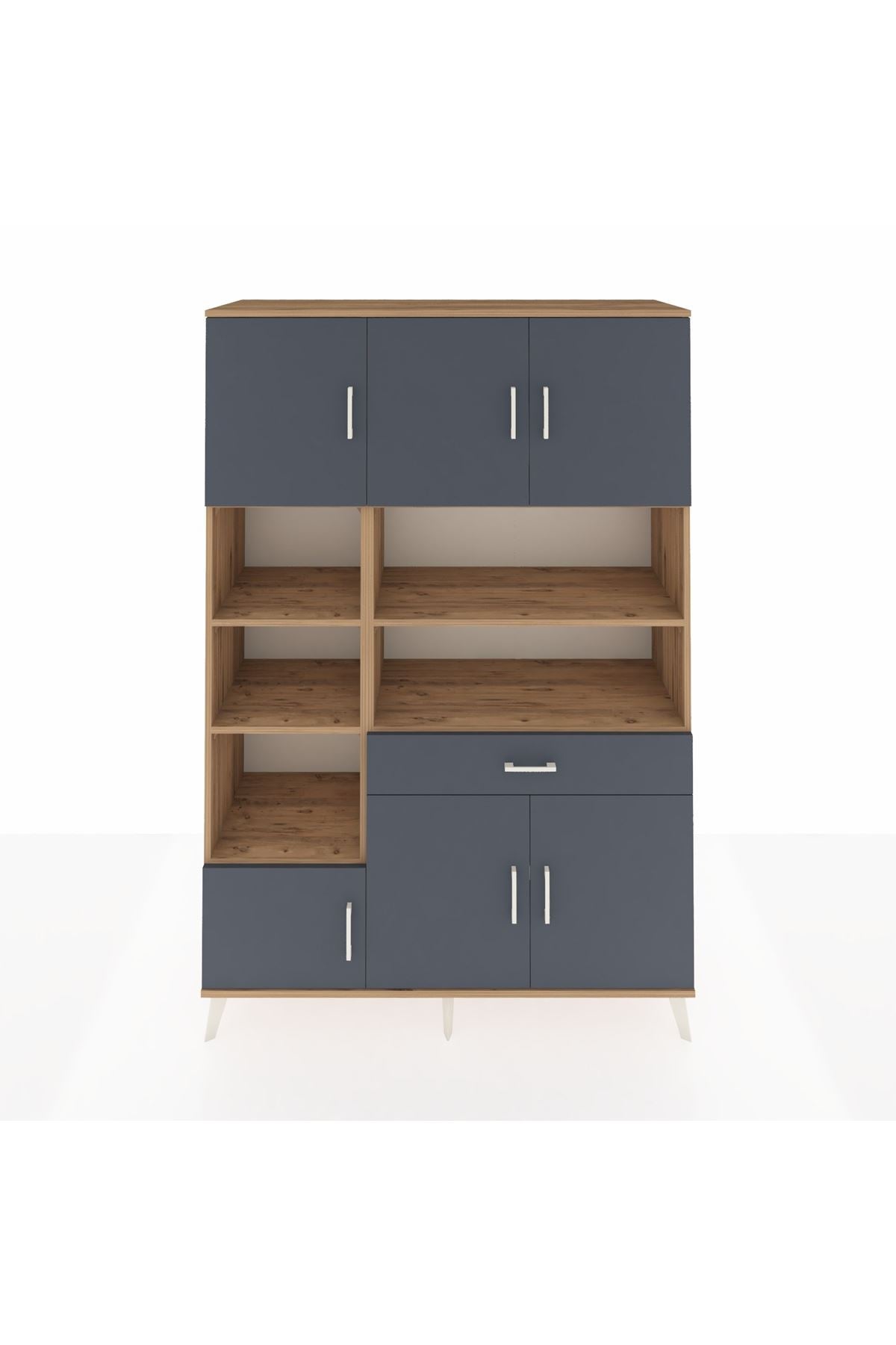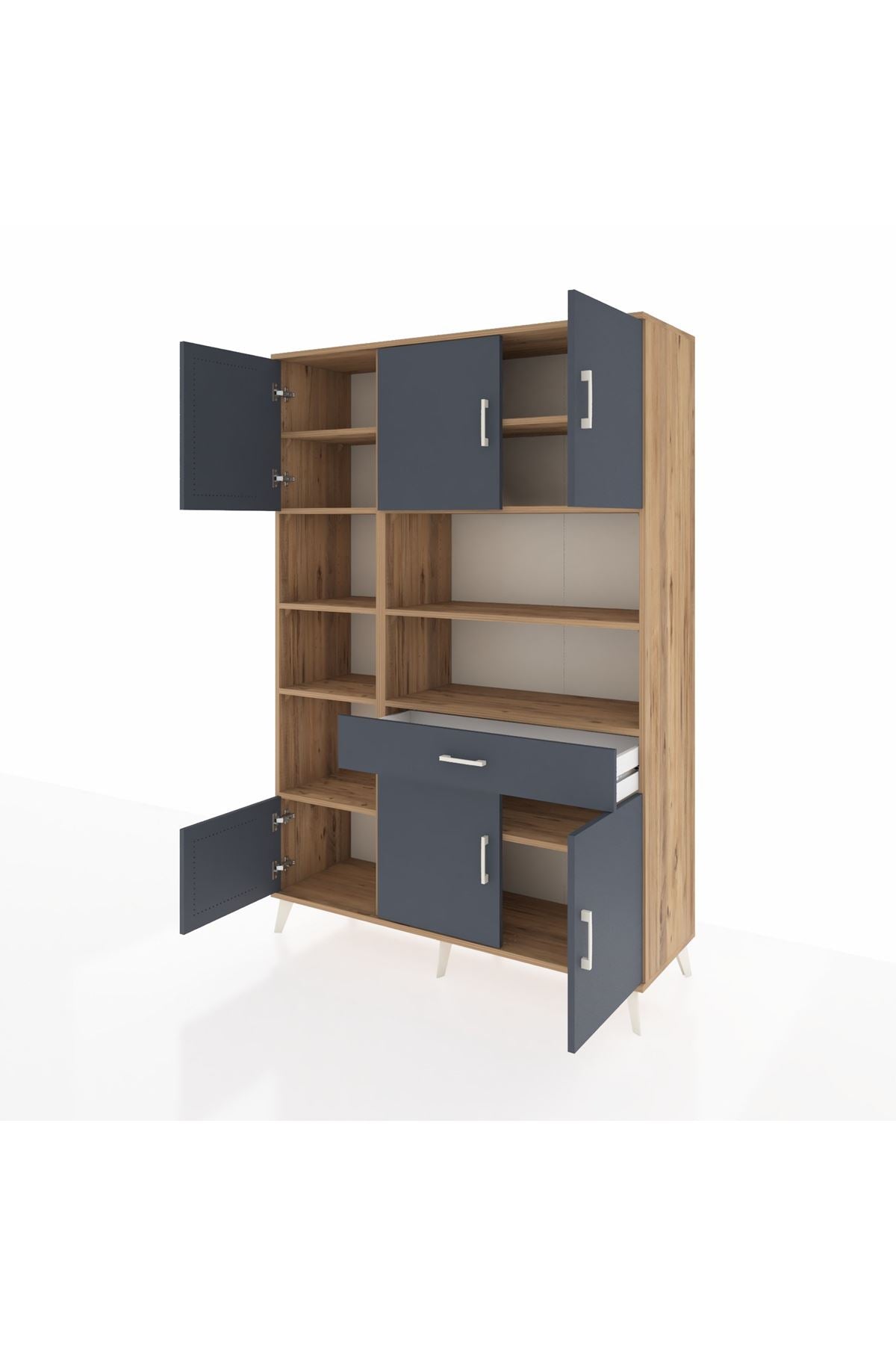 Hyperion Dolap 10 Raflı Tek Çekmeceli 6 Kapaklı 132x44x195 Çam-Antrasit/Antrasit