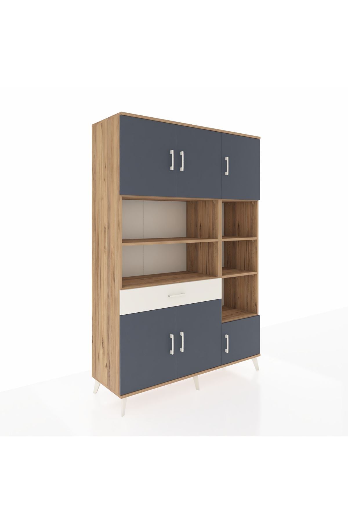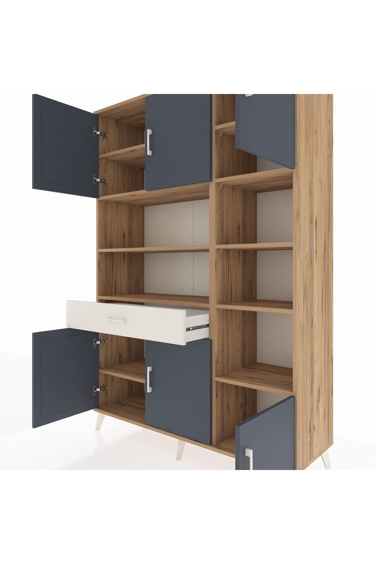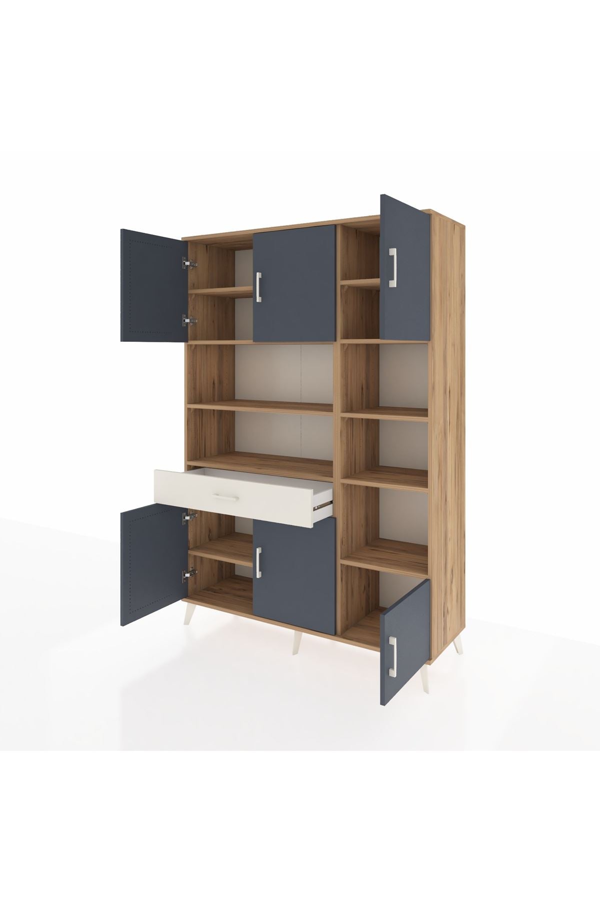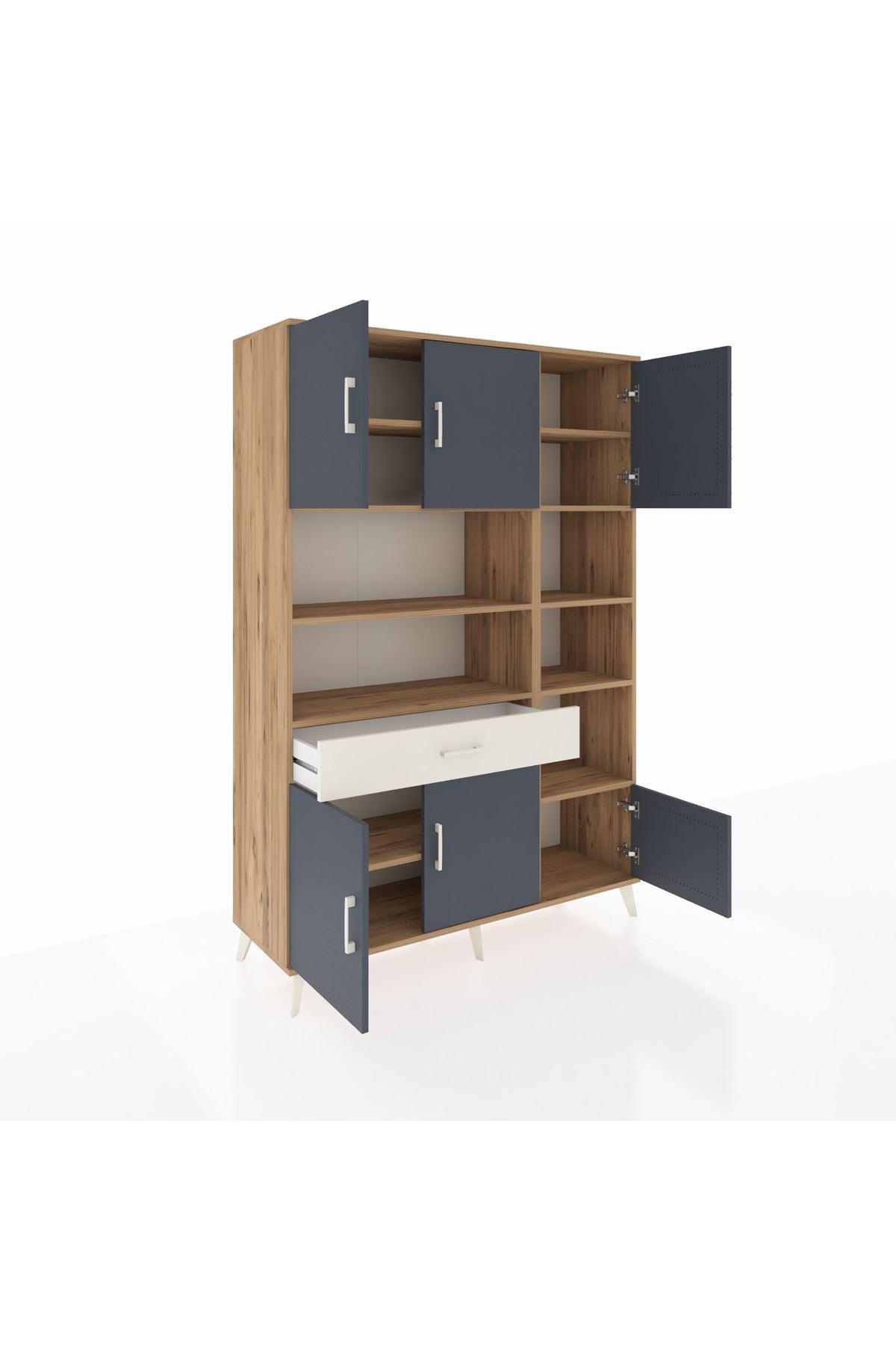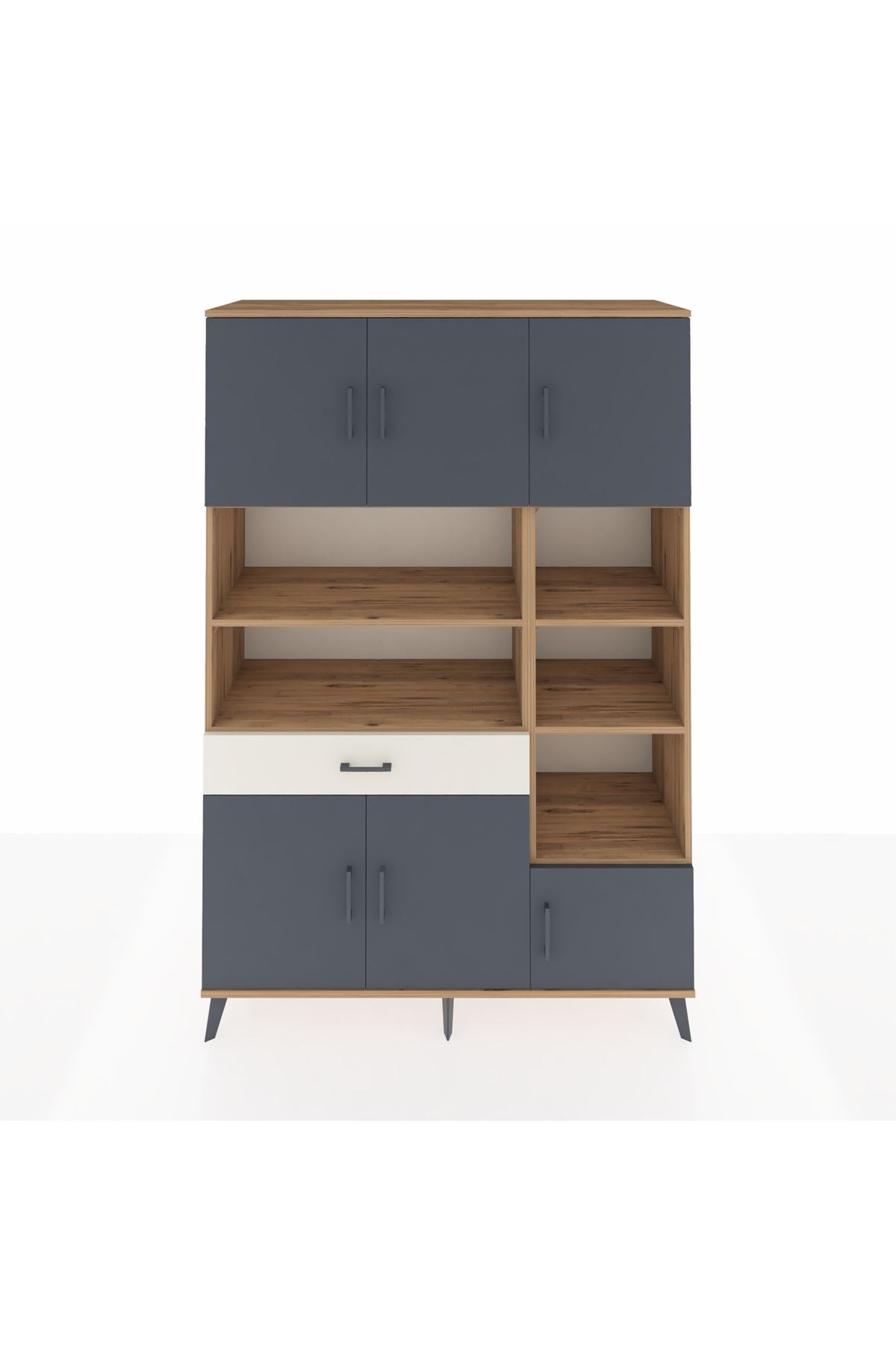 Hyperion Dolap 10 Raflı Tek Çekmeceli 6 Kapaklı 132x44x195 Çam-Antrasit/Aytaşı