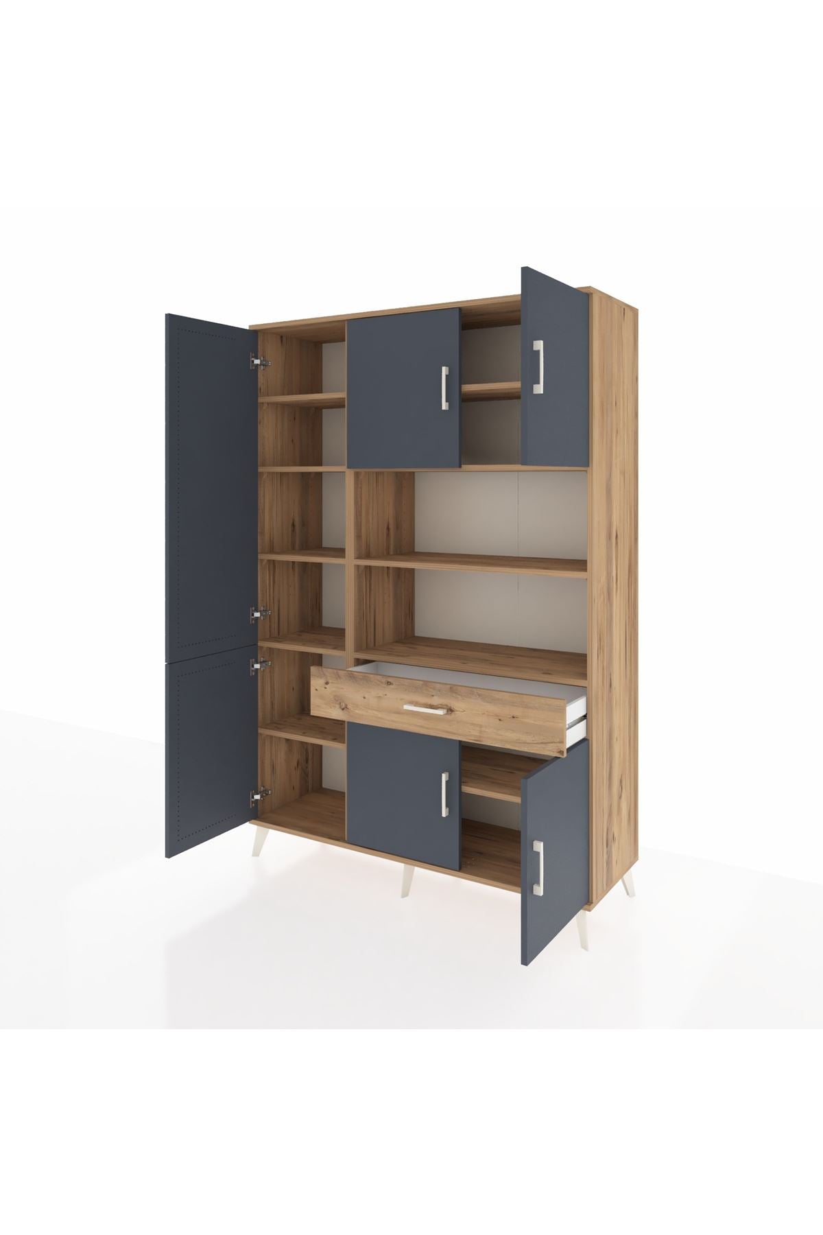 Hyperion Dolap 10 Raflı Tek Çekmeceli 6 Kapaklı 132x44x195 Çam-Antrasit/Çam