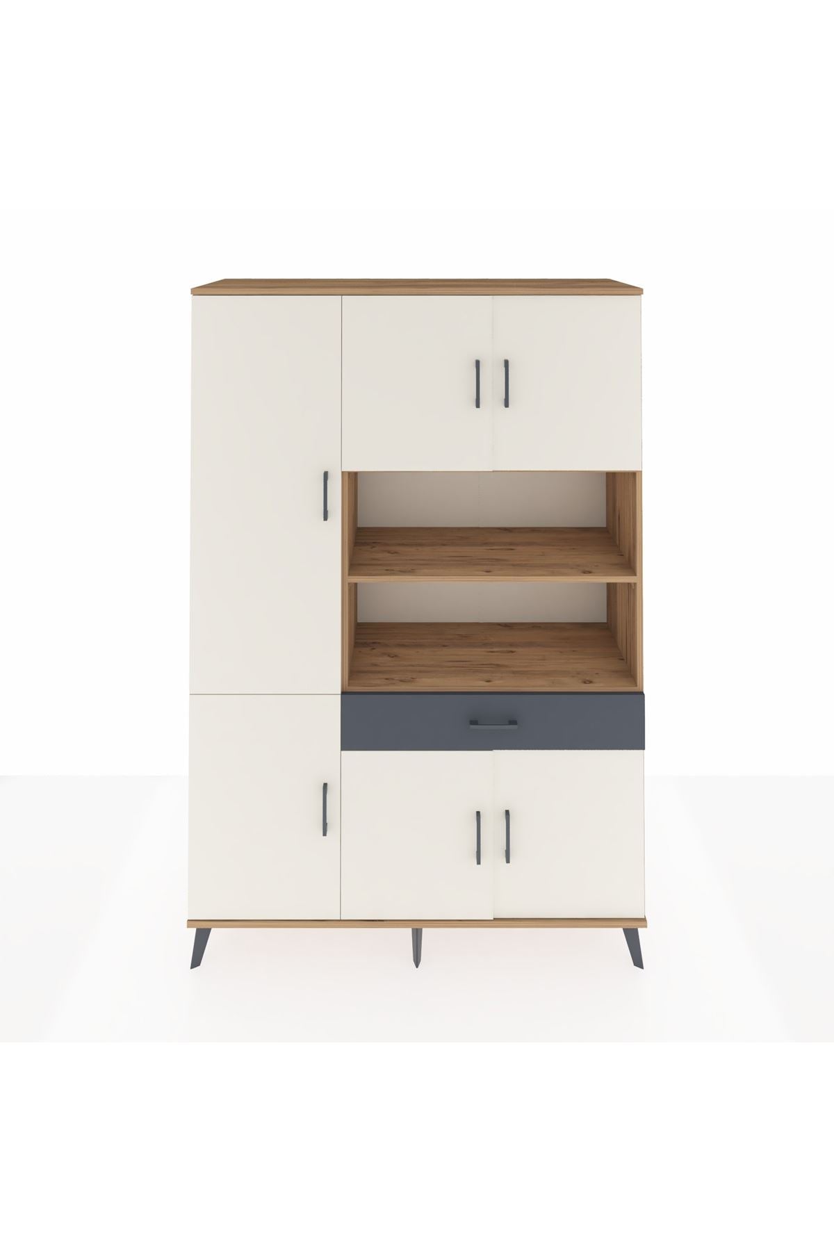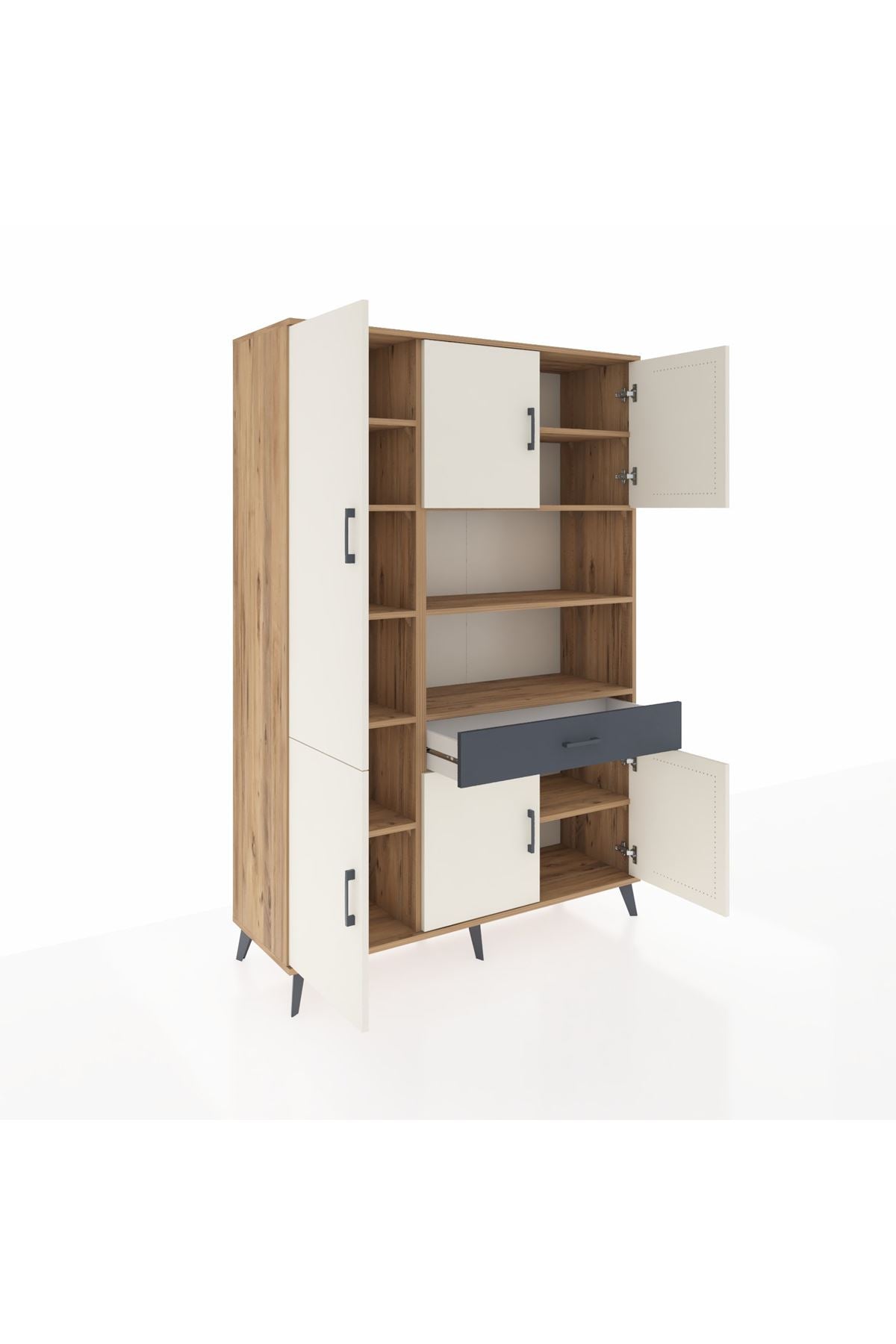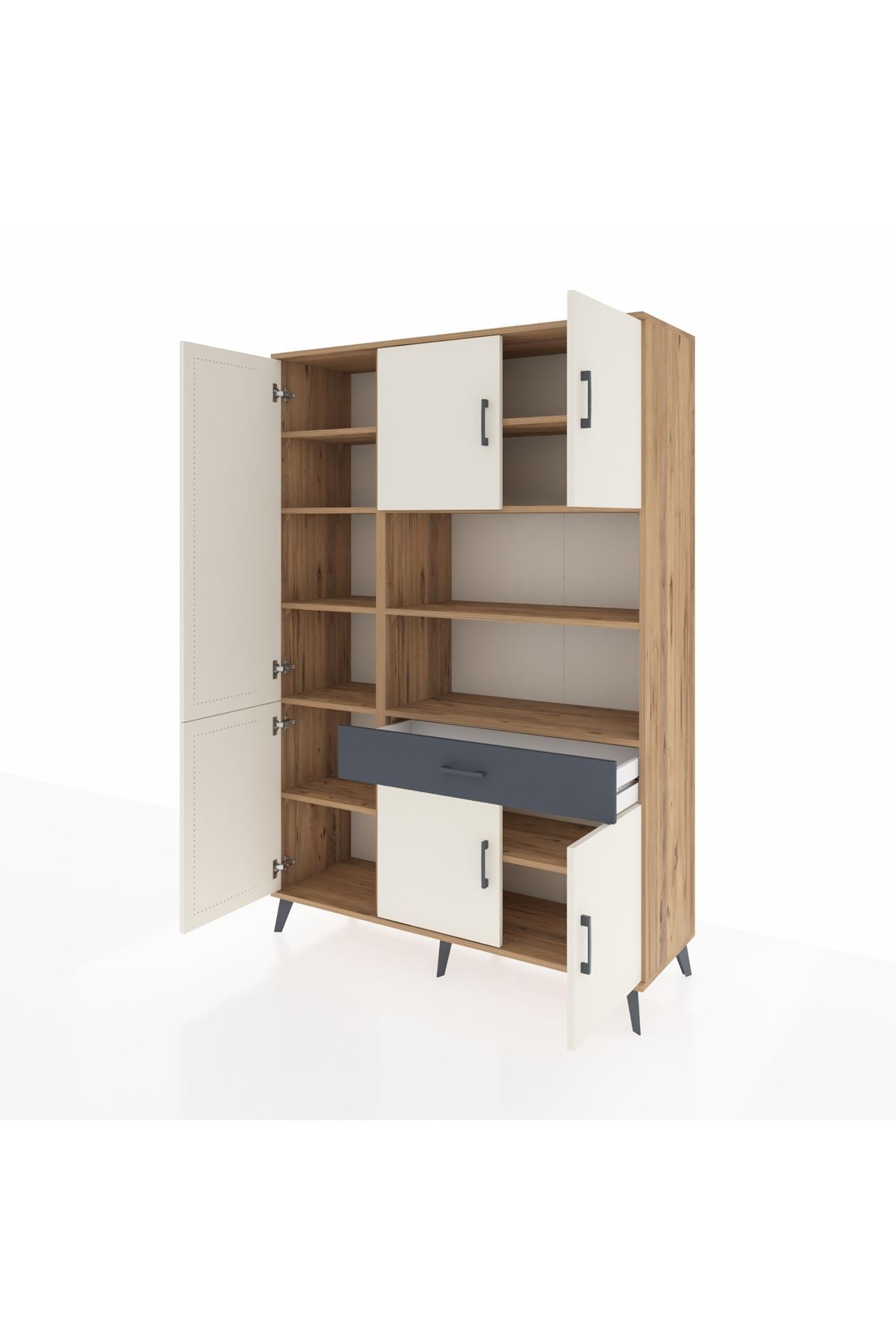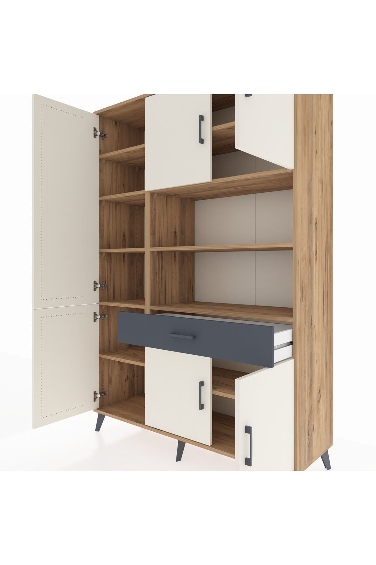 Hyperion Dolap 10 Raflı Tek Çekmeceli 6 Kapaklı 132x44x195 Çam-Aytaşı/Antrasit