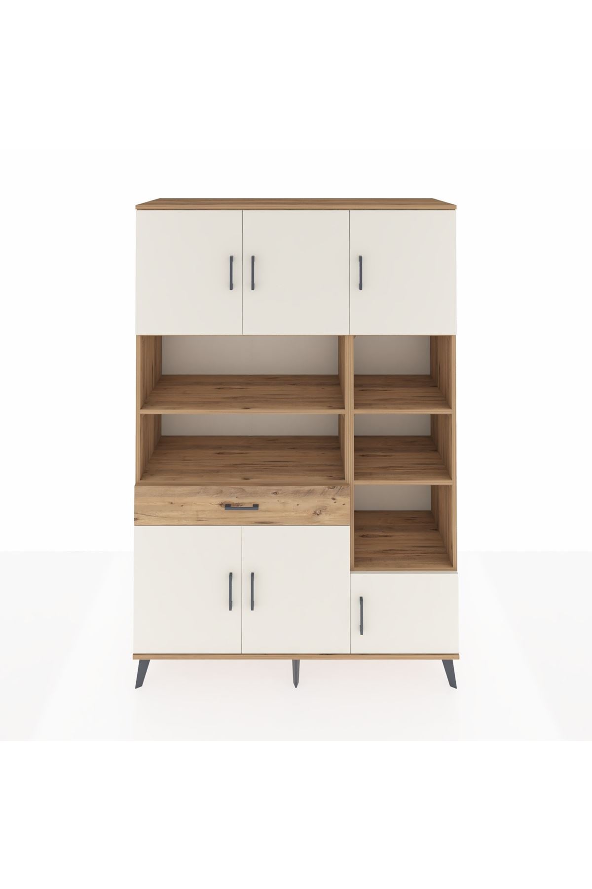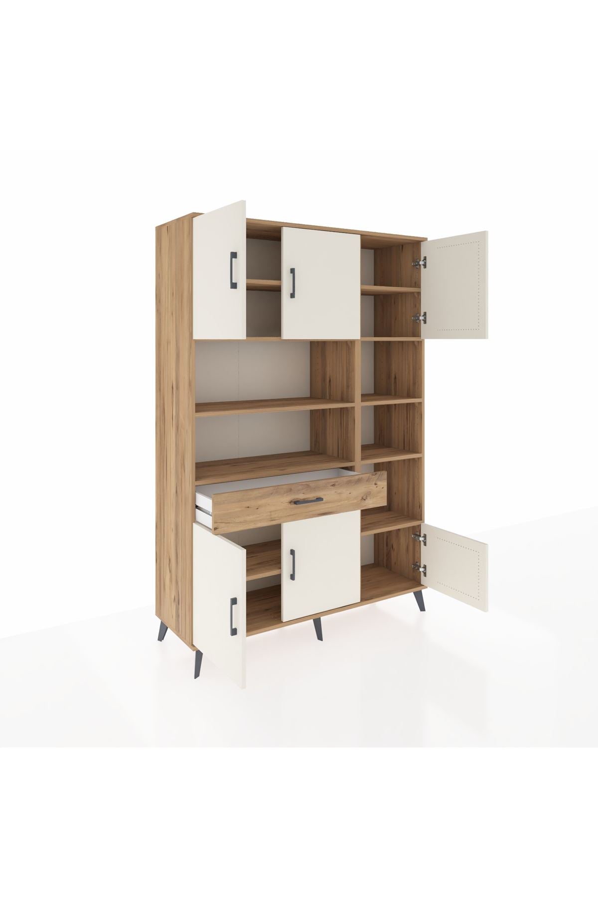 Hyperion Dolap 10 Raflı Tek Çekmeceli 6 Kapaklı 132x44x195 Çam-Aytaşı/Çam