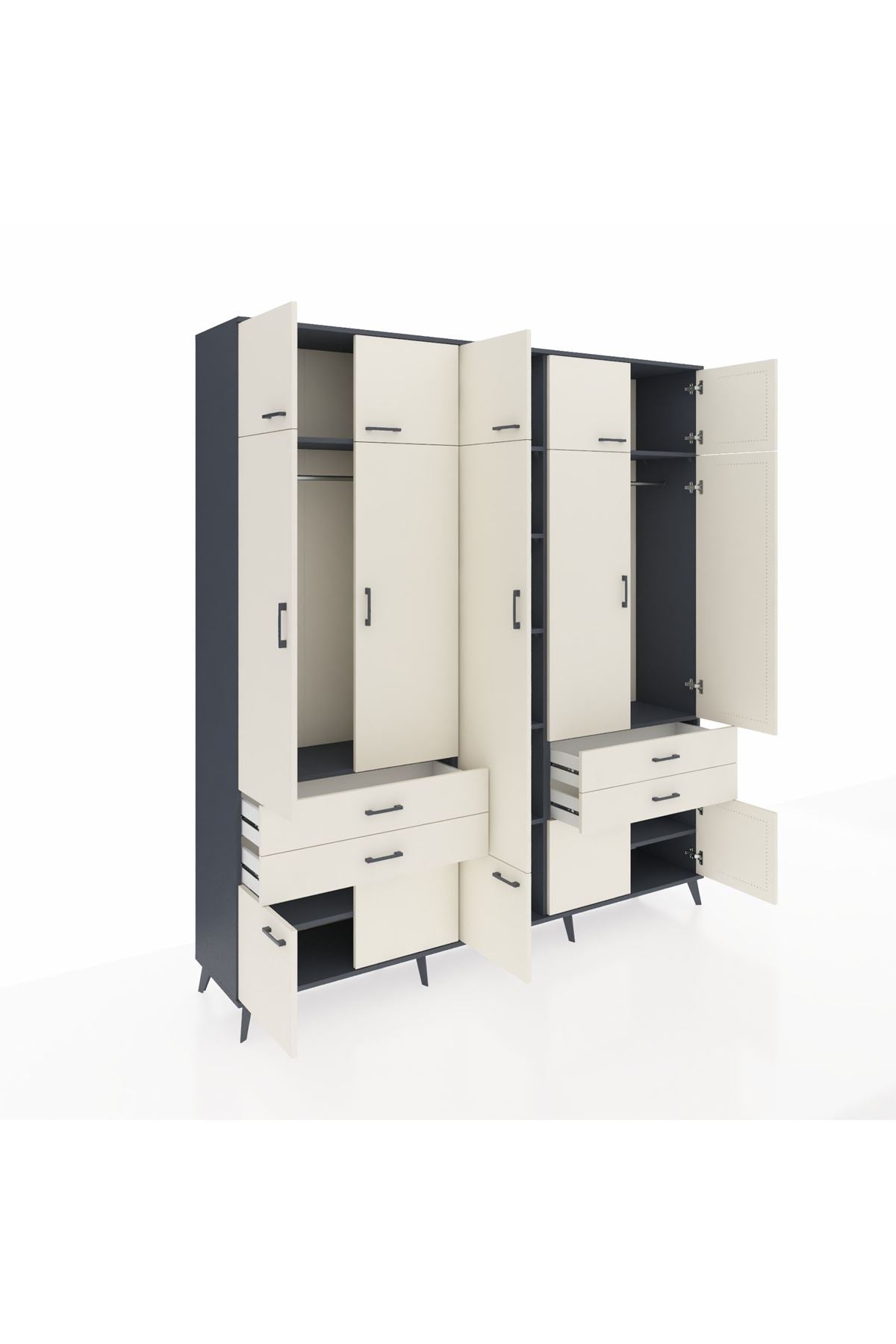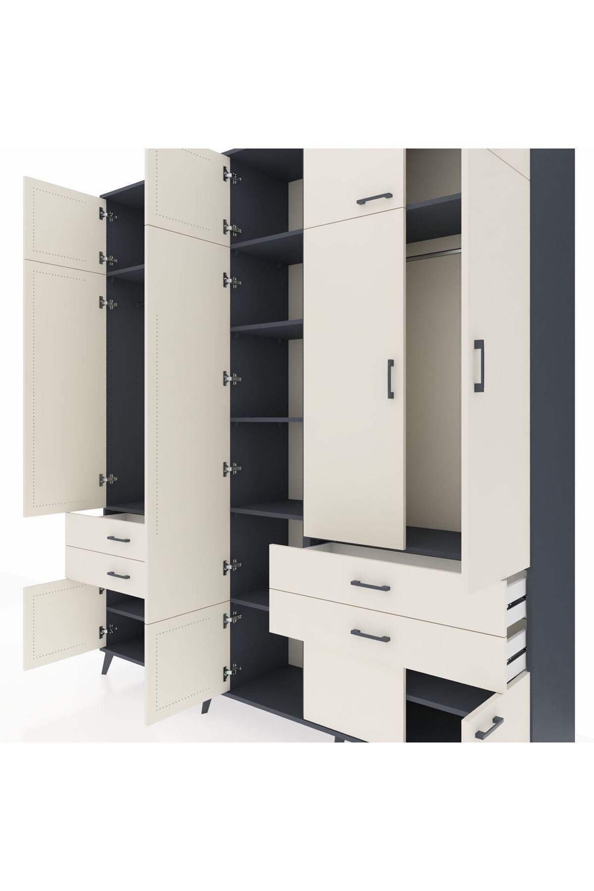Hyperion Dolap 11 Raflı 4 Çekmeceli 2 Askılı 220x44x243 Antrasit-Aytaşı/Aytaşı