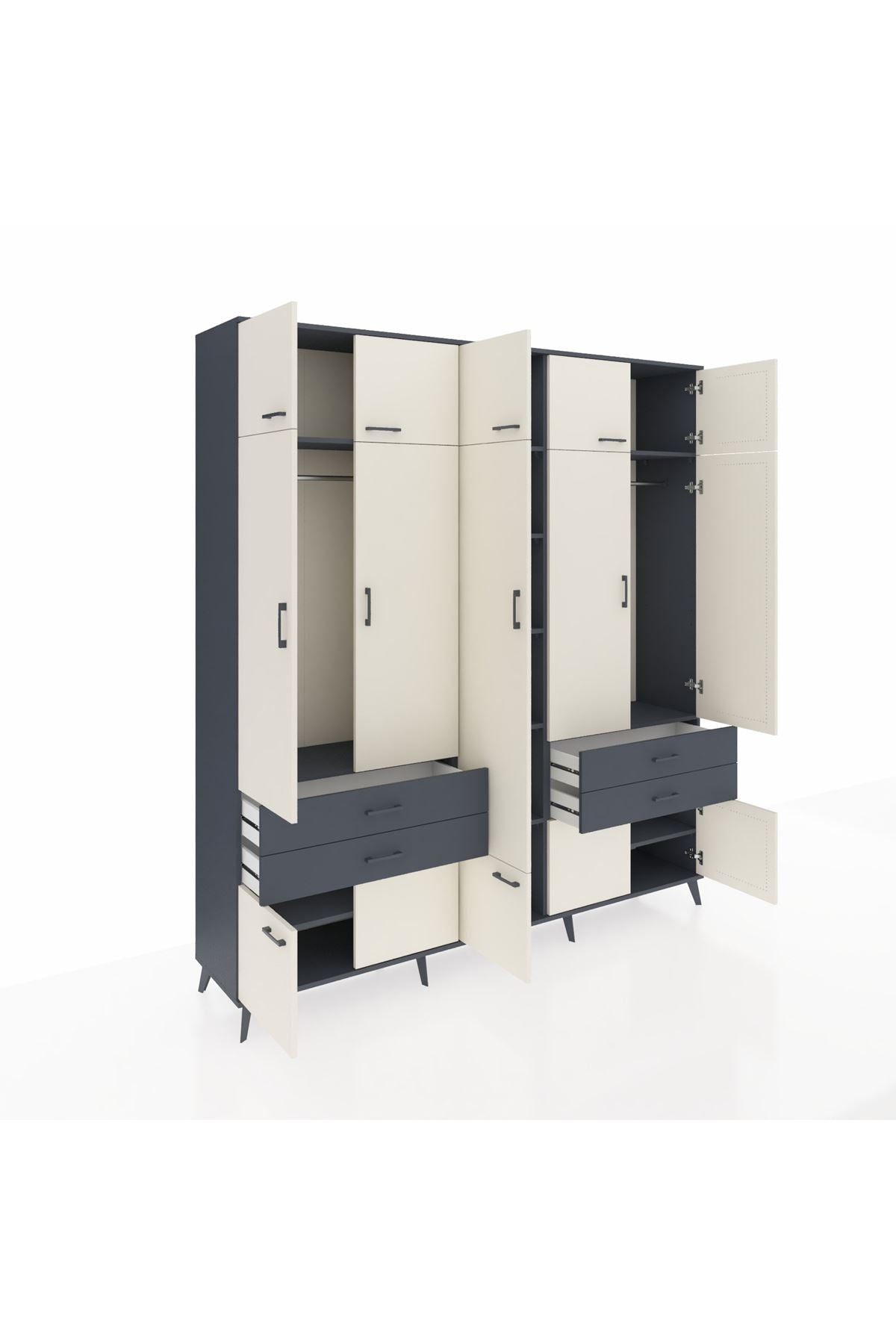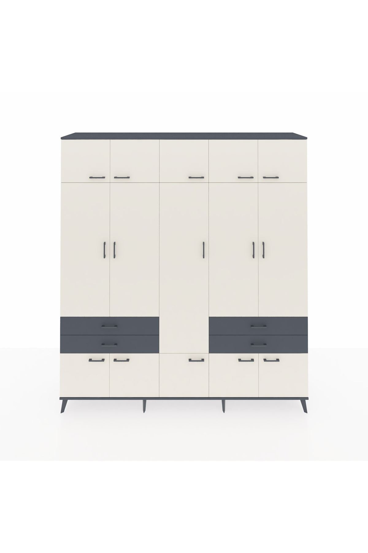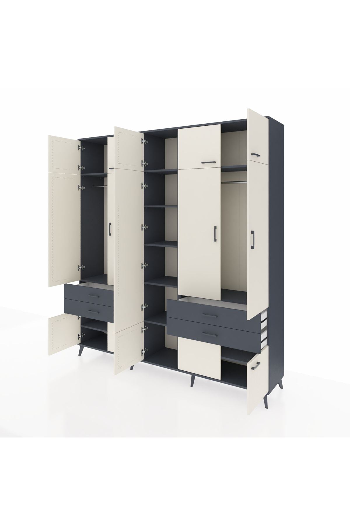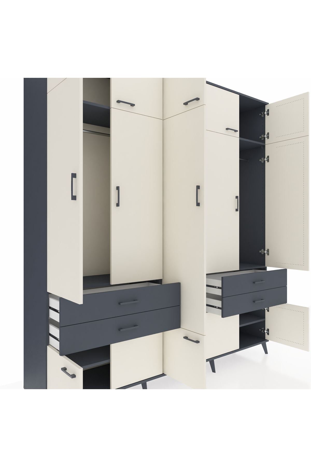Hyperion Dolap 11 Raflı 4 Çekmeceli 2 Askılı 220x44x243 Antrasit-Aytaşı/Antrasit