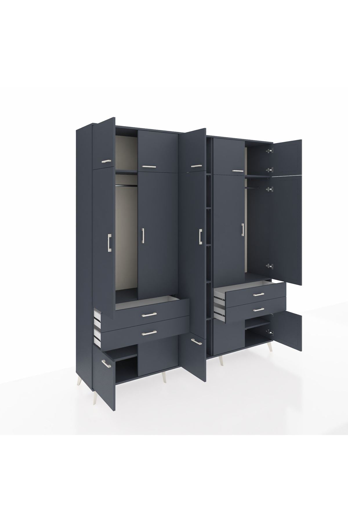 Hyperion Dolap 11 Raflı 4 Çekmeceli 2 Askılı 220x44x243 Antrasit-Antrasit/Antrasit
