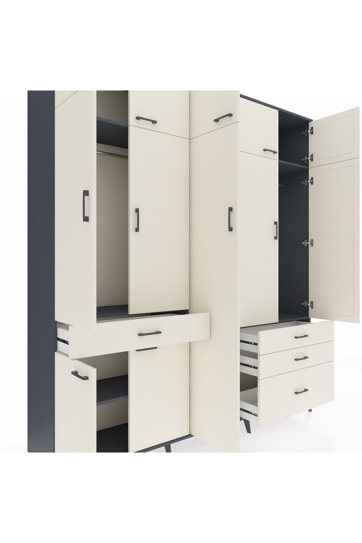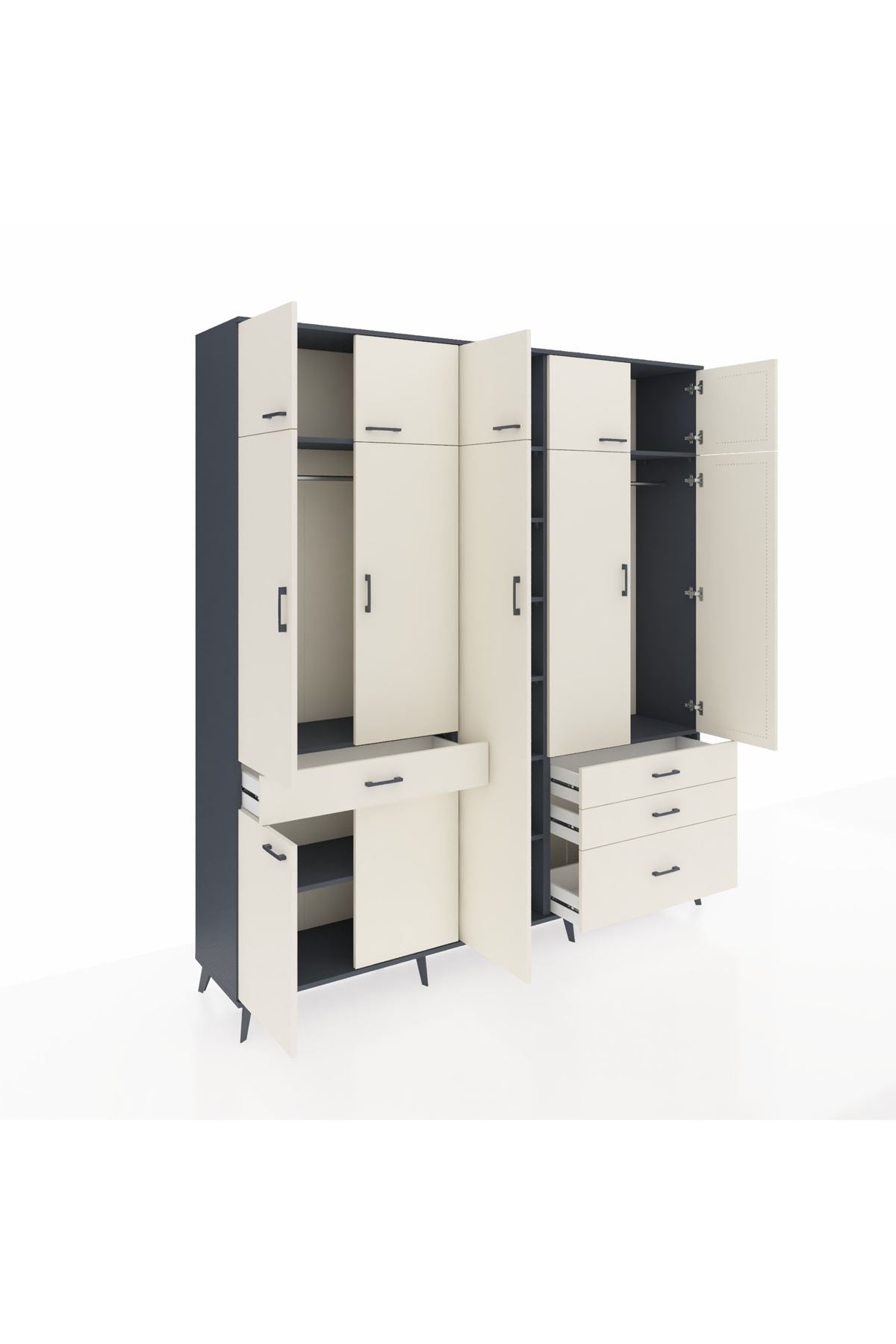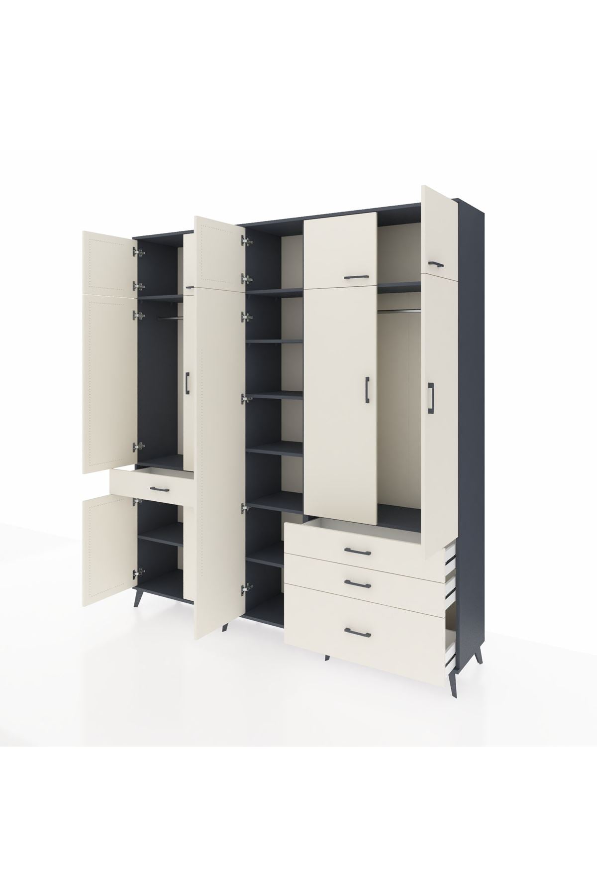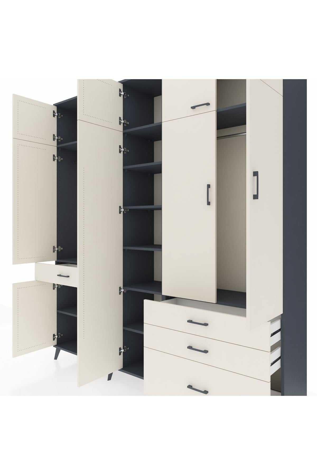 Hyperion Dolap 11 Raflı 4 Çekmeceli 2 Askılı 220x44x243 Antrasit-Aytaşı/Aytaşı