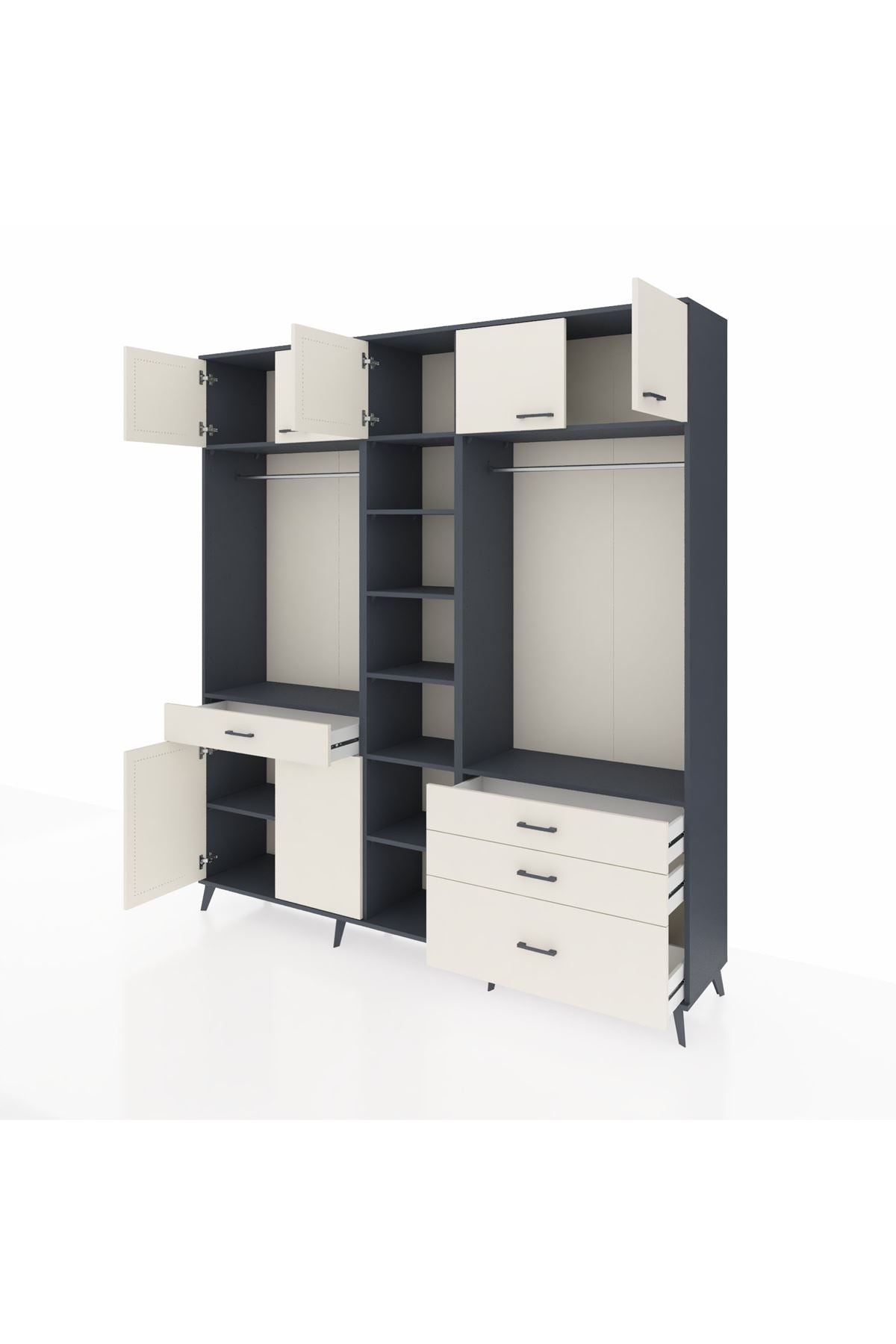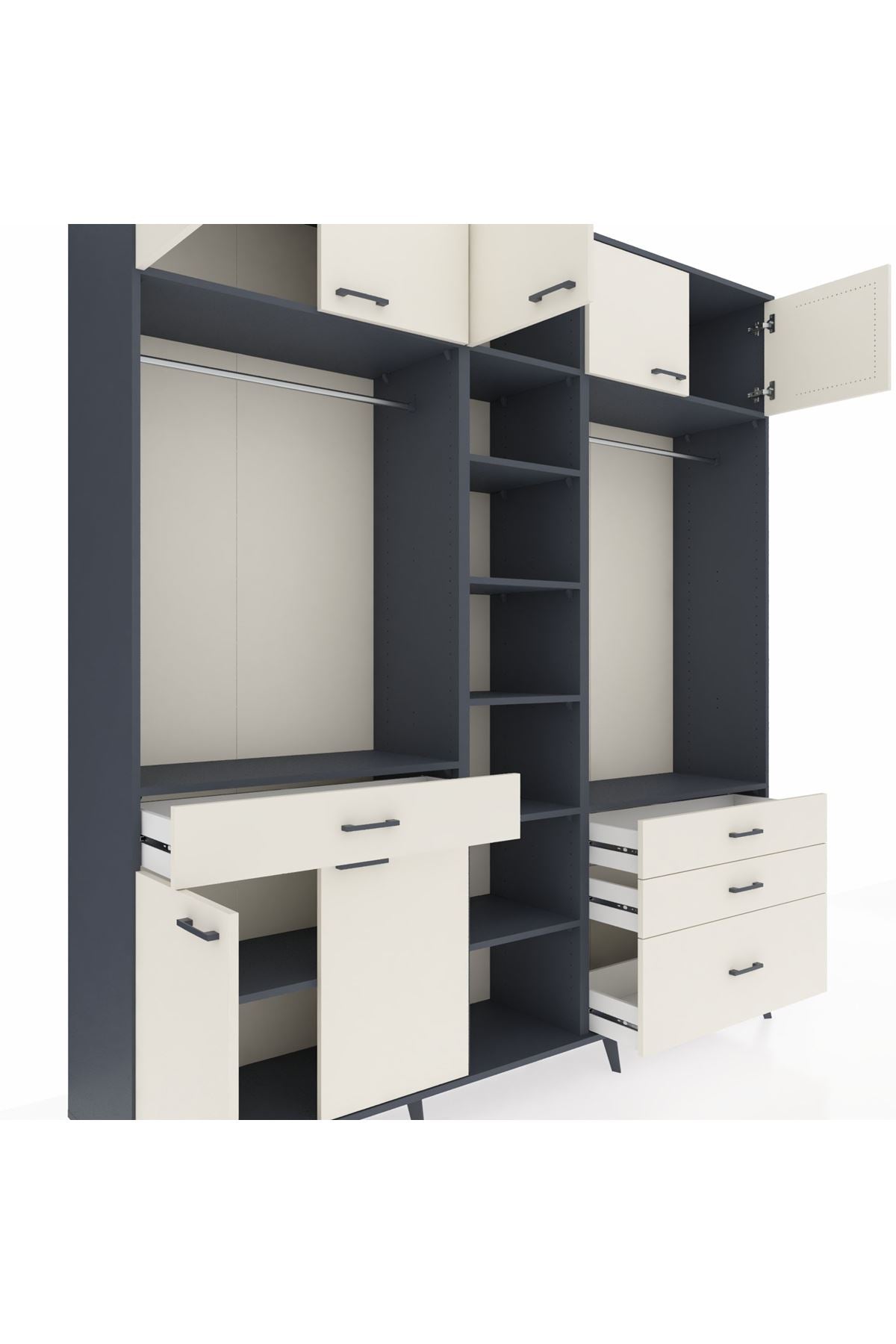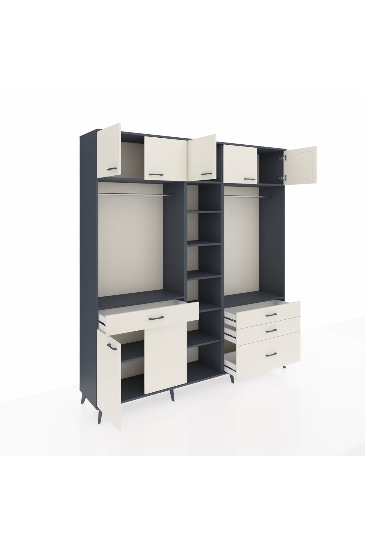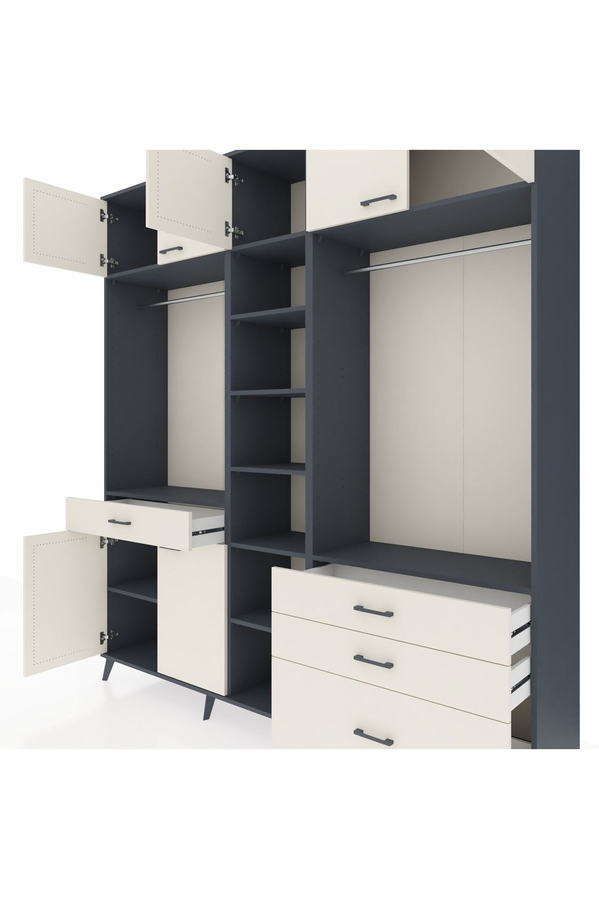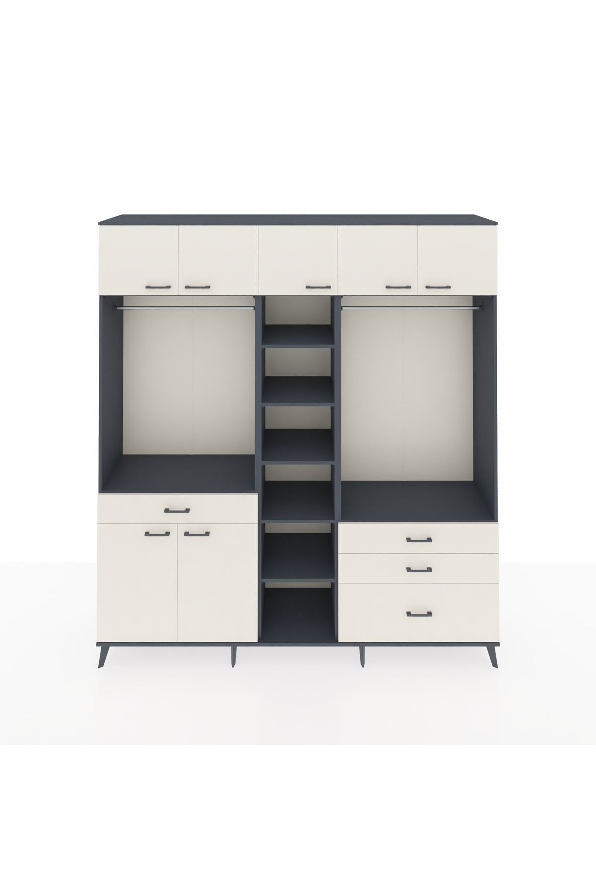 Hyperion Dolap 11 Raflı 4 Çekmeceli 2 Askılı 220x44x243 Antrasit-Aytaşı/Aytaşı