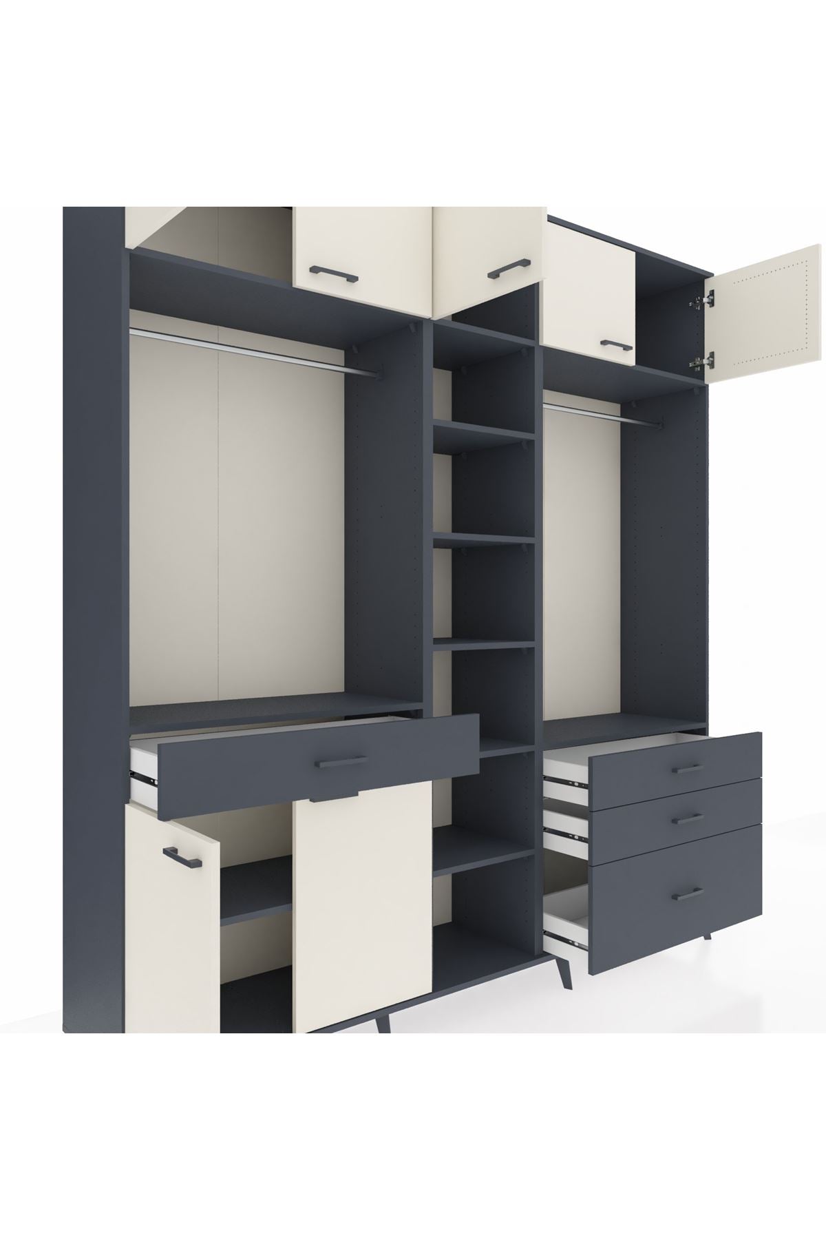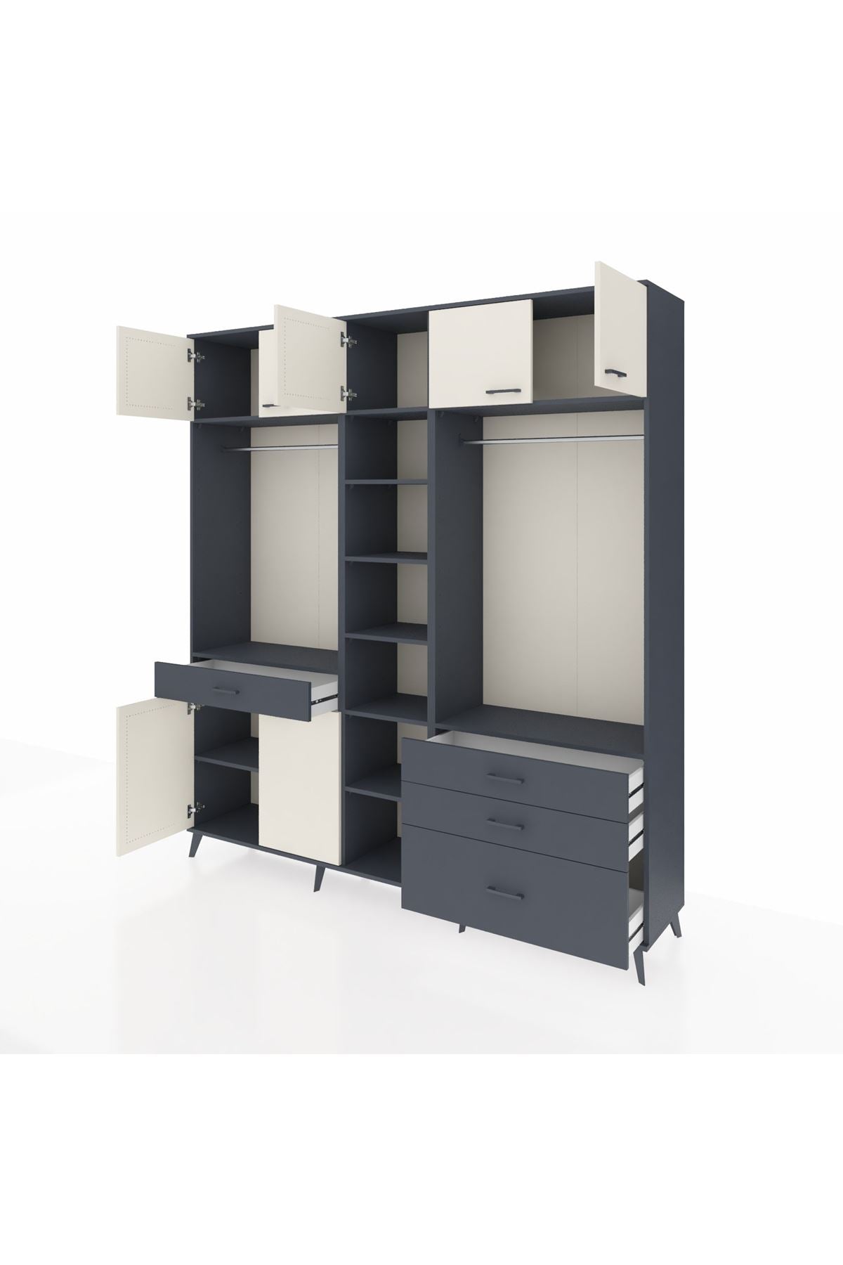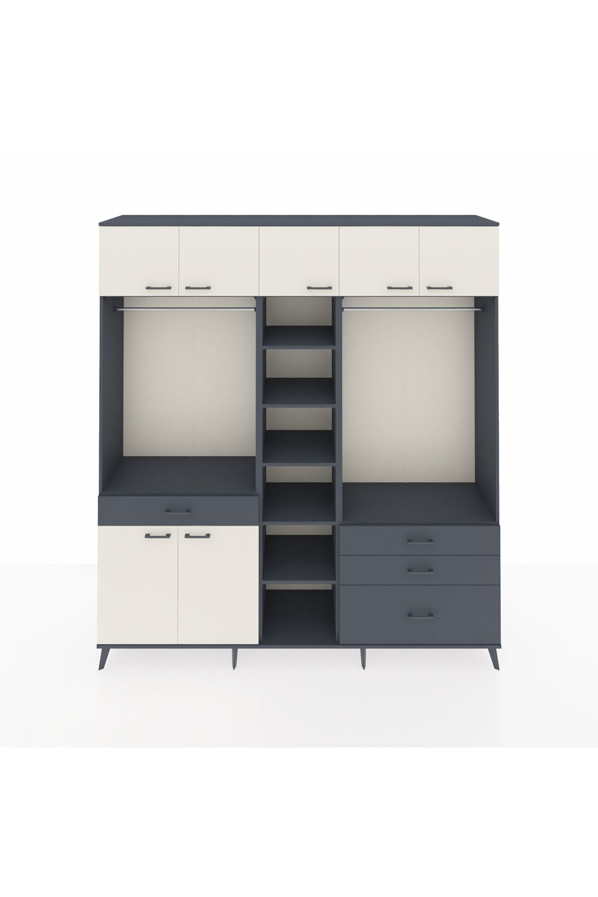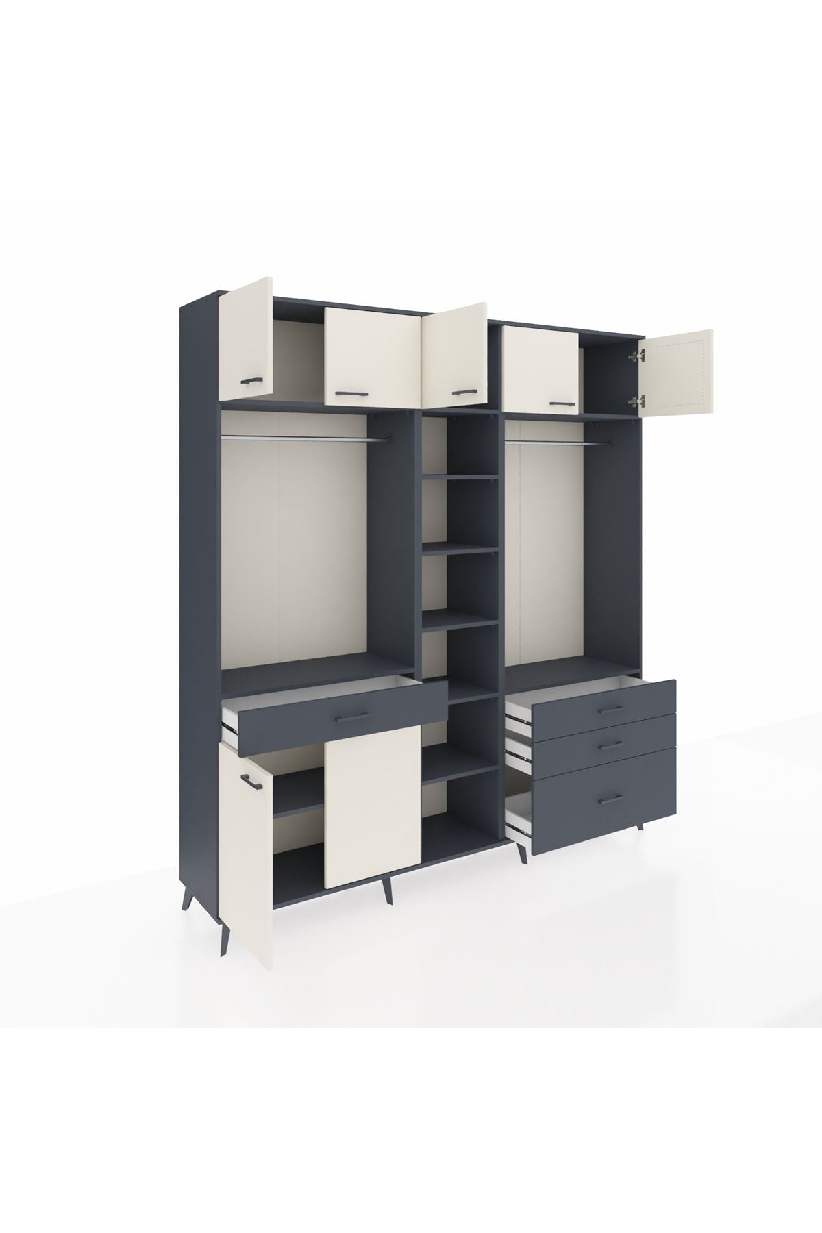 Hyperion Dolap 11 Raflı 4 Çekmeceli 2 Askılı 220x44x243 Antrasit-Aytaşı/Antrasit