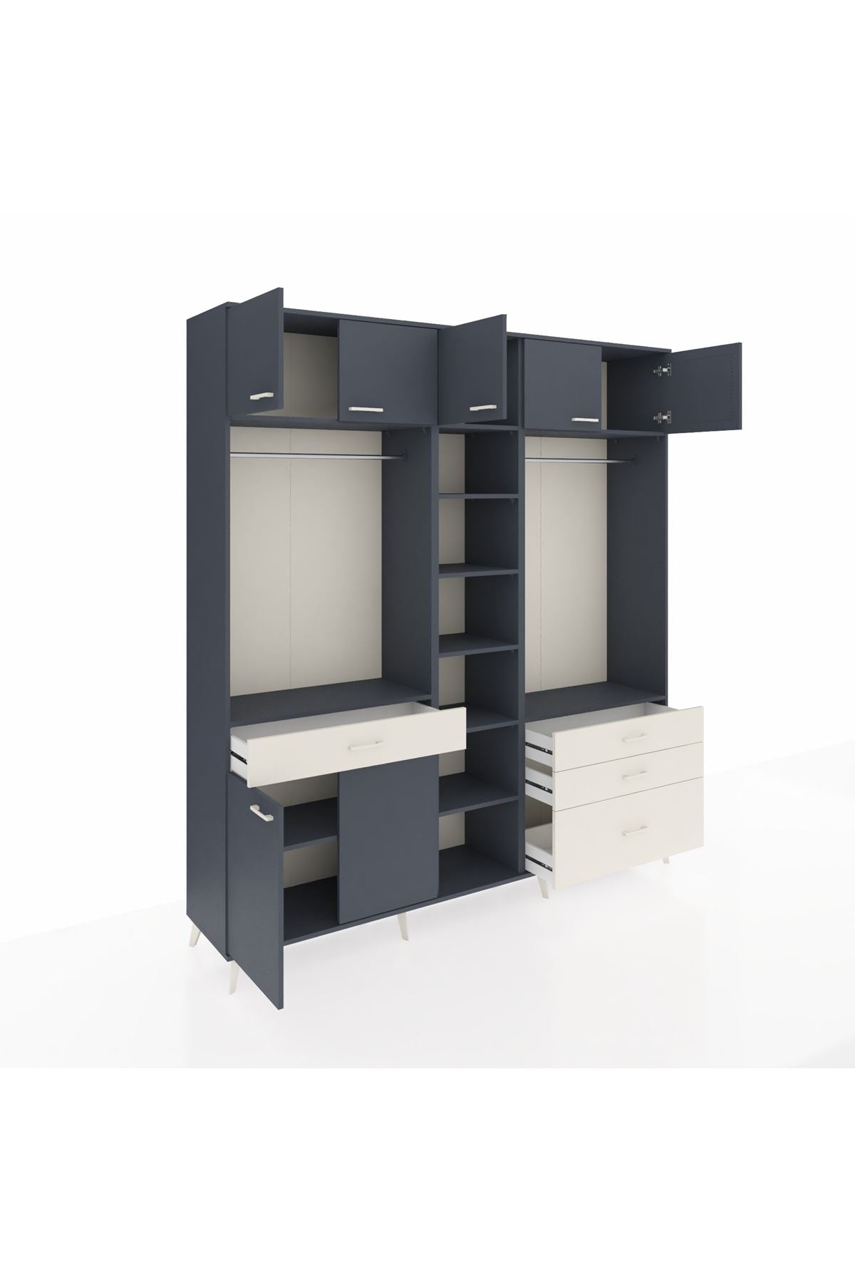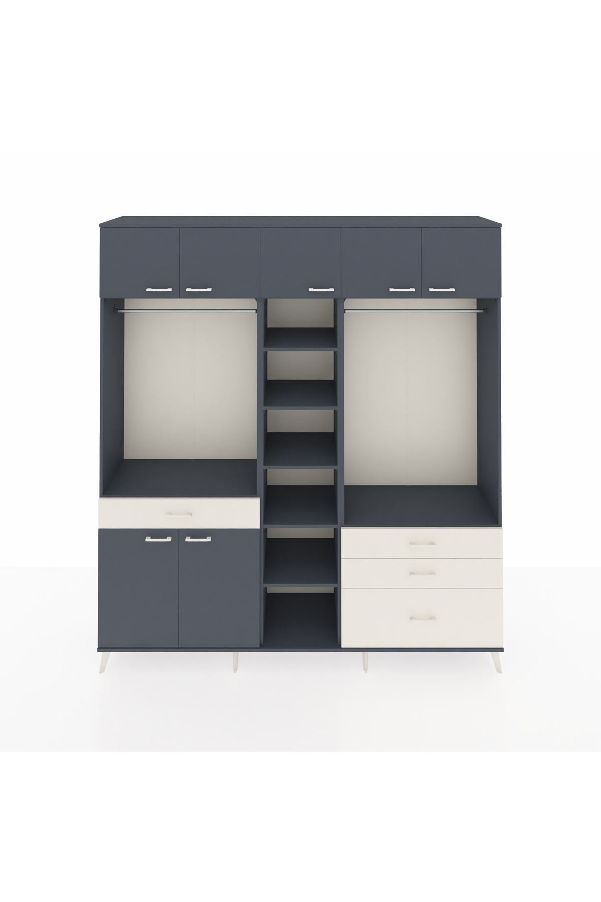 Hyperion Dolap 11 Raflı 4 Çekmeceli 2 Askılı 220x44x243 Antrasit-Antrasit/Aytaşı