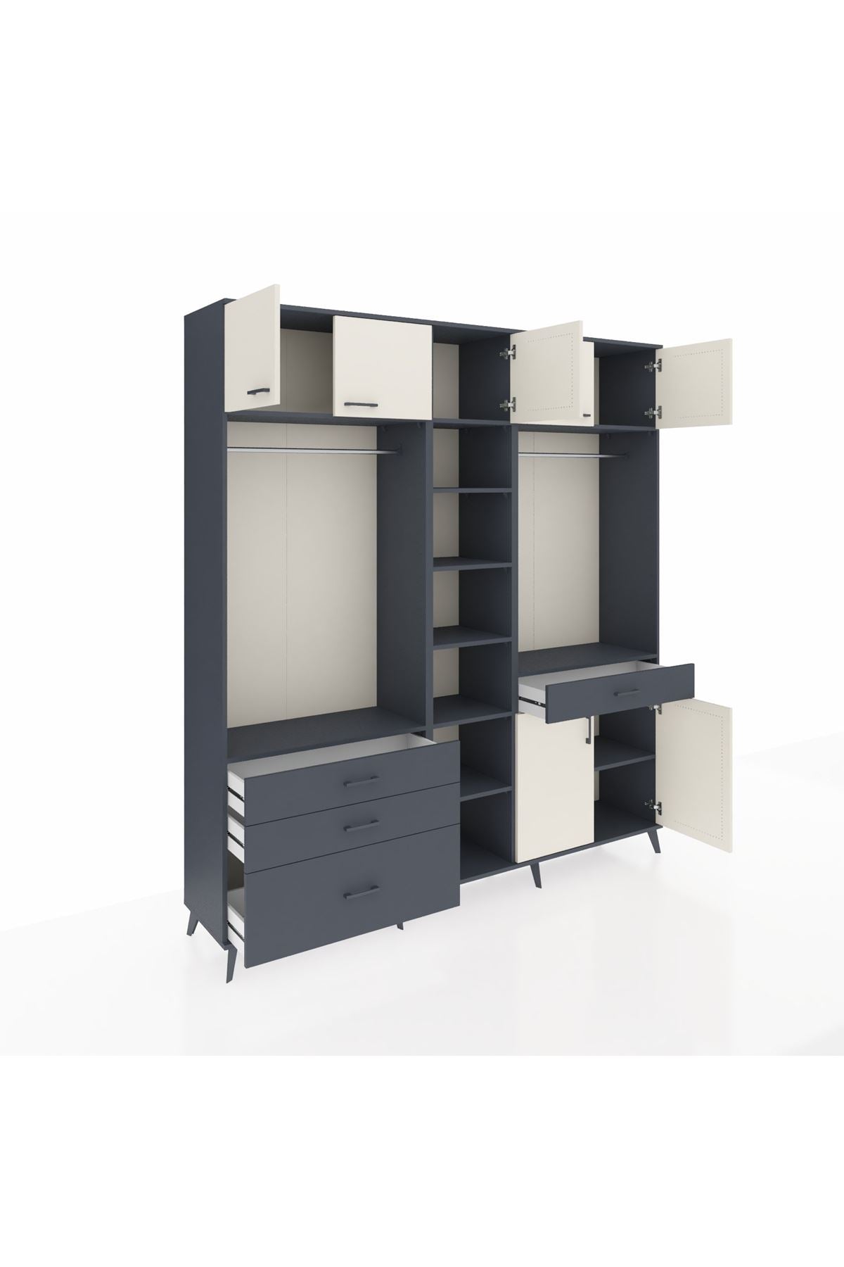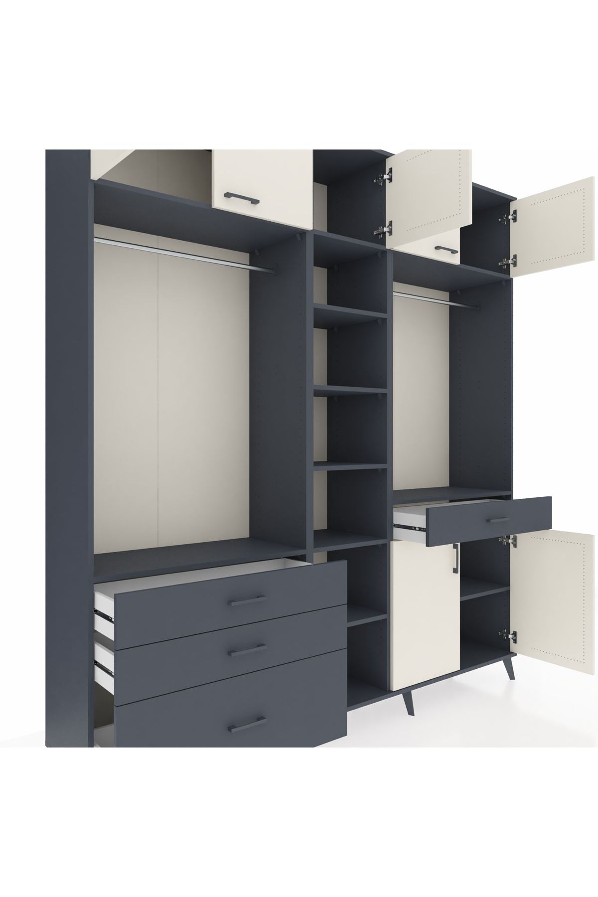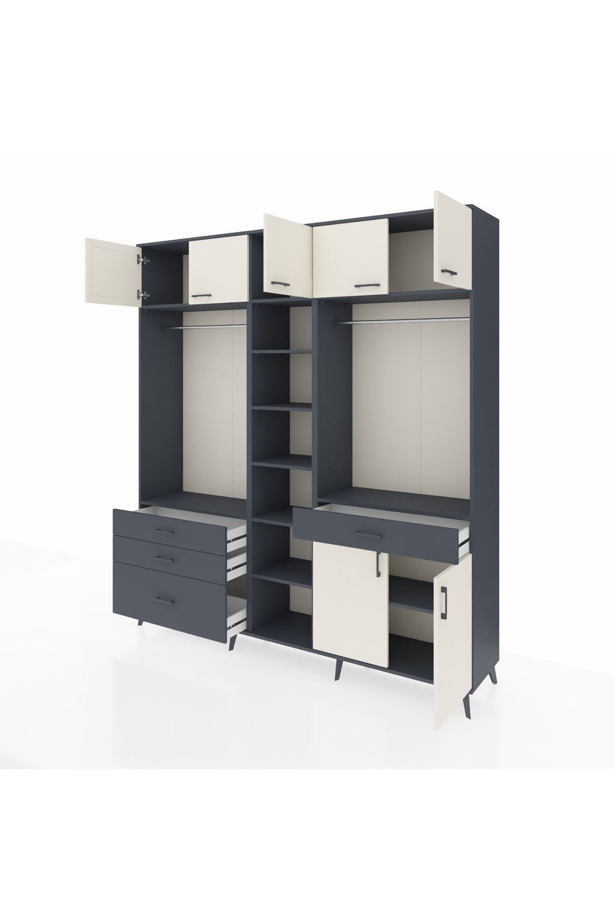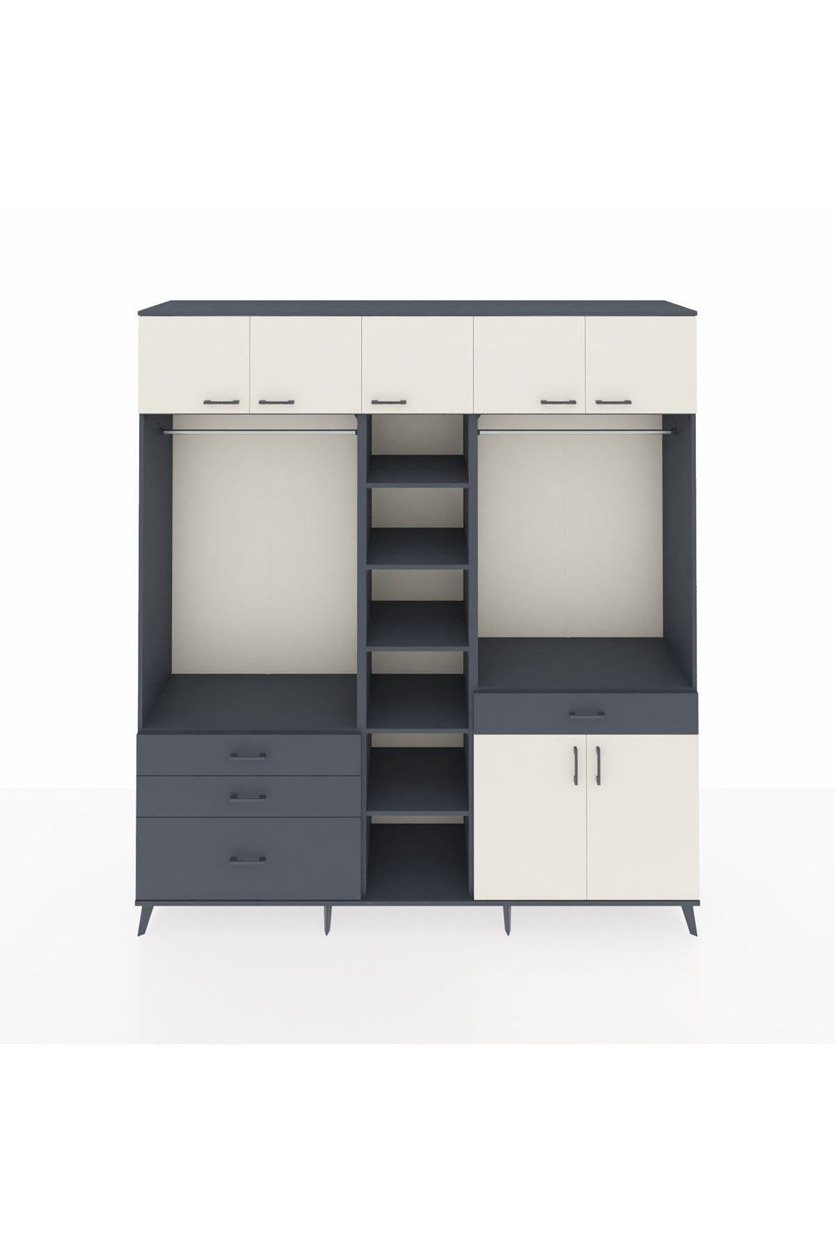 Hyperion Dolap 11 Raflı 4 Çekmeceli 2 Askılı 220x44x243 Antrasit-Aytaşı/Antrasit