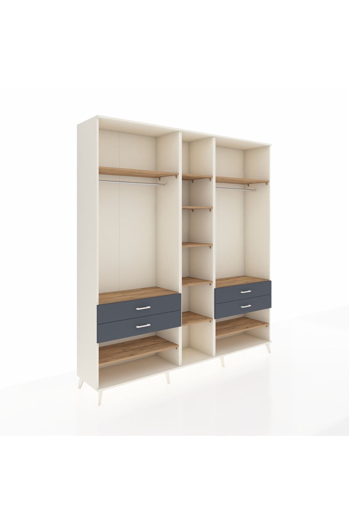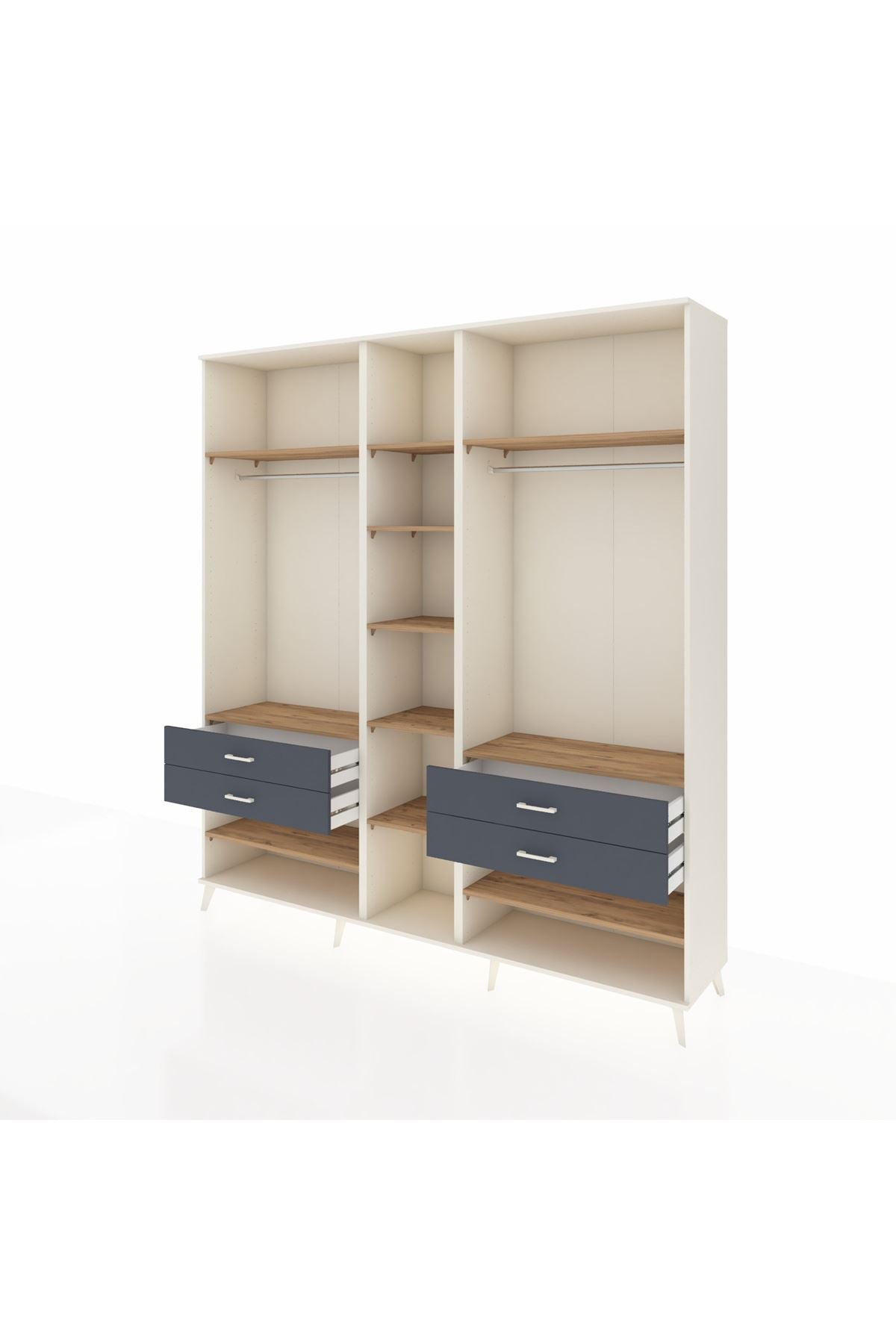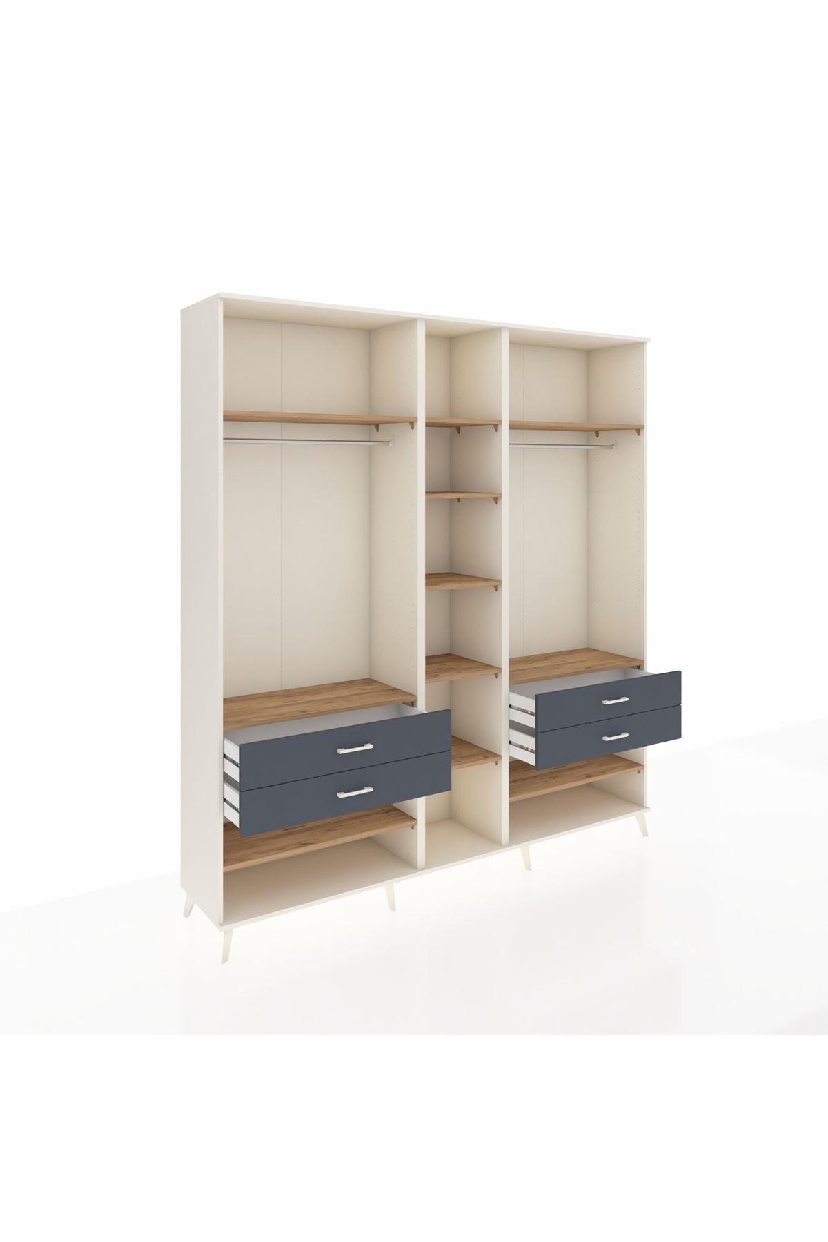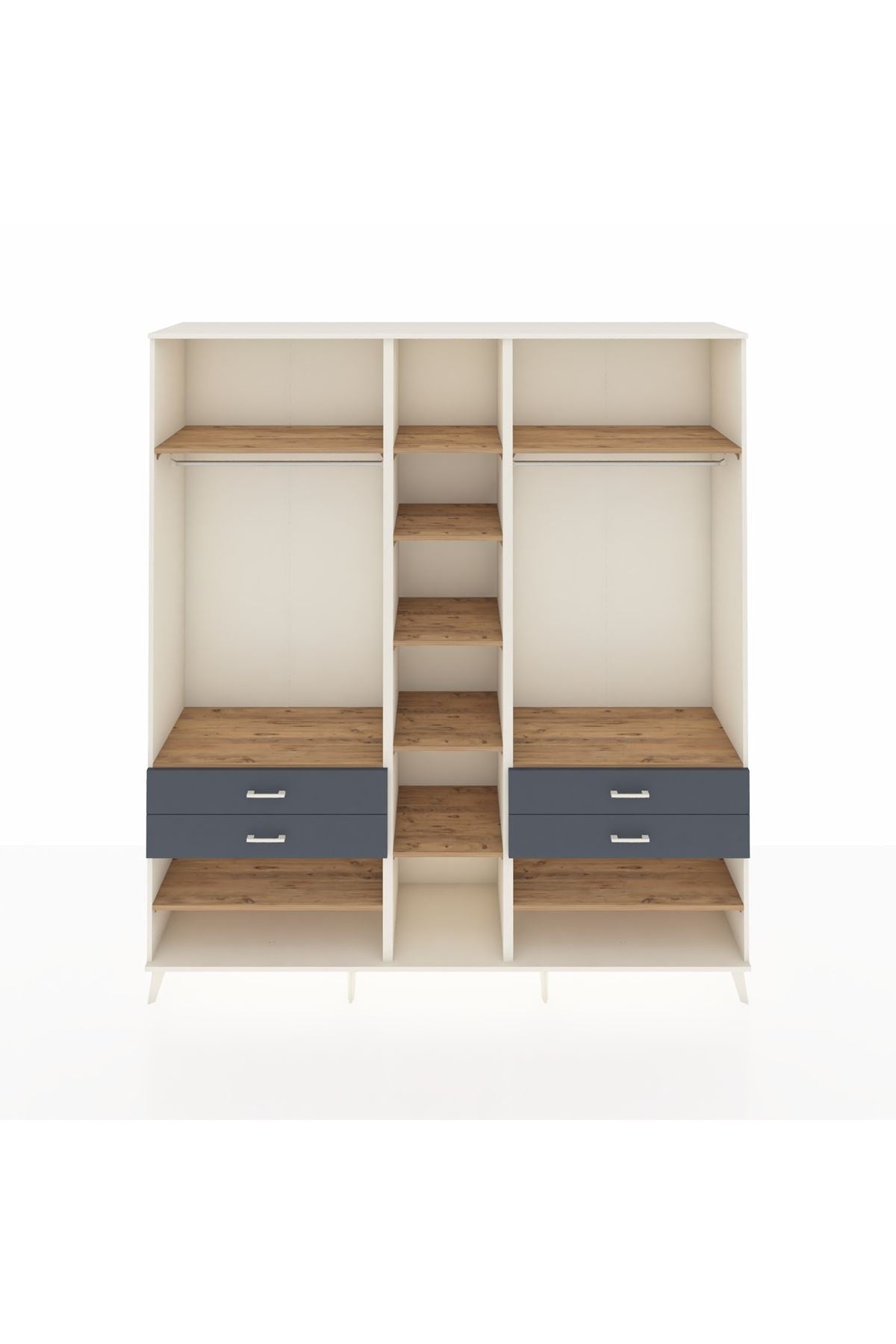 Hyperion Dolap 11 Raflı 4 Çekmeceli 2 Askılı 220x44x243 Aytaşı-Çam/Antrasit