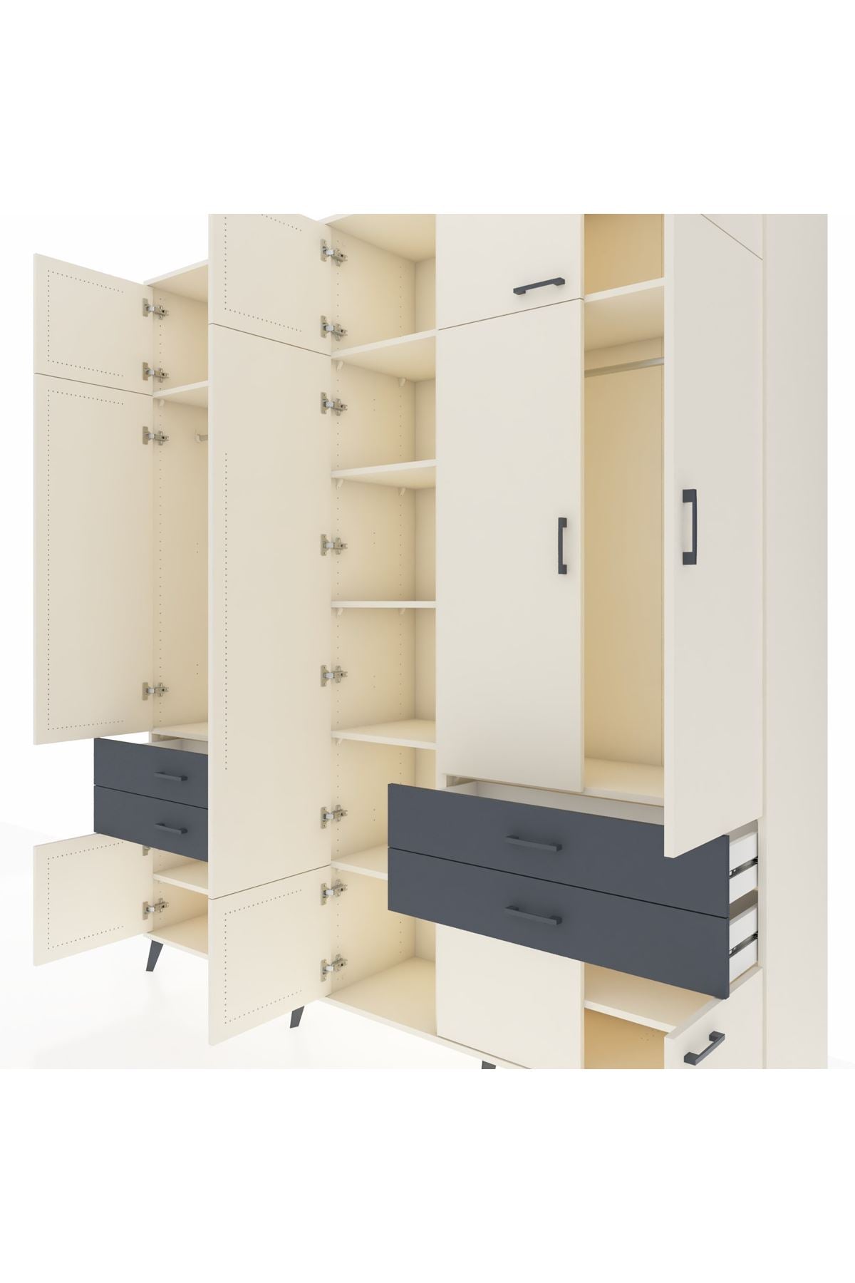 Hyperion Dolap 11 Raflı 4 Çekmeceli 2 Askılı 220x44x243 Aytaşı-Aytaşı/Antrasit