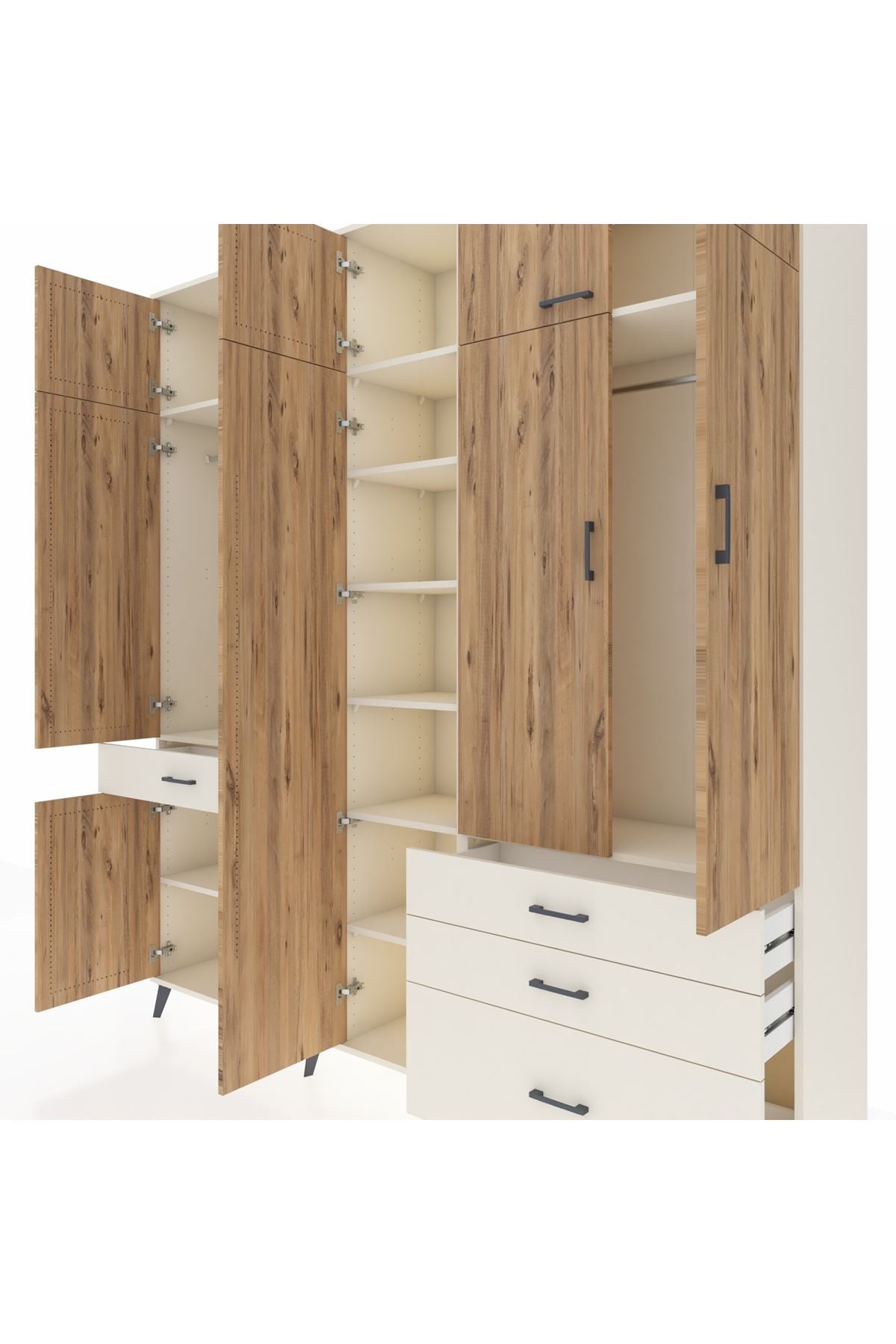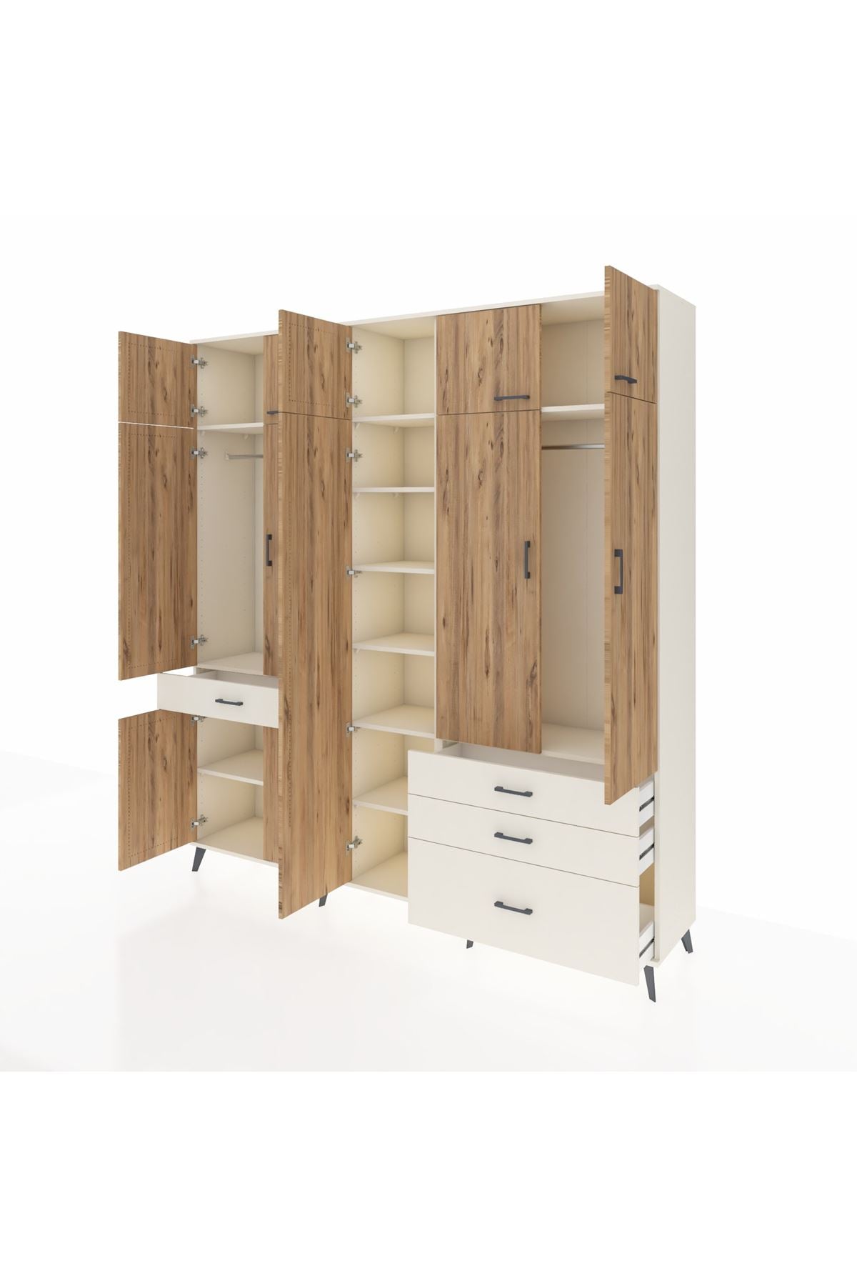 Hyperion Dolap 11 Raflı 4 Çekmeceli 2 Askılı 220x44x243 Aytaşı-Çam/Aytaşı