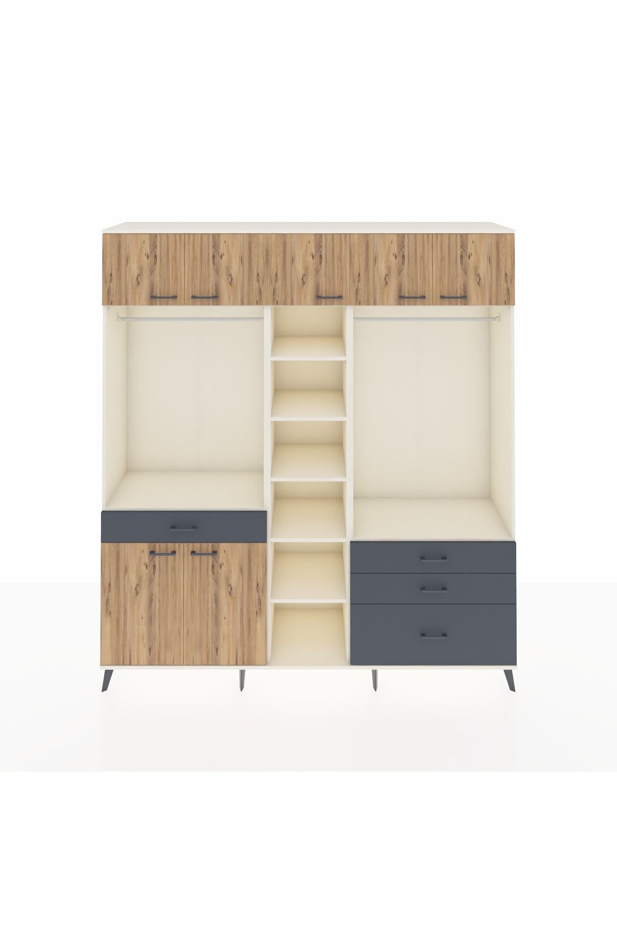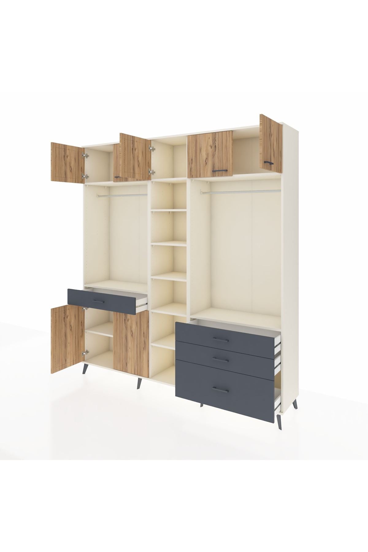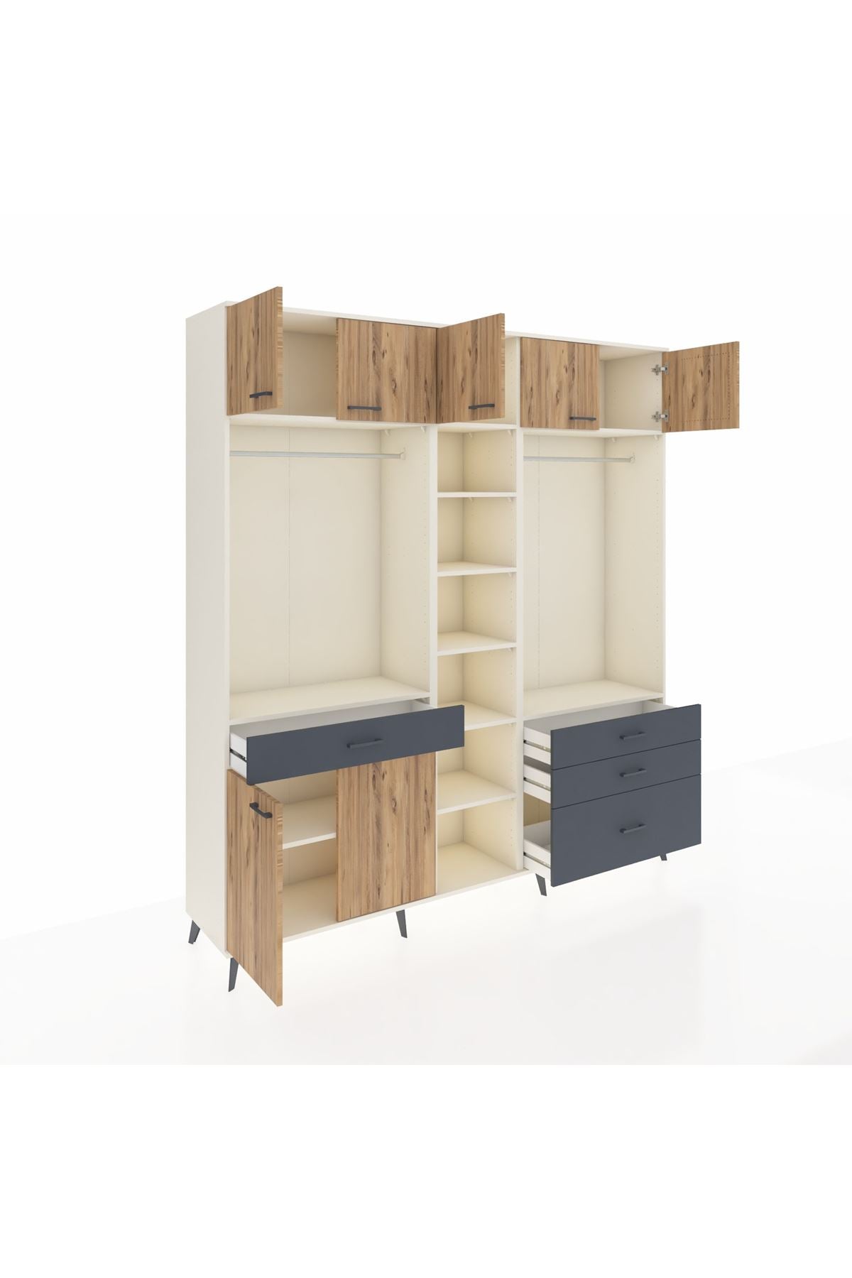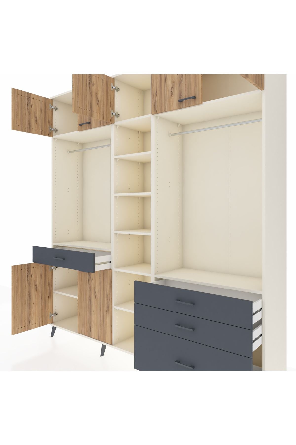 Hyperion Dolap 11 Raflı 4 Çekmeceli 2 Askılı 220x44x243 Aytaşı-Çam/Antrasit
