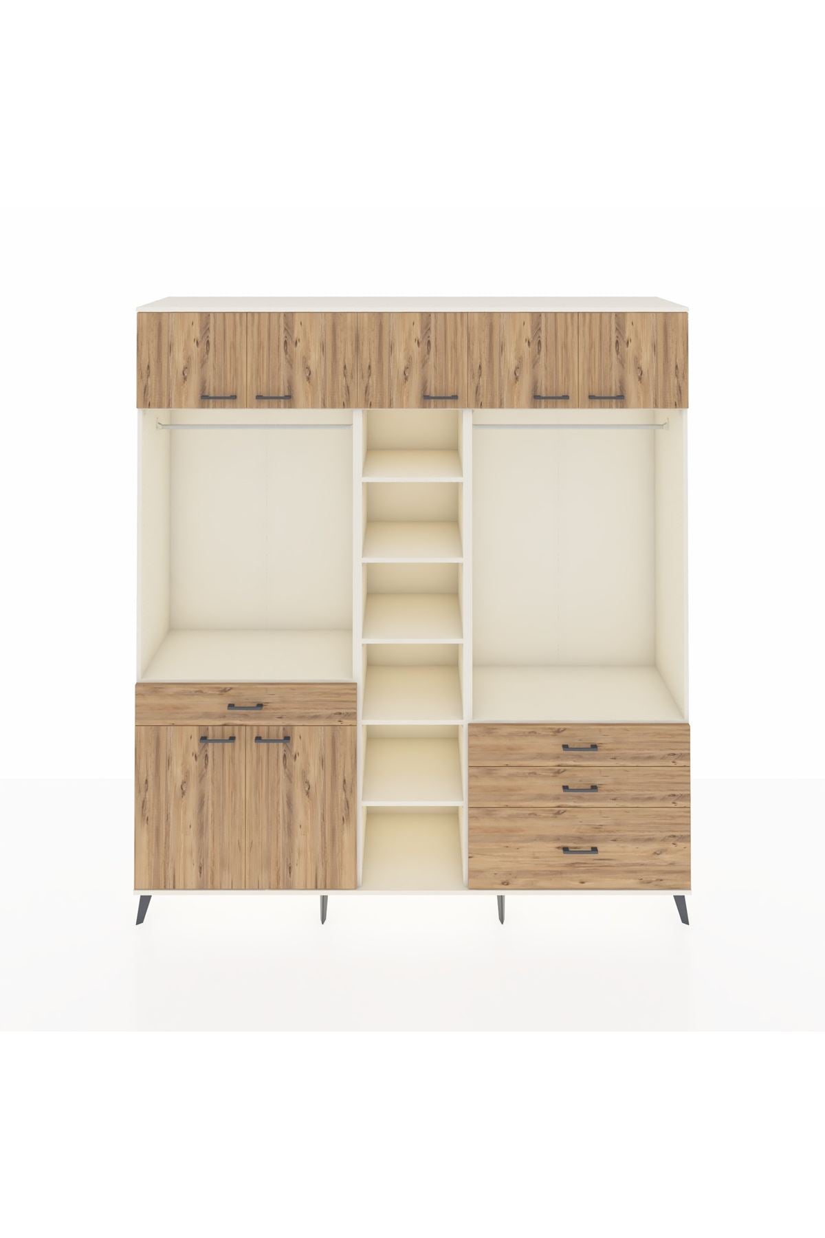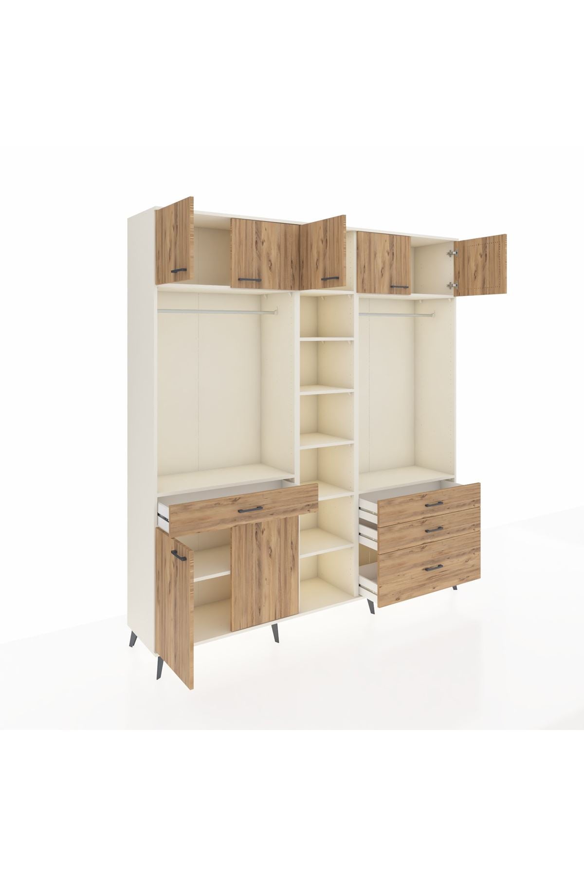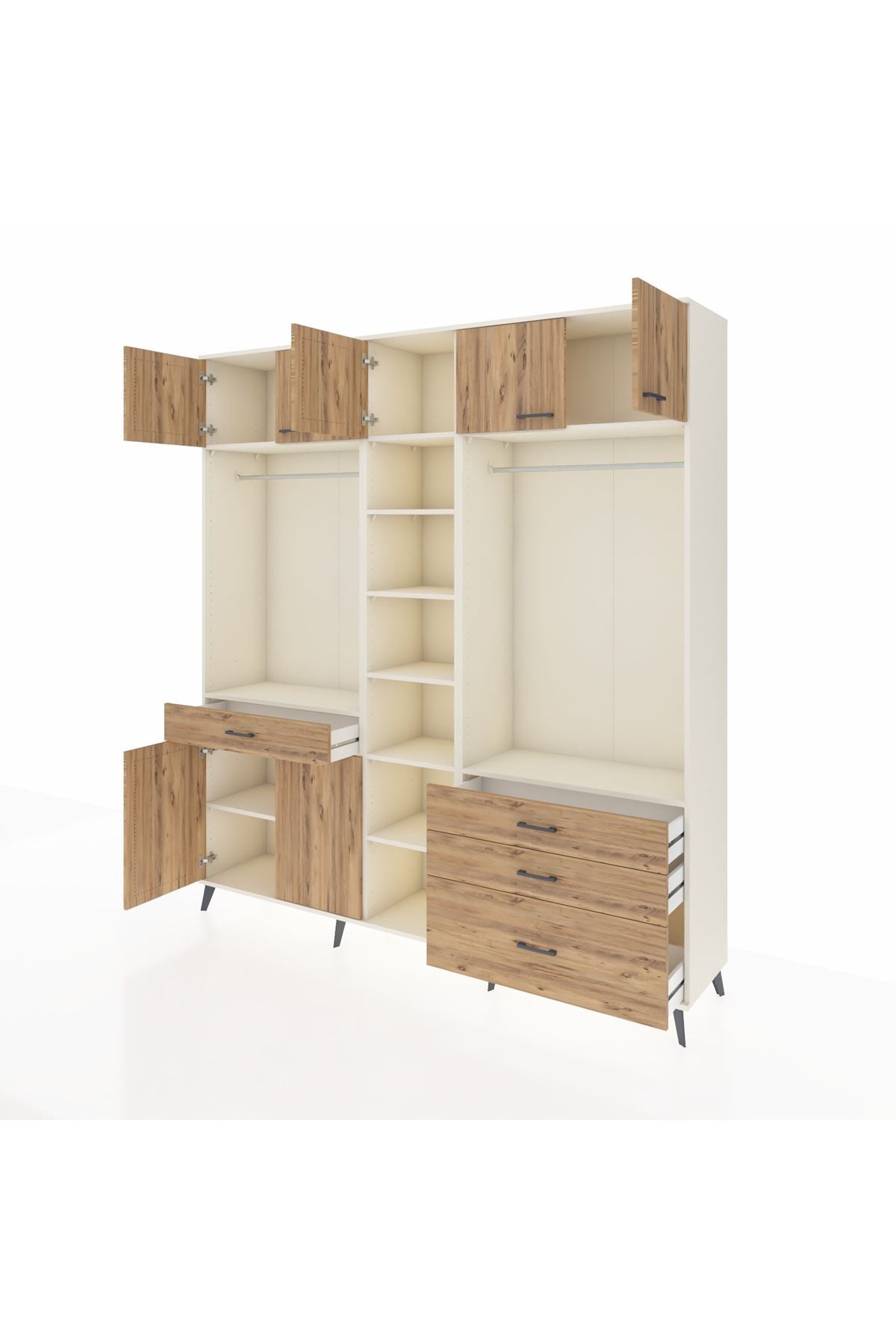 Hyperion Dolap 11 Raflı 4 Çekmeceli 2 Askılı 220x44x243 Aytaşı-Çam/Çam