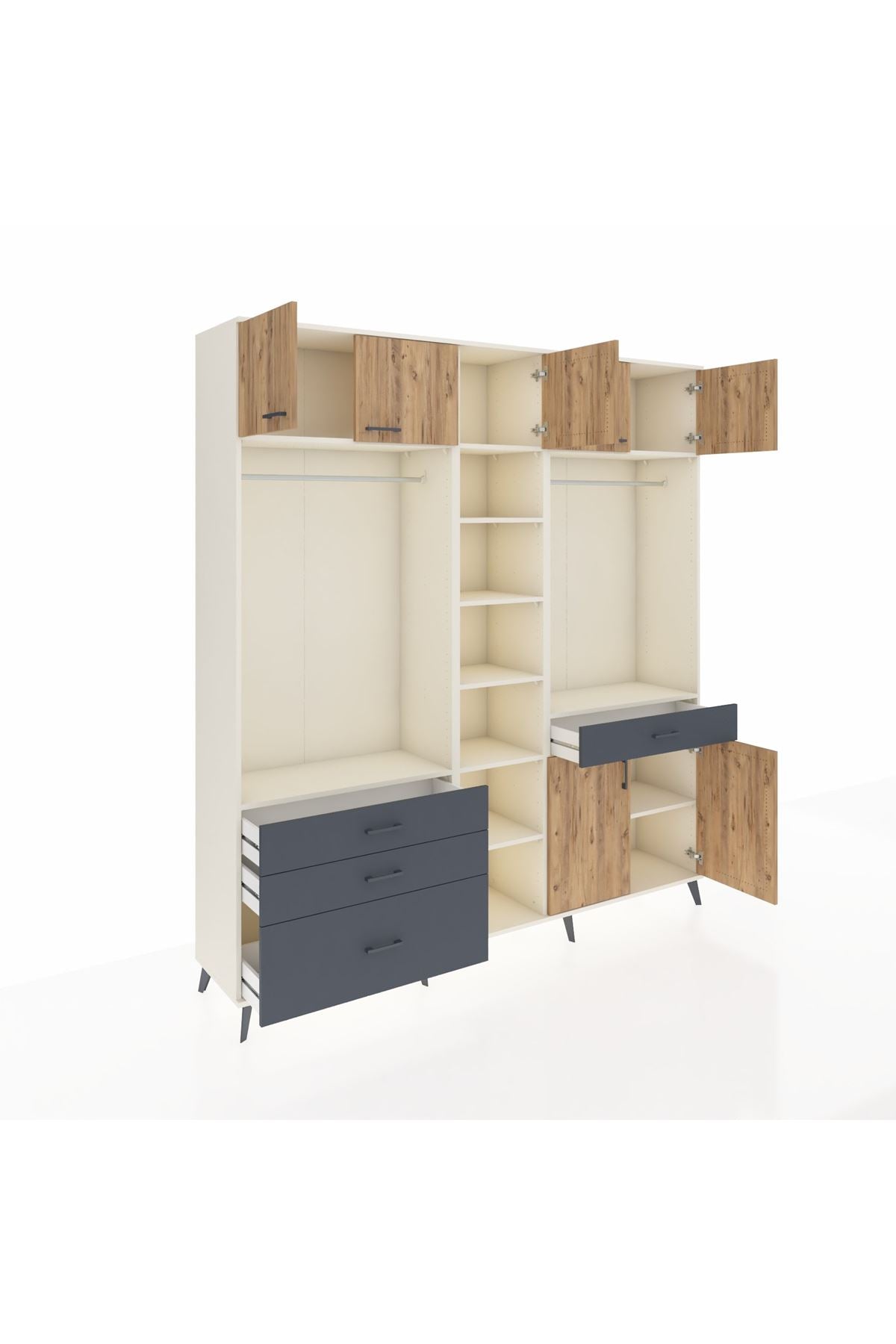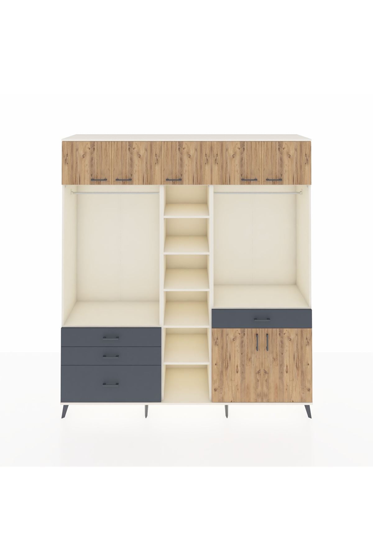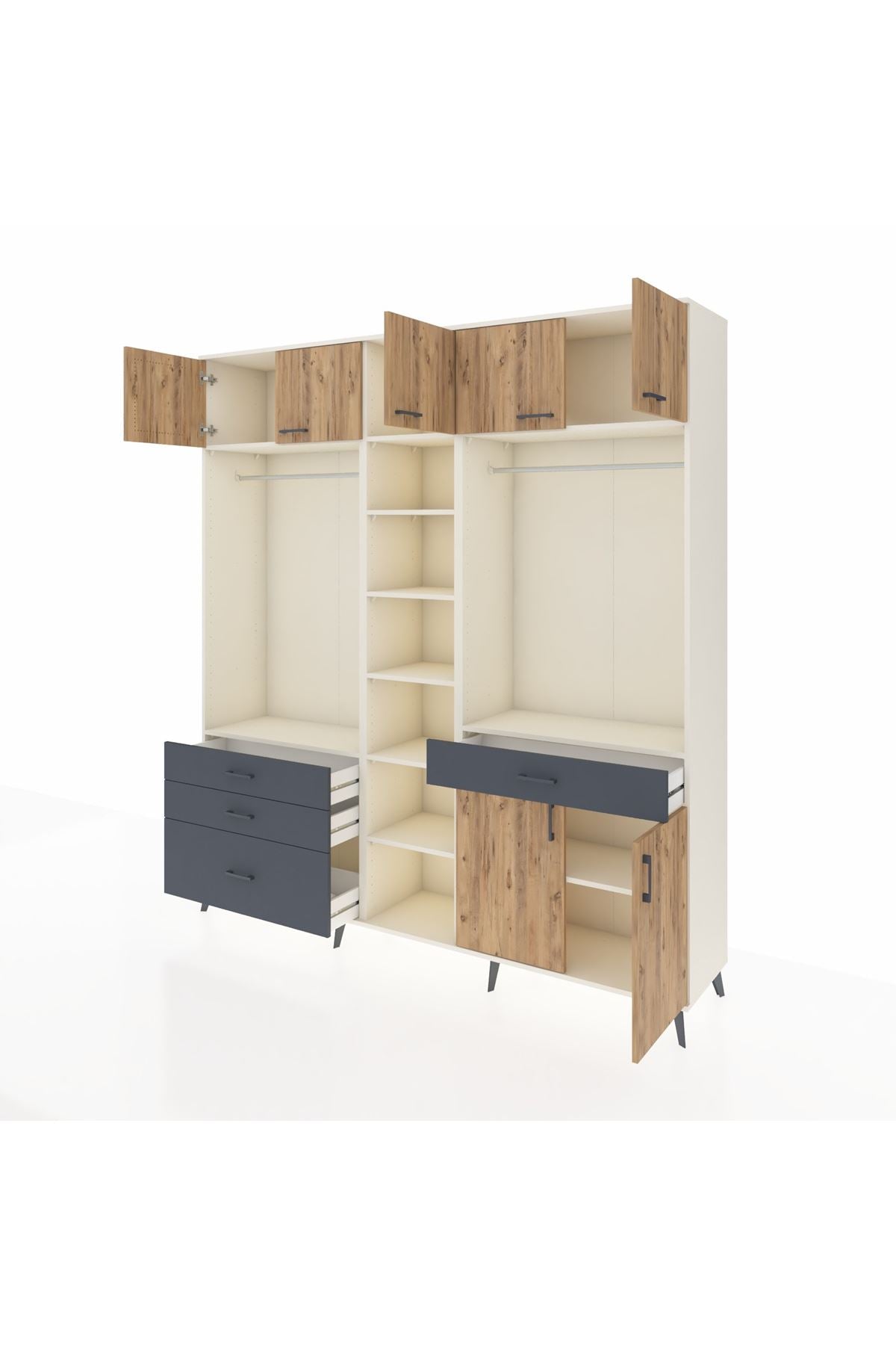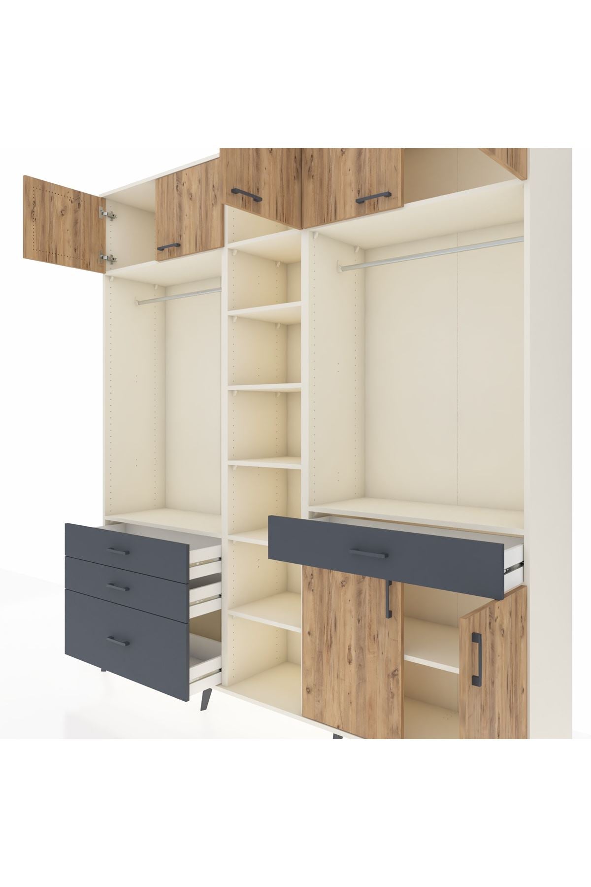 Hyperion Dolap 11 Raflı 4 Çekmeceli 2 Askılı 220x44x243 Aytaşı-Çam/Antrasit