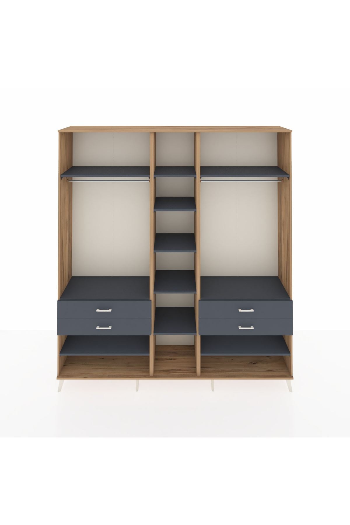 Hyperion Dolap 11 Raflı 4 Çekmeceli 2 Askılı 220x44x243 Çam-Antrasit/Antrasit
