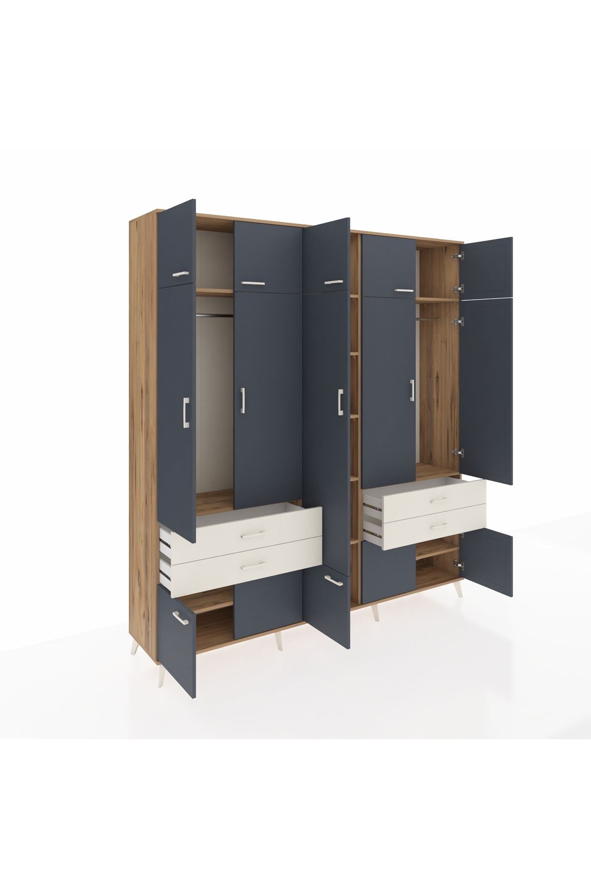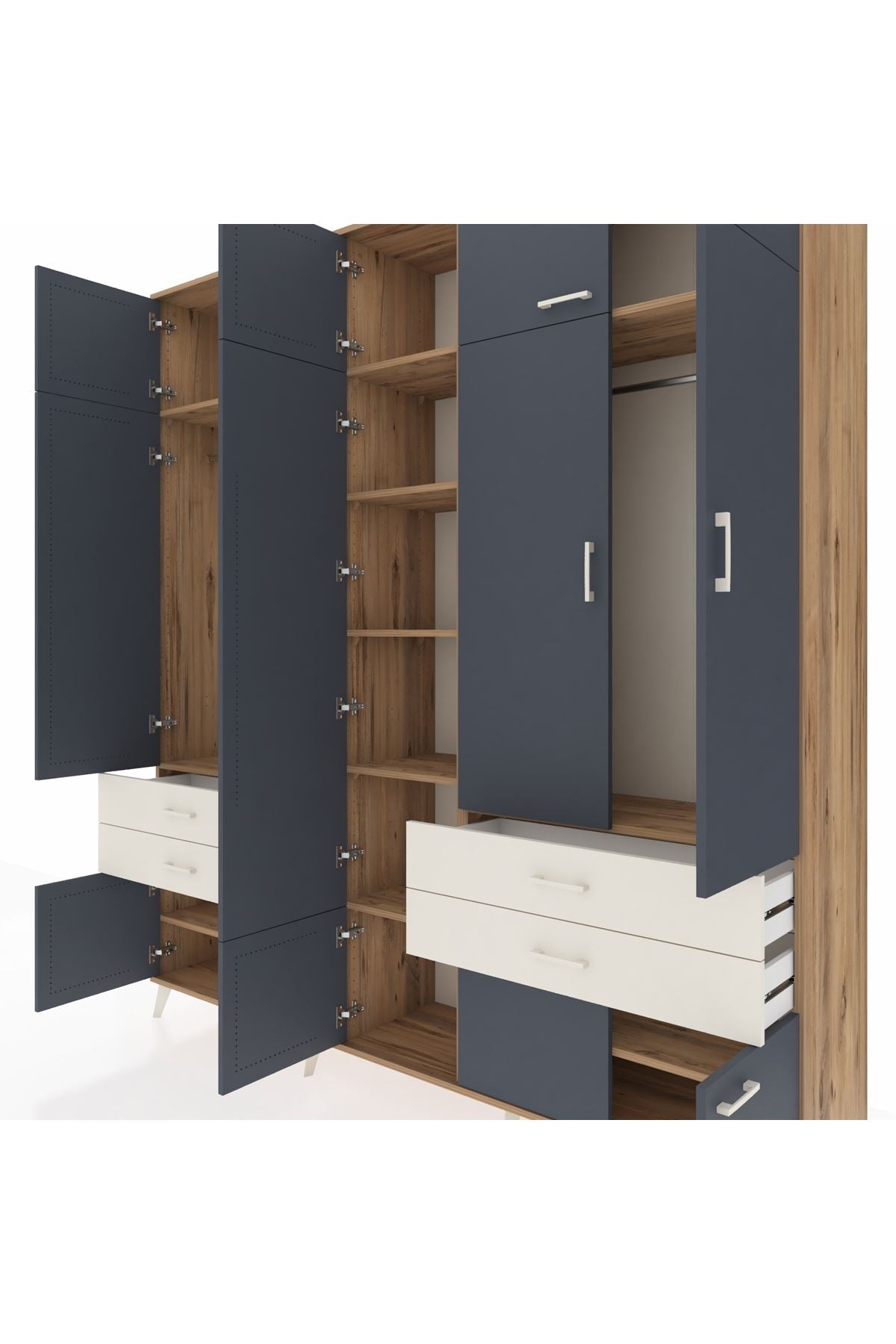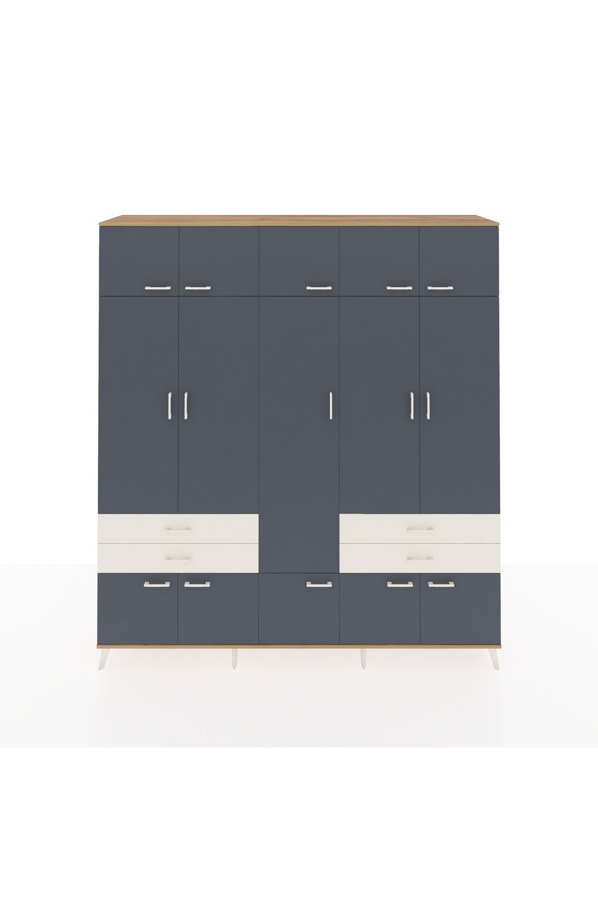 Hyperion Dolap 11 Raflı 4 Çekmeceli 2 Askılı 220x44x243 Çam-Antrasit/Aytaşı