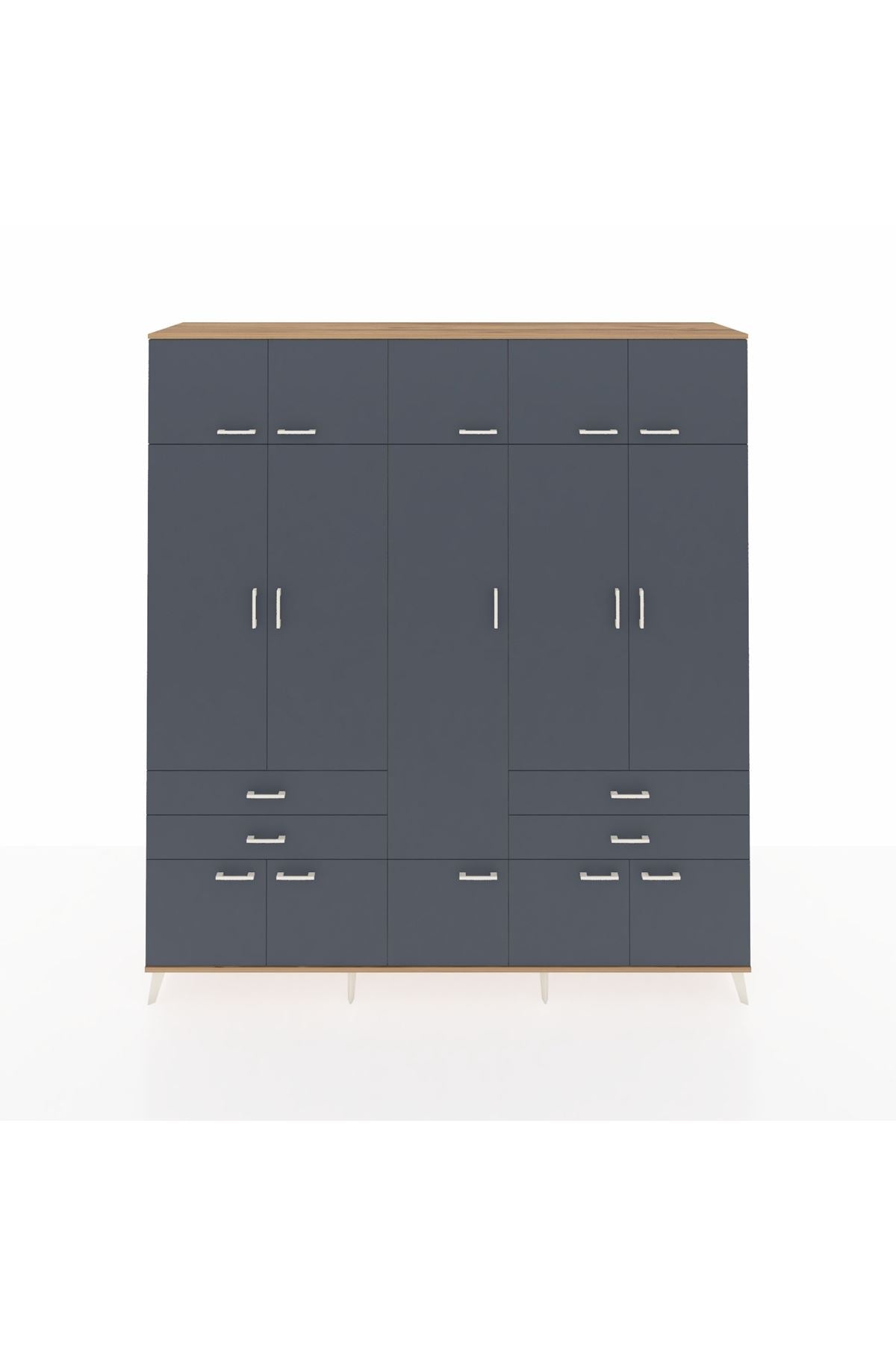 Hyperion Dolap 11 Raflı 4 Çekmeceli 2 Askılı 220x44x243 Çam-Antrasit/Antrasit