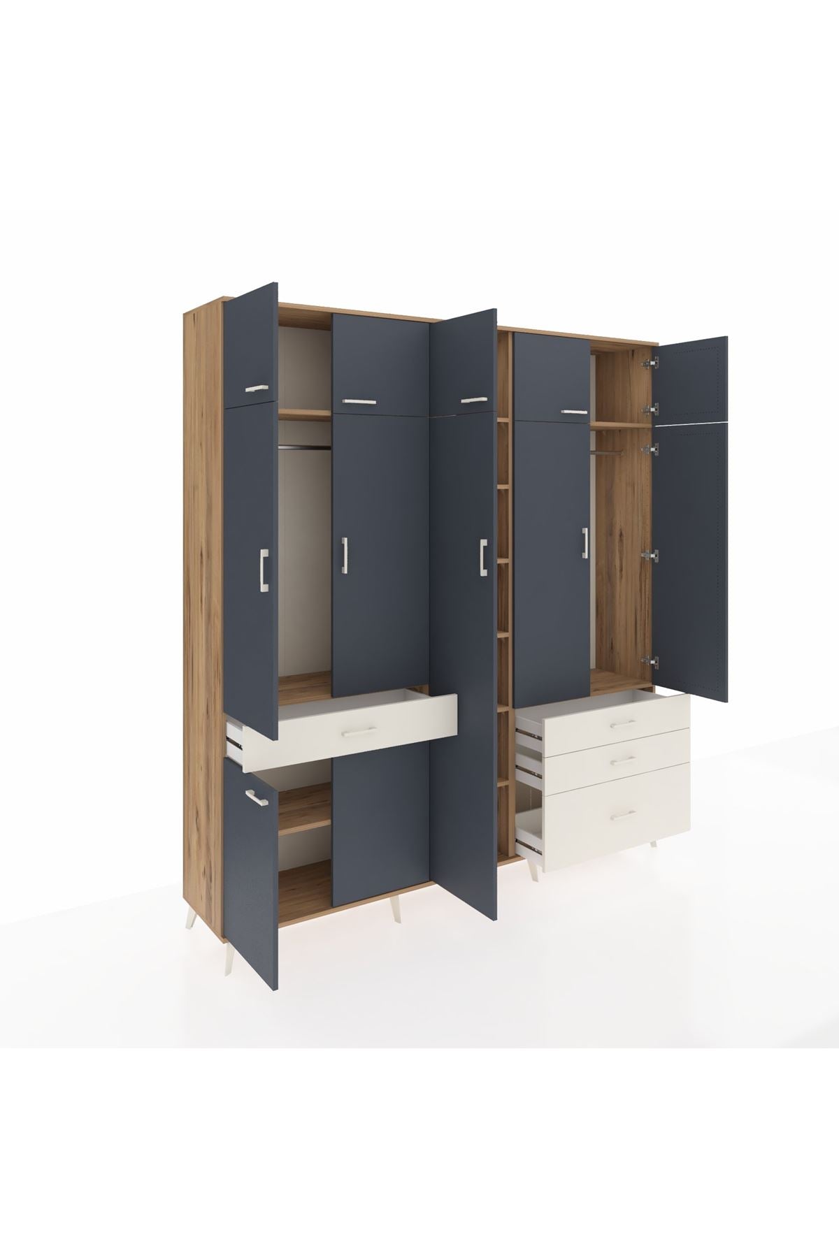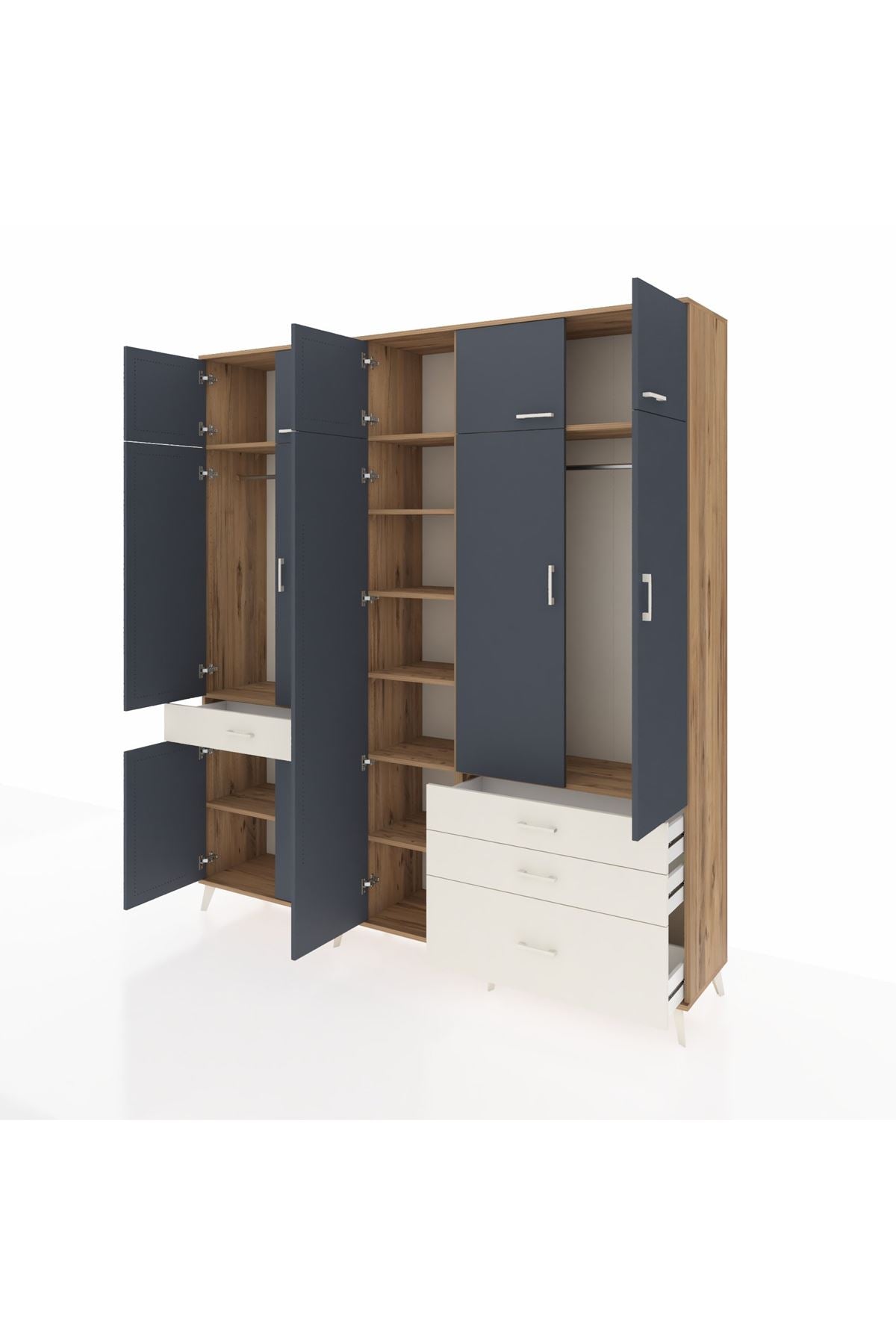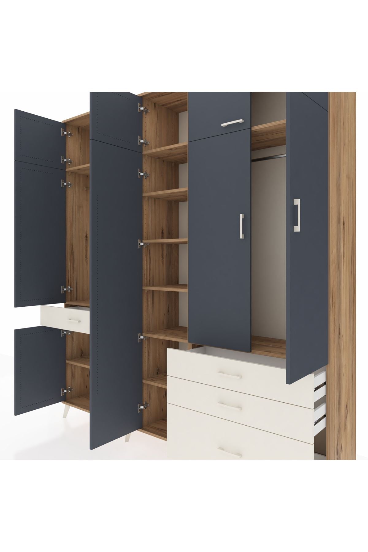 Hyperion Dolap 11 Raflı 4 Çekmeceli 2 Askılı 220x44x243 Çam-Antrasit/Aytaşı