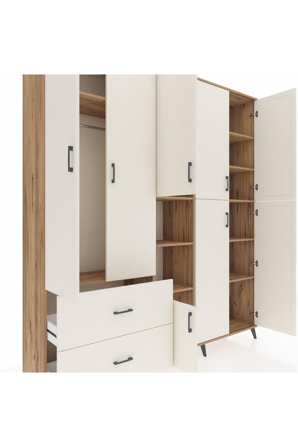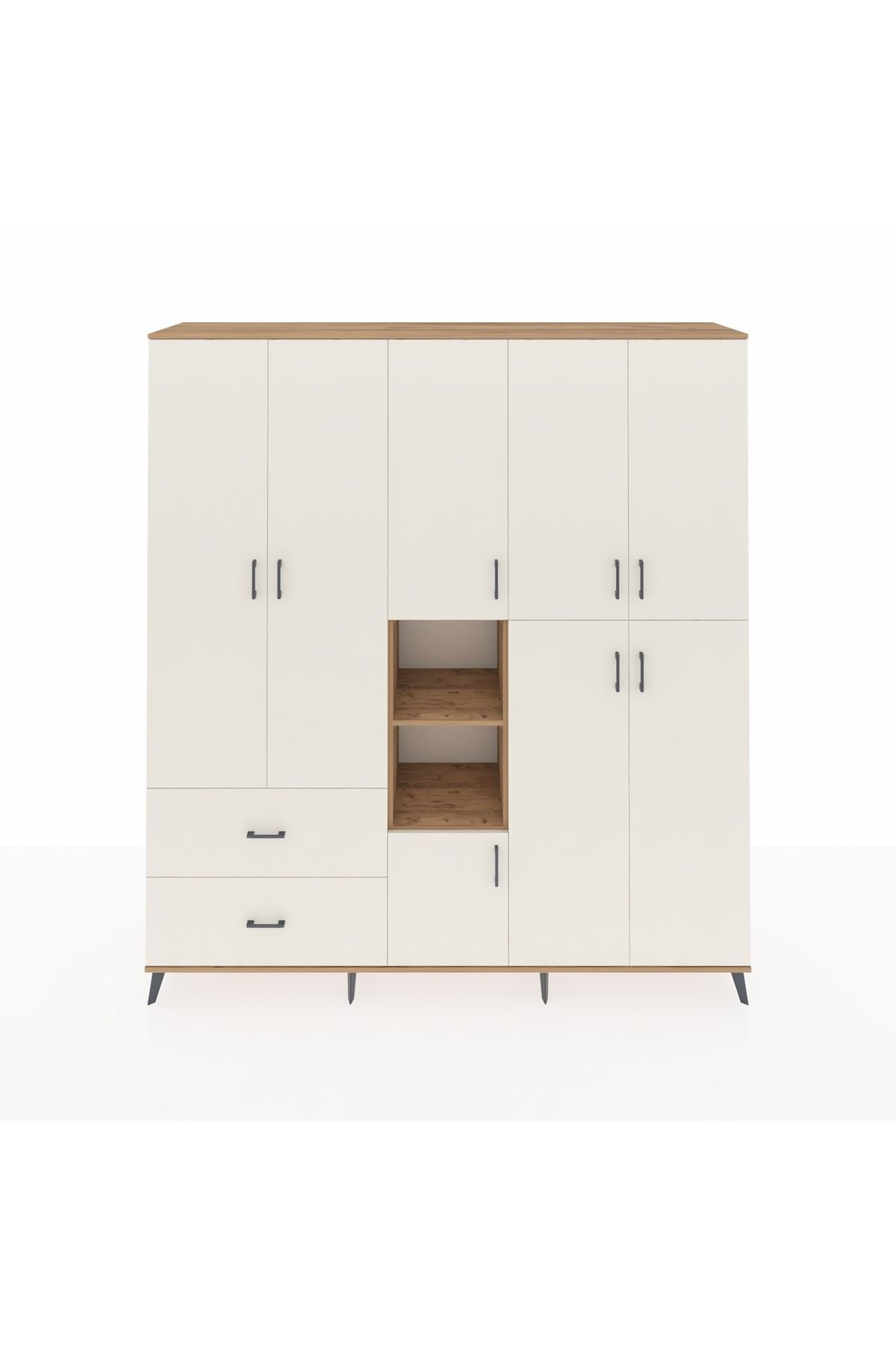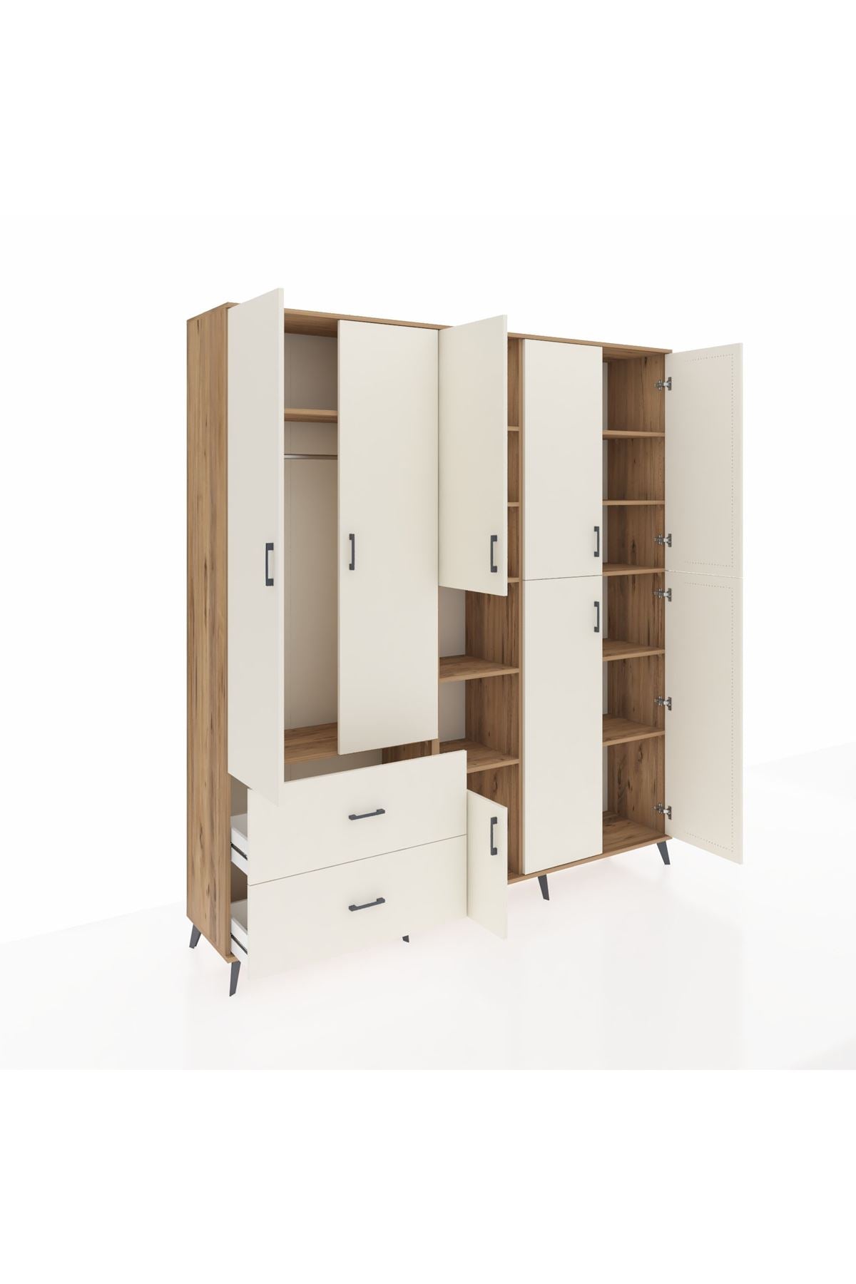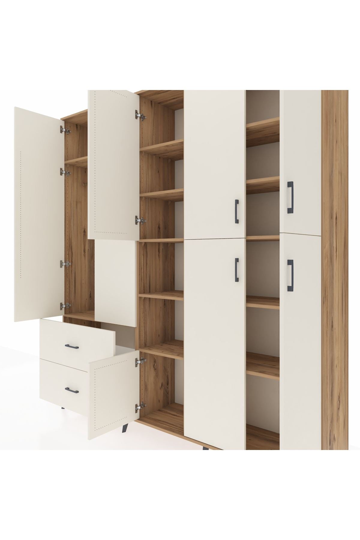 Hyperion Dolap 12 Raflı 2 Çekmeceli Tek Askılı 220x44x243 Çam-Aytaşı/Aytaşı
