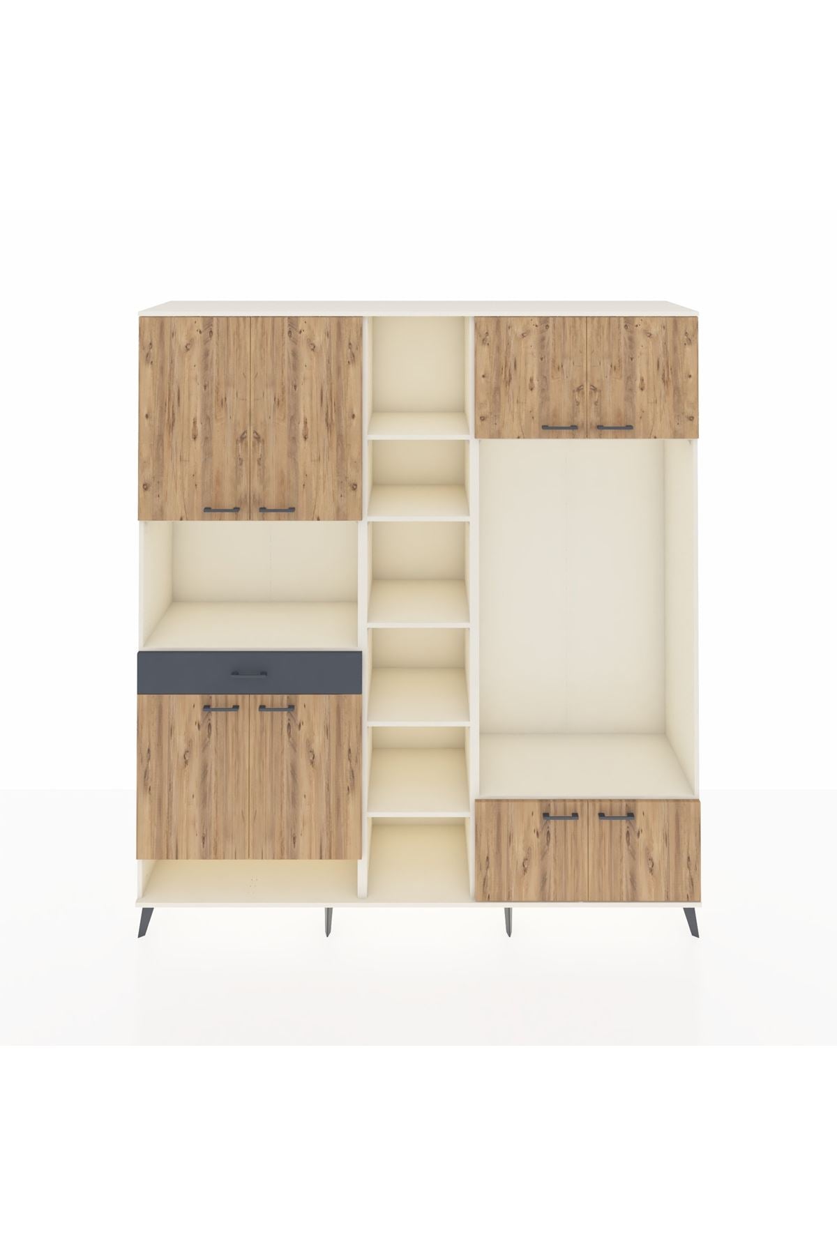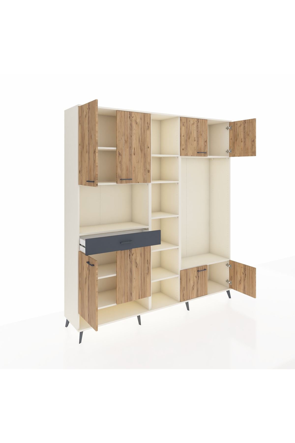 Hyperion Dolap 12 Raflı Tek Çekmeceli 8 Kapaklı 220x44x243 Aytaşı-Çam/Antrasit