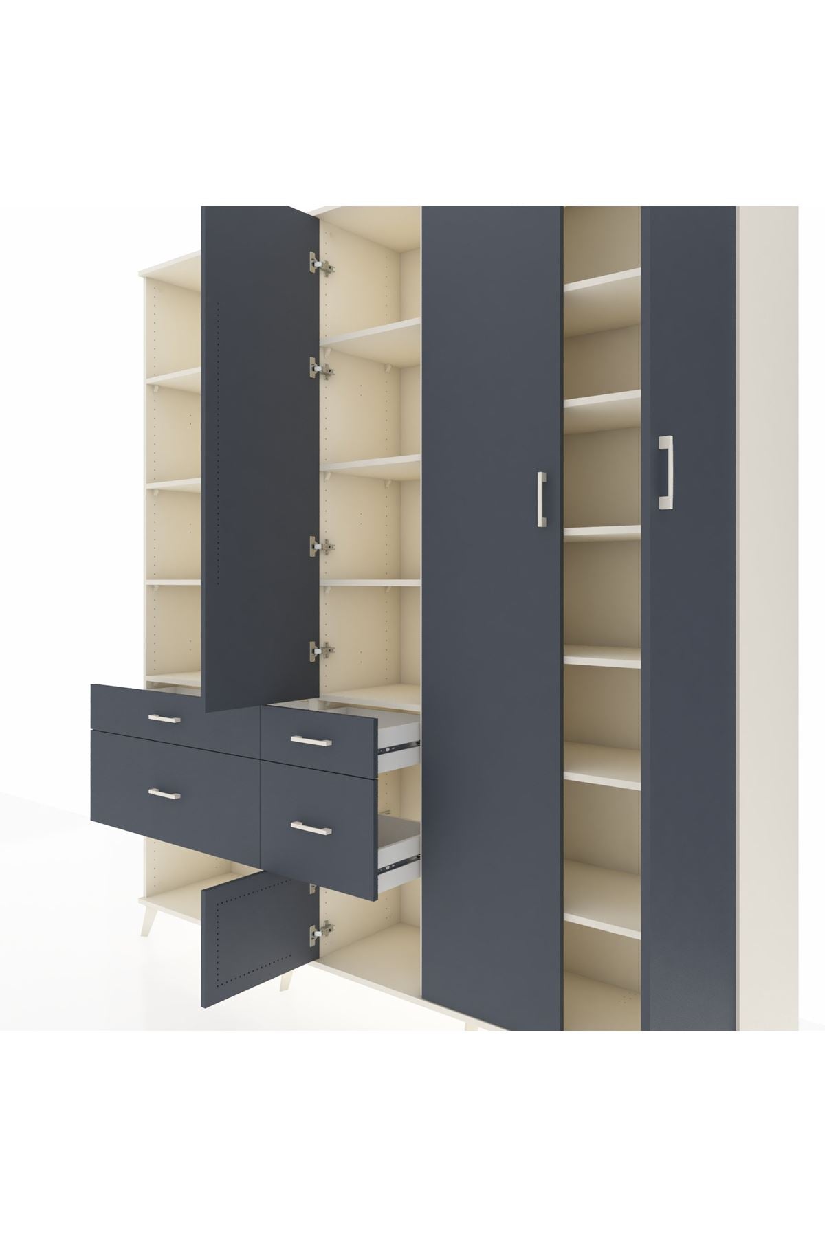 Hyperion Dolap 14 Raflı 4 Çekmeceli 4 Kapaklı 220x44x243 Antrasit-Antrasit/Antrasit