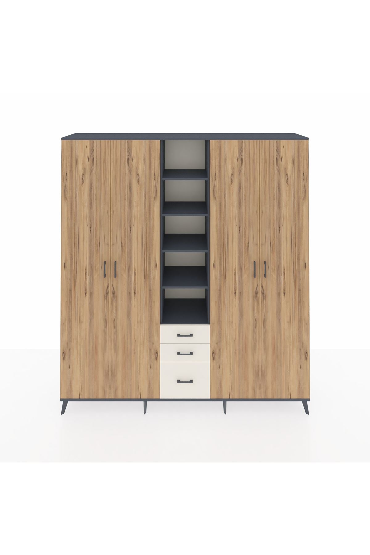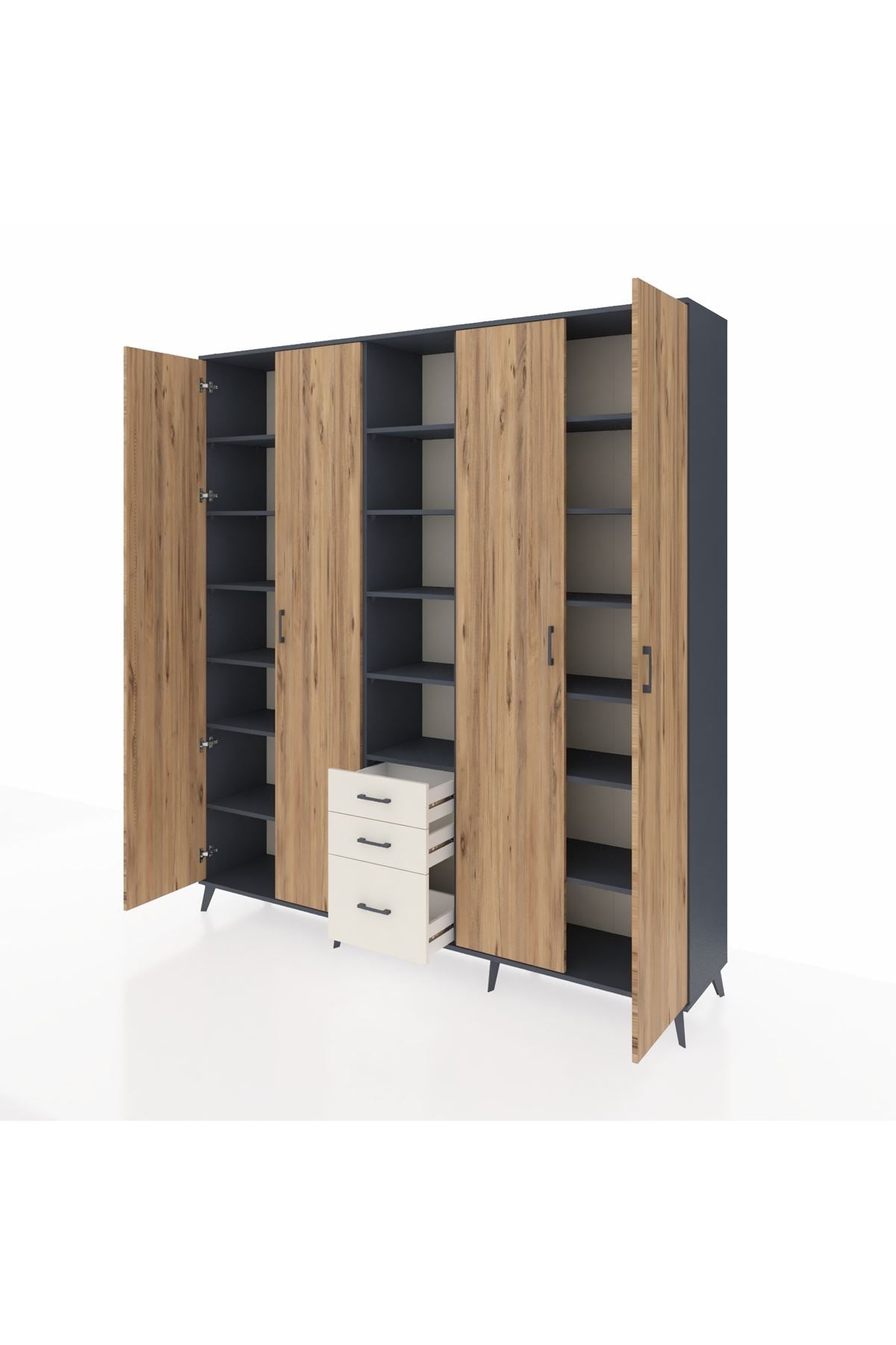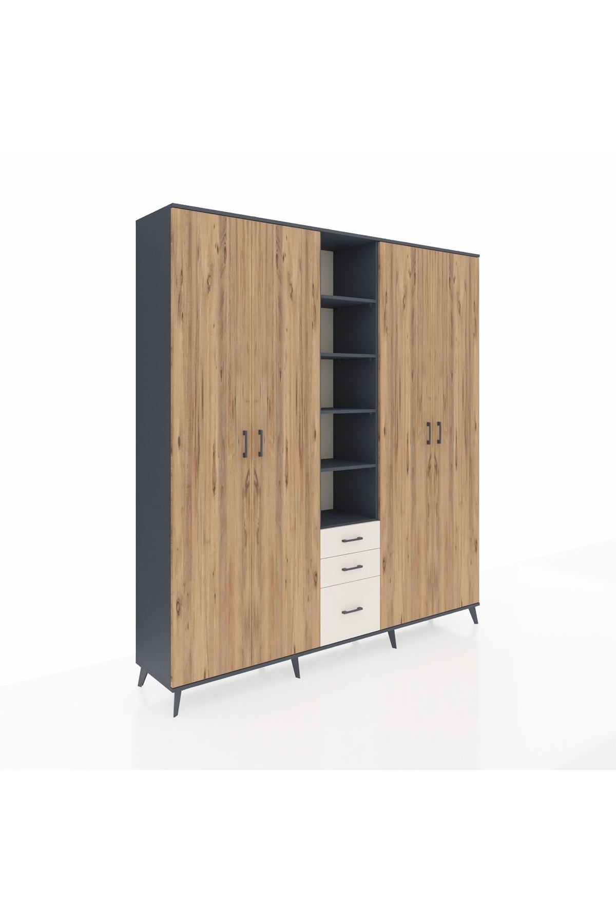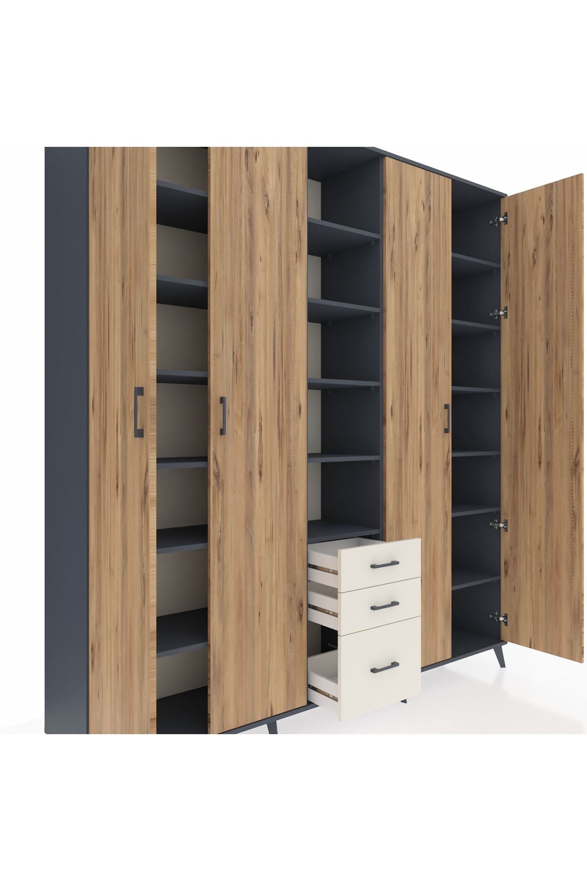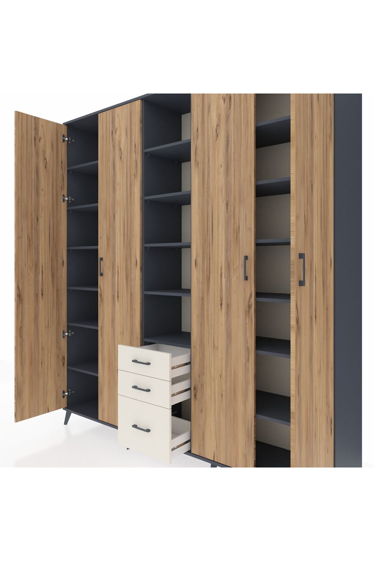 Hyperion Dolap 17 Raflı 3 Çekmeceli 4 Kapaklı 220x44x243 Antrasit-Çam/Aytaşı