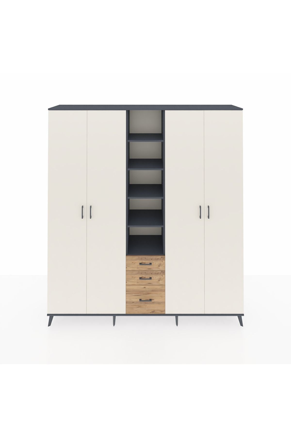 Hyperion Dolap 17 Raflı 3 Çekmeceli 4 Kapaklı 220x44x243 Antrasit-Aytaşı/Çam