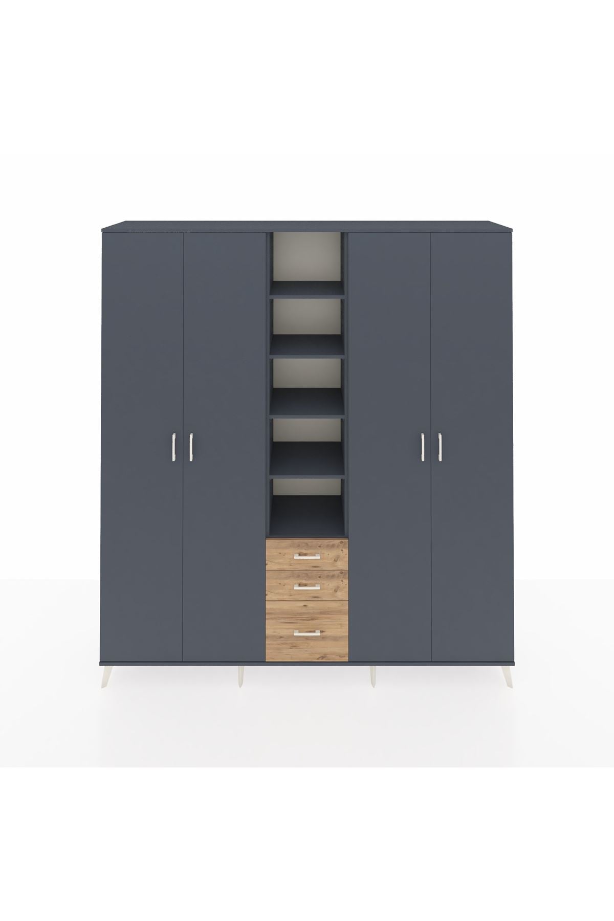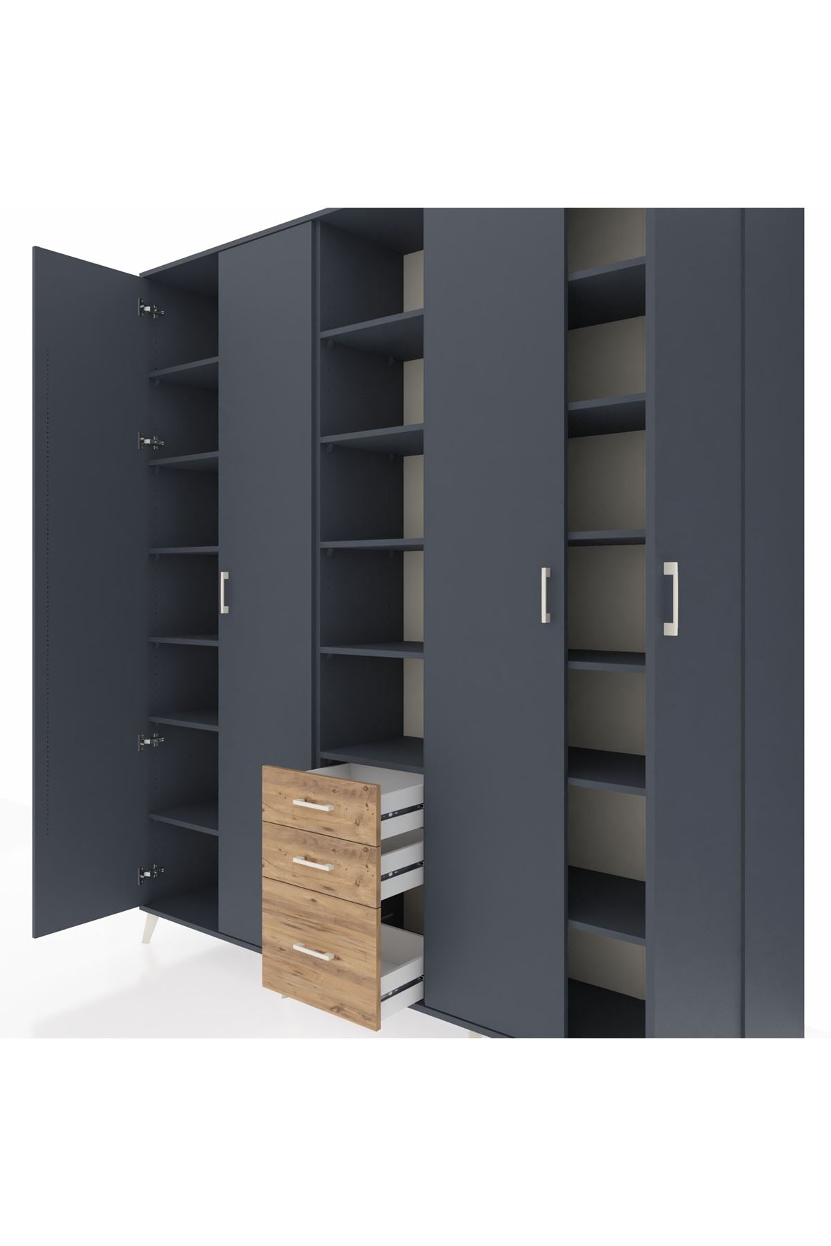 Hyperion Dolap 17 Raflı 3 Çekmeceli 4 Kapaklı 220x44x243 Antrasit-Antrasit/Çam