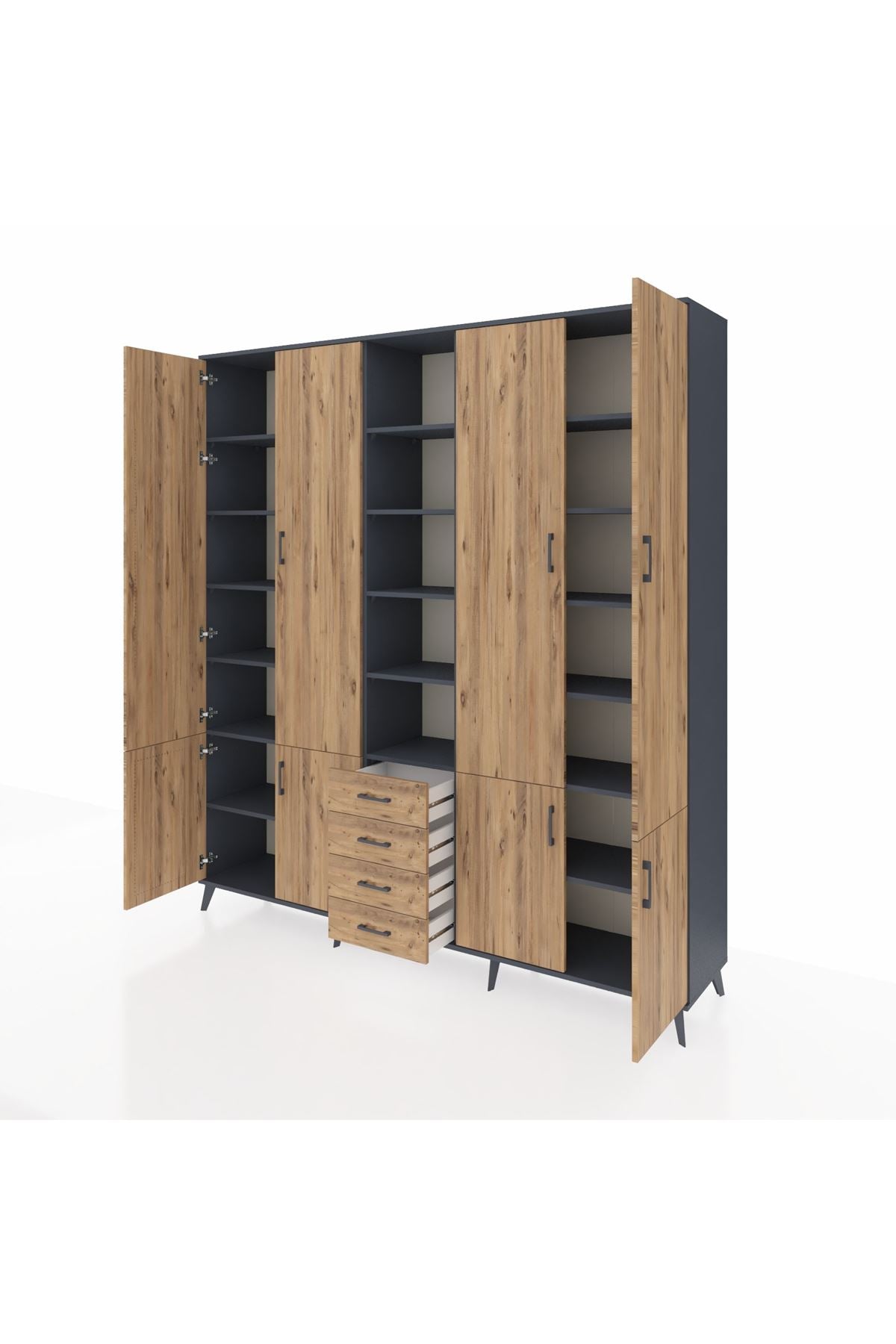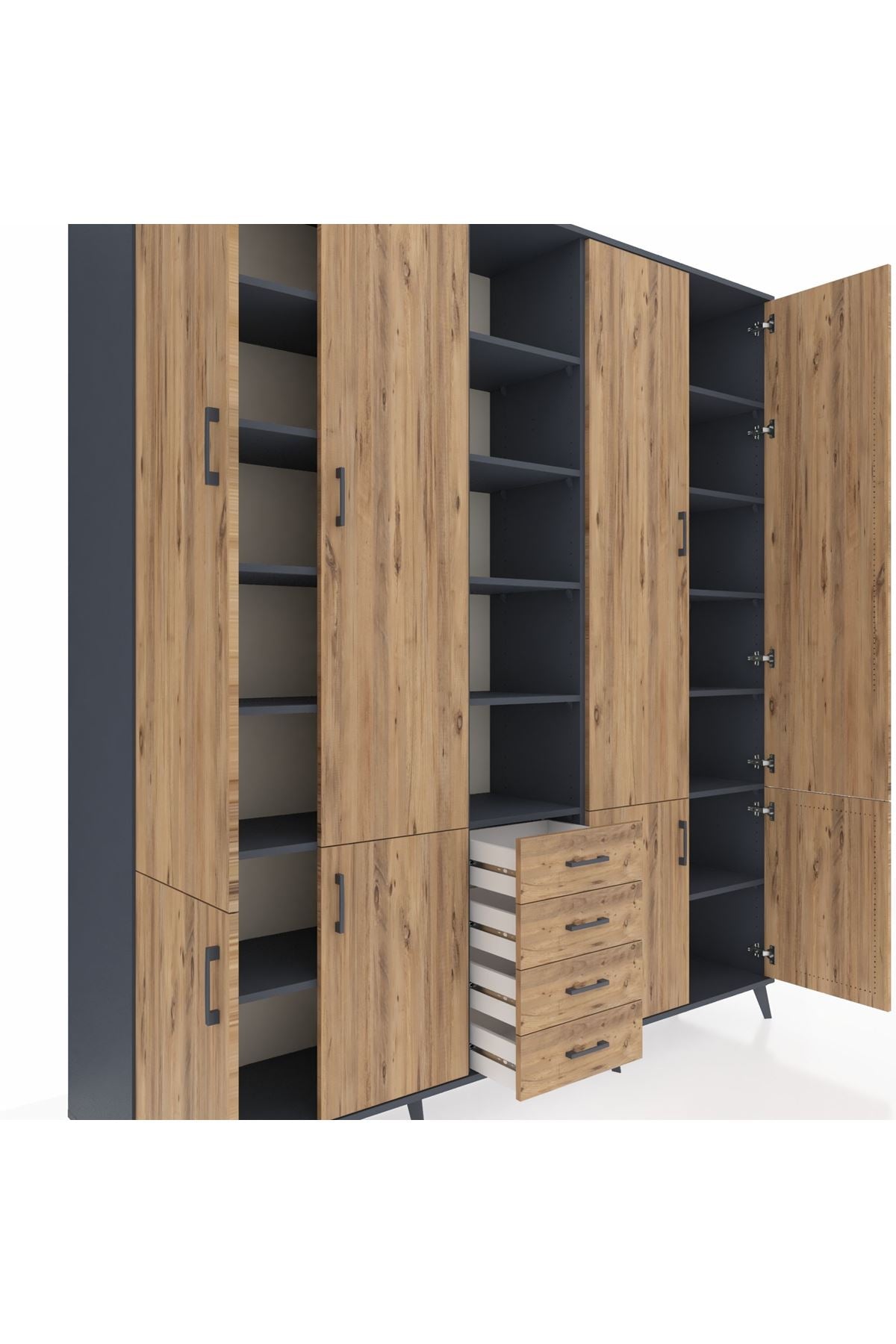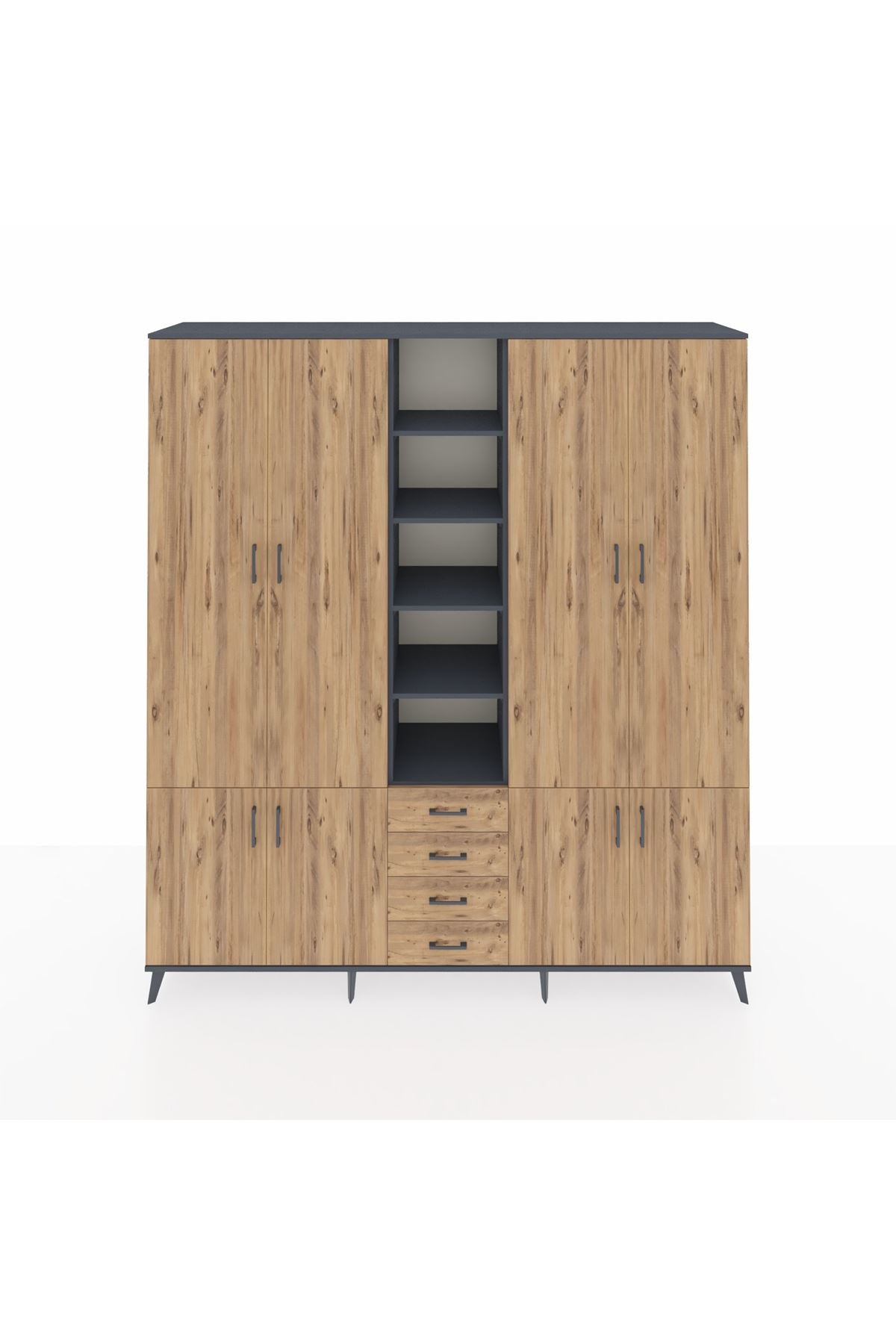Hyperion Dolap 17 Raflı 4 Çekmeceli 8 Kapaklı 220x44x243 Antrasit-Çam/Çam