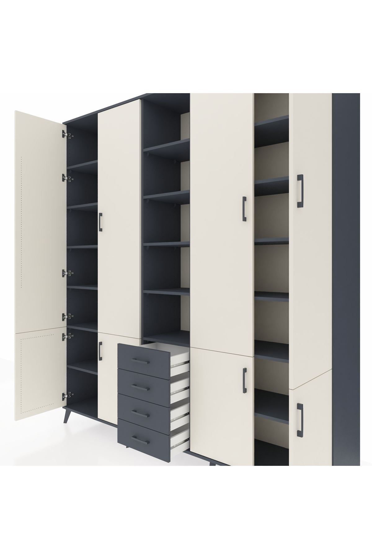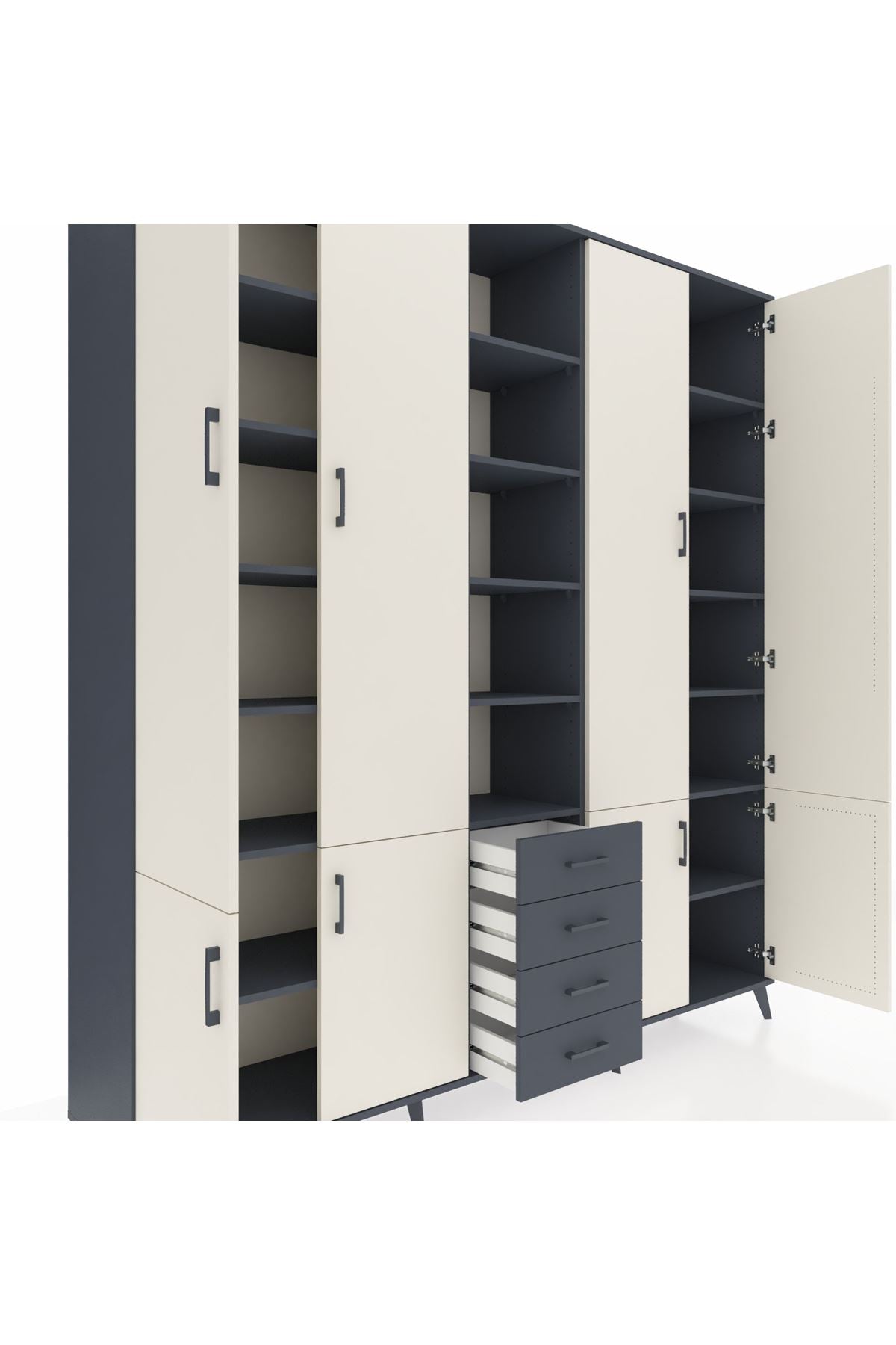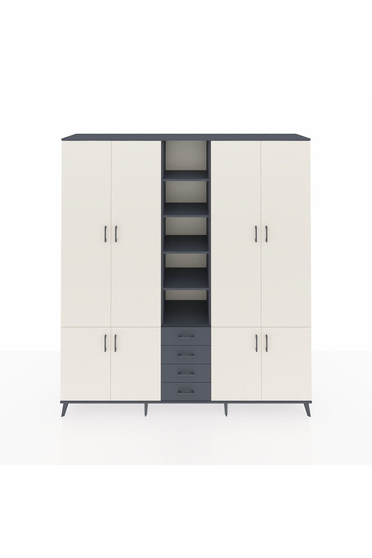 Hyperion Dolap 17 Raflı 4 Çekmeceli 8 Kapaklı 220x44x243 Antrasit-Aytaşı/Antrasit