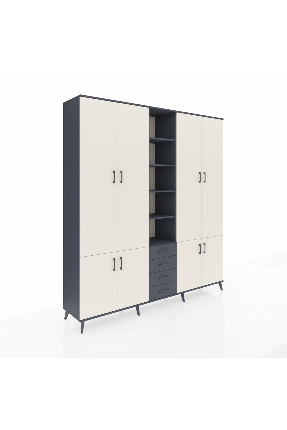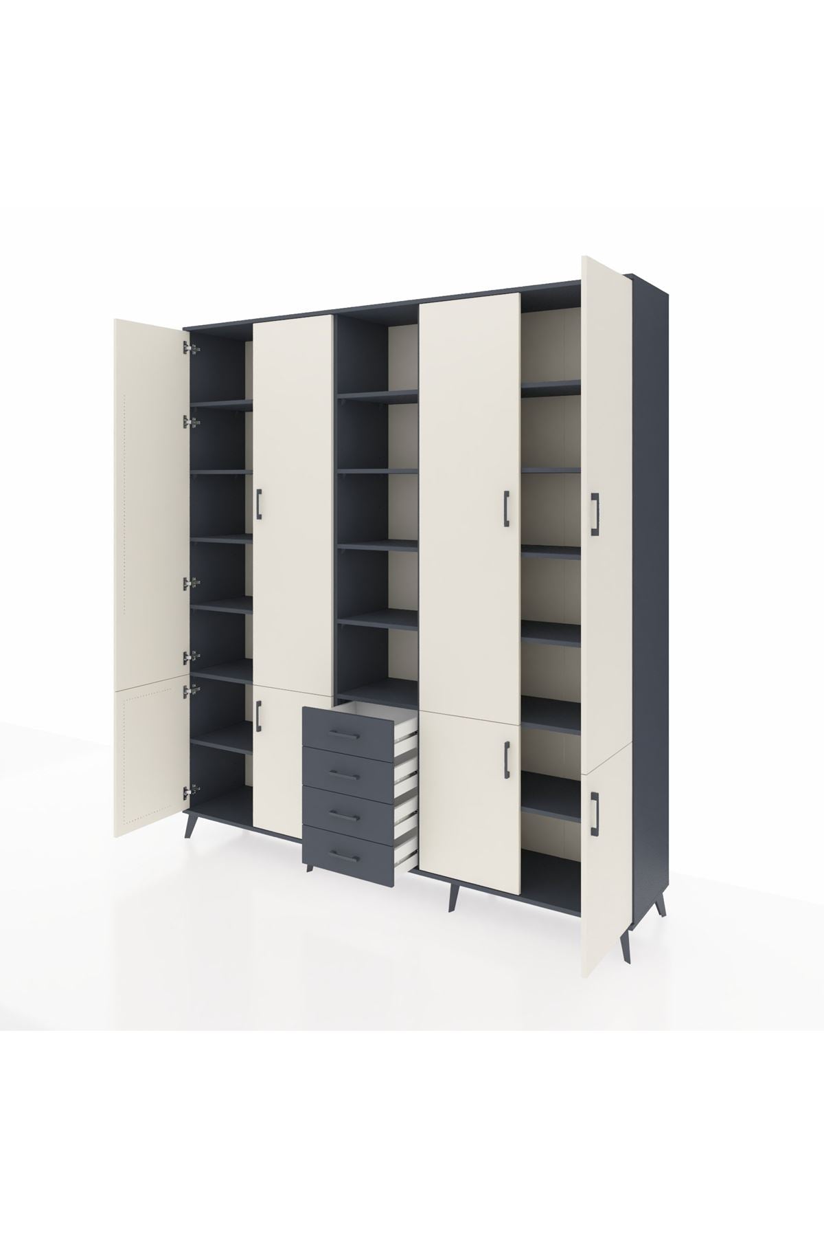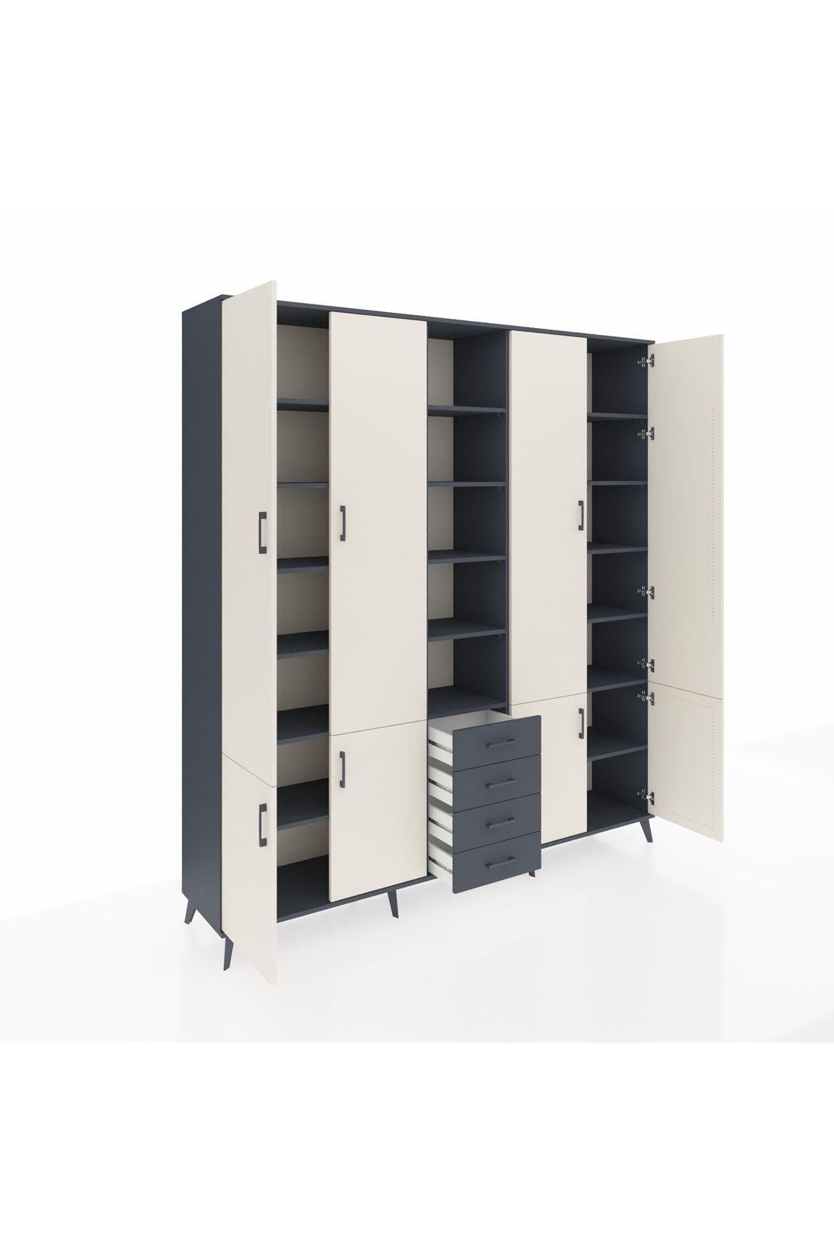 Hyperion Dolap 17 Raflı 4 Çekmeceli 8 Kapaklı 220x44x243 Antrasit-Aytaşı/Antrasit