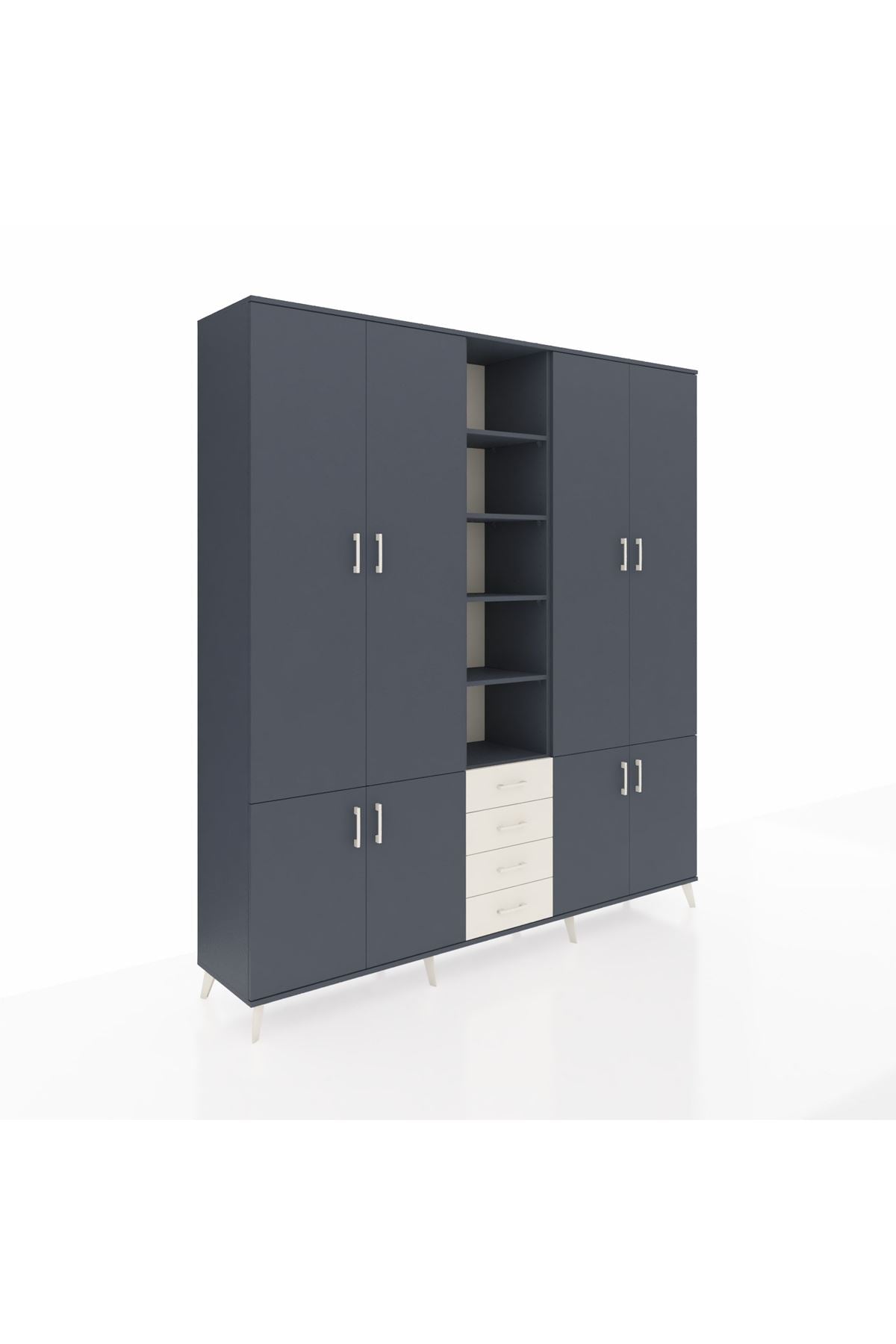 Hyperion Dolap 17 Raflı 4 Çekmeceli 8 Kapaklı 220x44x243 Antrasit-Antrasit/Aytaşı